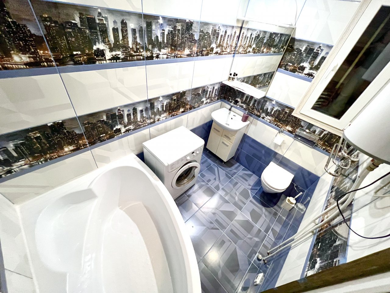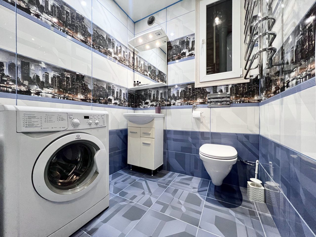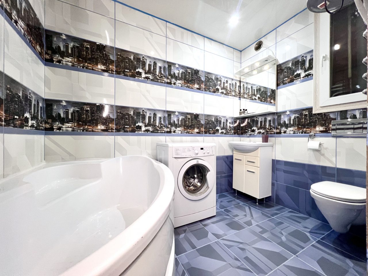 Для проживания и отдыха имеются две большие и удобные двуспальные кровати, несколько телевизоров, мягкий диван, рейл для одежды, шкаф с зеркалом, прикроватные тумбы, стиральная машина, набор туалетно-гигиенических средств, полноценная ванна и другая необходимая мебель и техника.