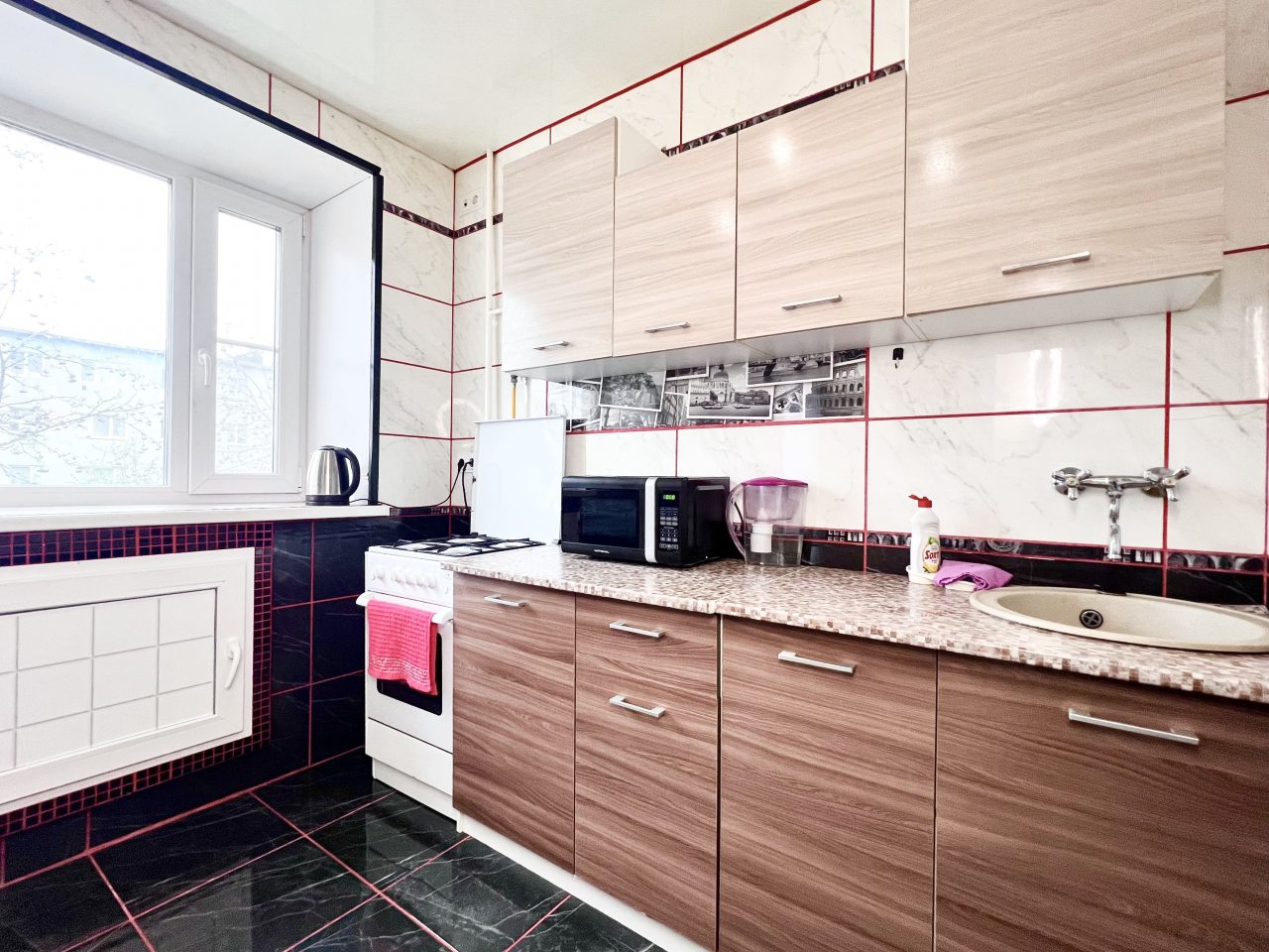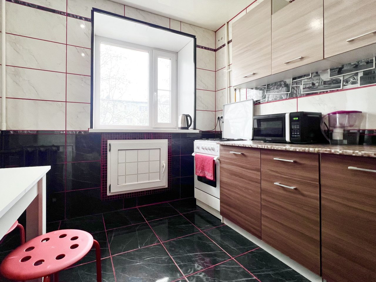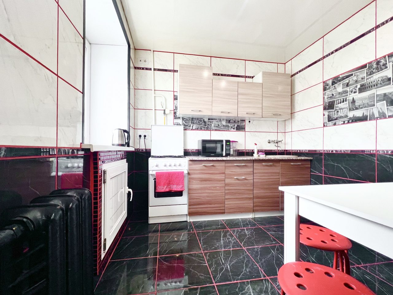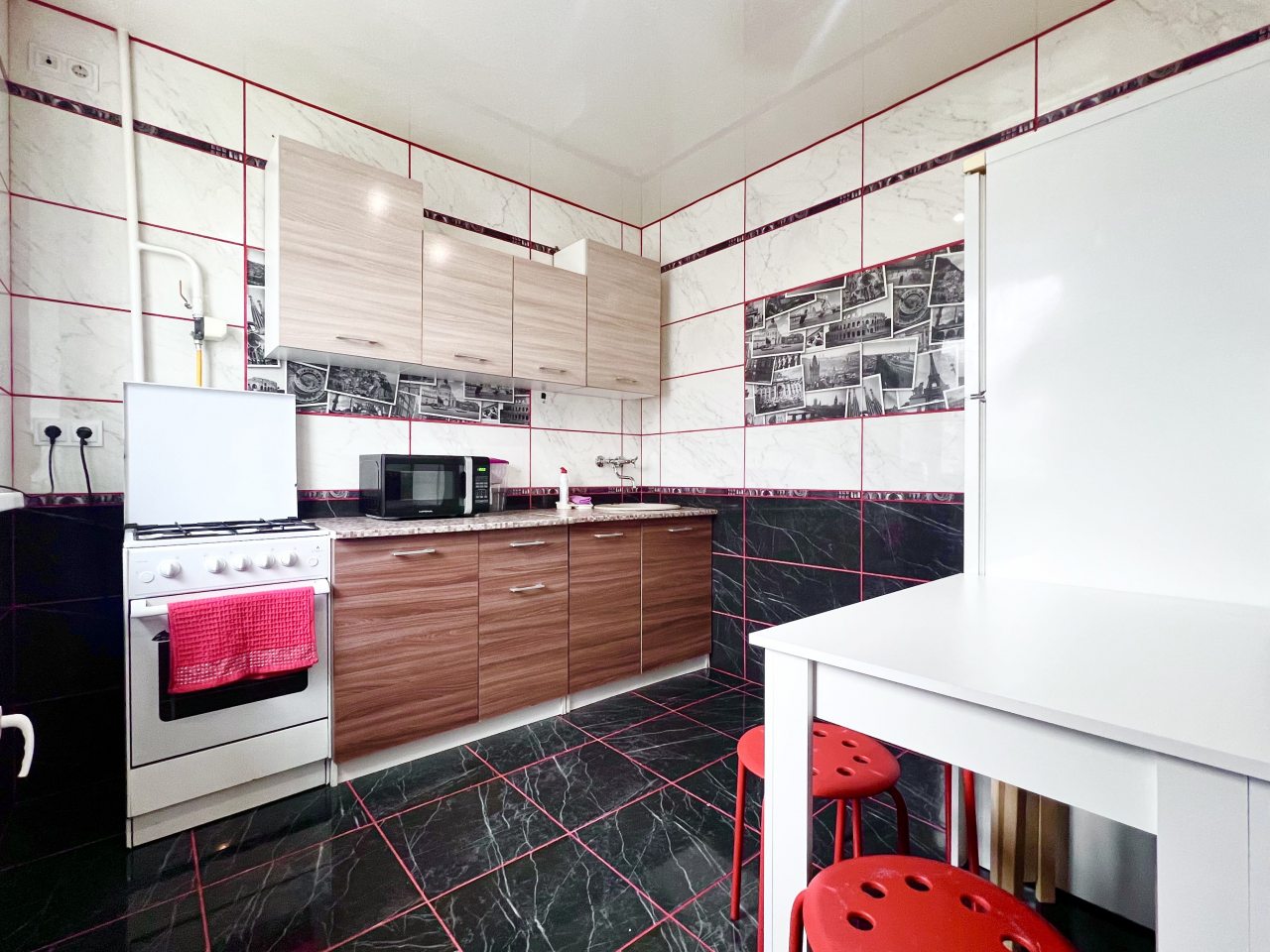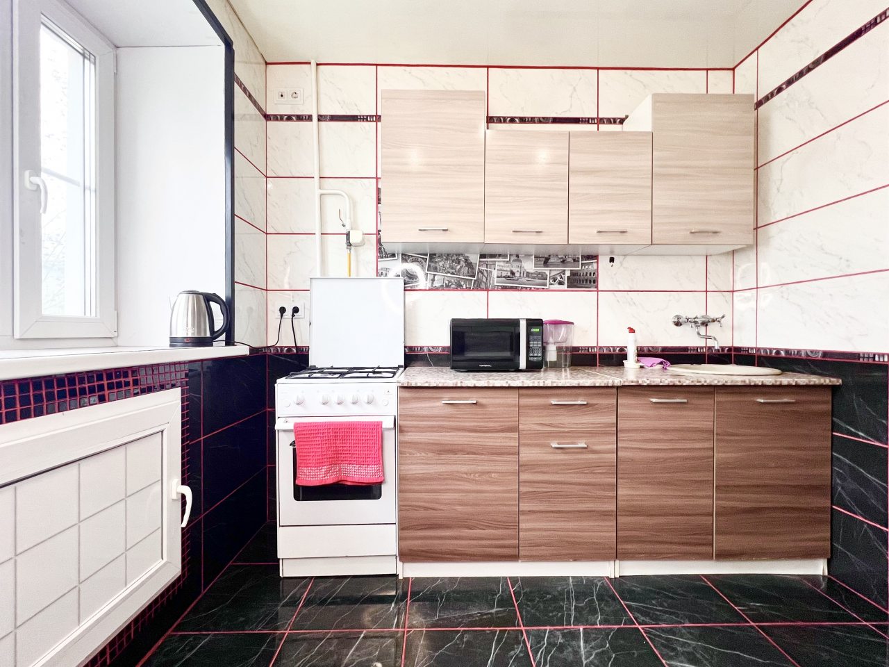 На просторной кухне вы сможете осуществить любую кулинарную задумку, так как в наличии духовой шкаф, плита, СВЧ-печь, чайник, холодильник, обеденная зона.