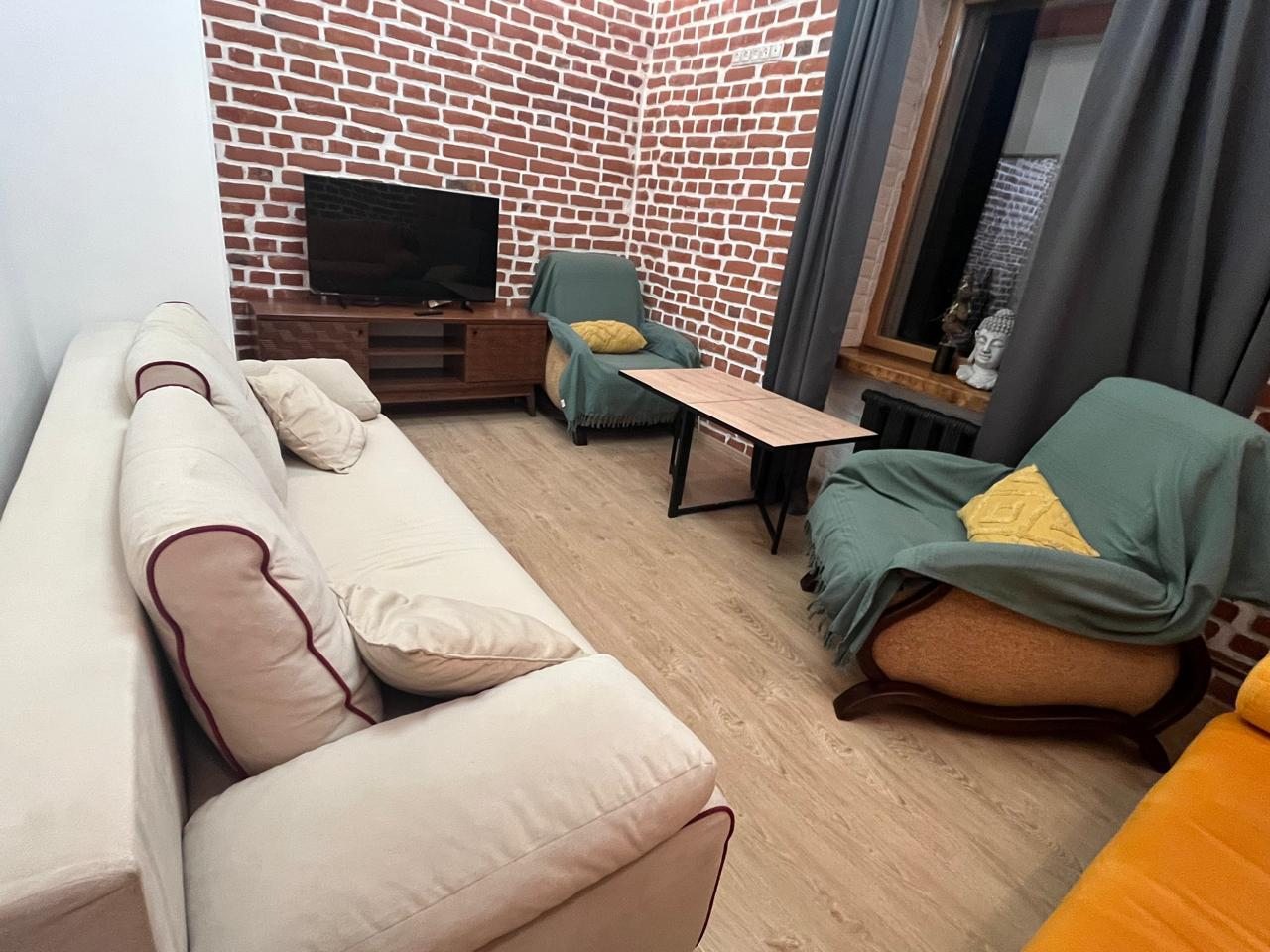 Добротные апартаменты по нормальной цене для центра города. Внутри было все необходимое, в том числе посуда и средства для гигиены в ванной. Спальные места вполне удобные. Расположение хорошее. Минусов не нашли. Благодарим.