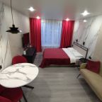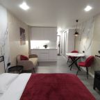 Яркие апартаменты оснащены двуспальной кроватью, прикроватной мебелью, затемненными шторами, шкафом, телевизором, вешалками для верхней одежды, кухонной зоной и собственной ванной комнатой. Доступна точка wi-fi. Санузел оборудован качественной сантехникой и стиральной машиной.
