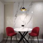 Кухня укомплектована белоснежным гарнитуром, обеденным столом и необходимой бытовой техникой. Пообедать можно в одном из ближайших кафе.