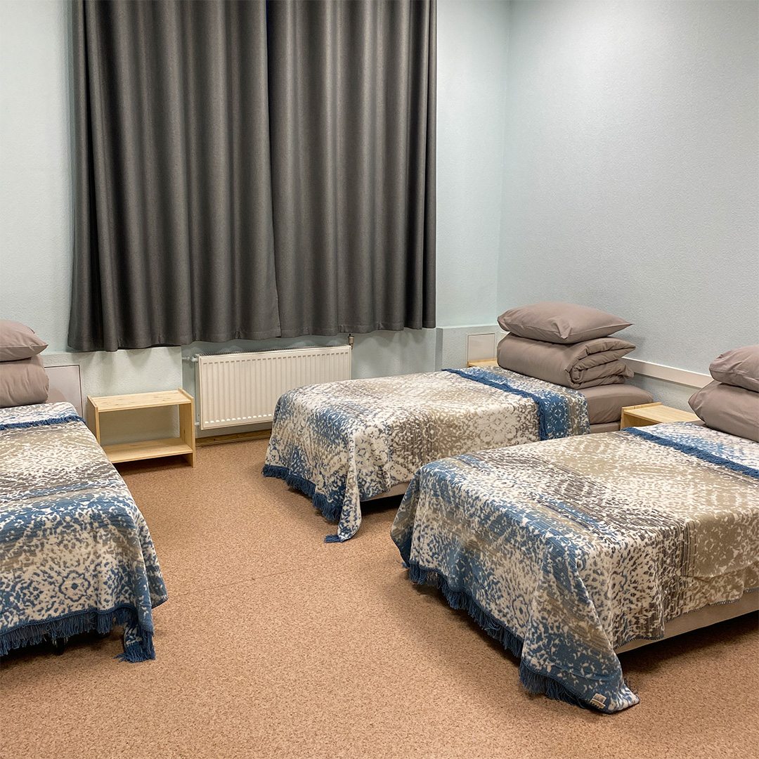 Гостям предлагается на выбор 7 уютных номеров, каждый из которых оборудован всем необходимым для комфортного отдыха после насыщенного дня прогулок по городу и поездок по области. Есть 3-х, 4-х и 5-ти местные номера, оснащенные односпальными кроватями, количество которых соответствует числу заселяемых, прикроватные тумбочки, функциональный шкаф и зеркало. Для большего комфорта и крепкого сна предусмотрен блэкаут шторы. Удобства находятся на этаже, но всегда содержатся в идеальной чистоте.