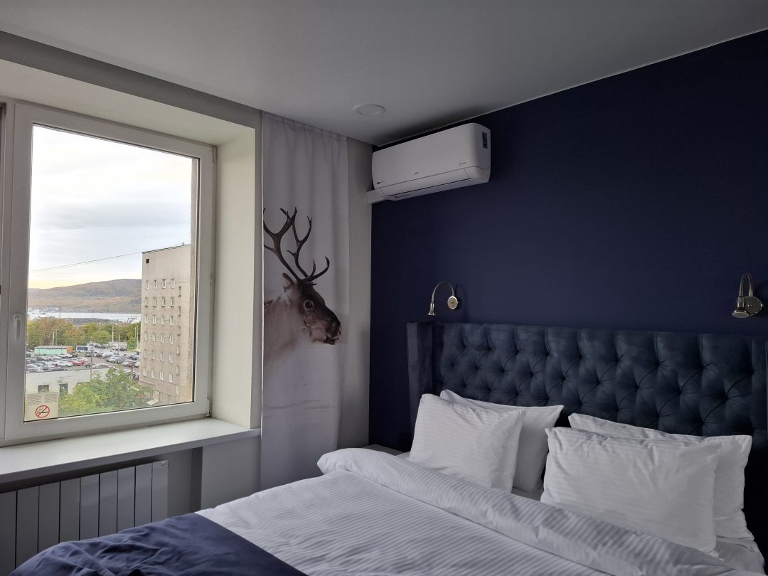 Расположение: в самом центре Мурманска.Уютный номер с северным колоритом. Очень удобная постель. В номере чайник с набором кофе и чая.