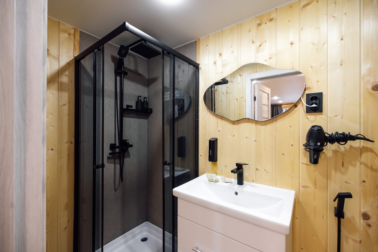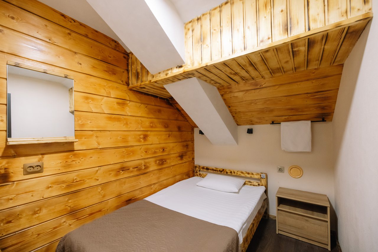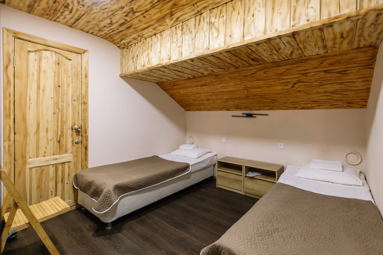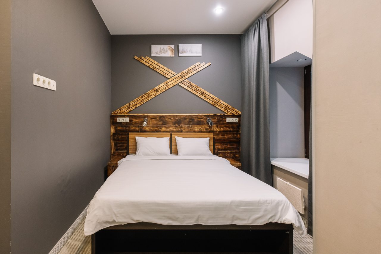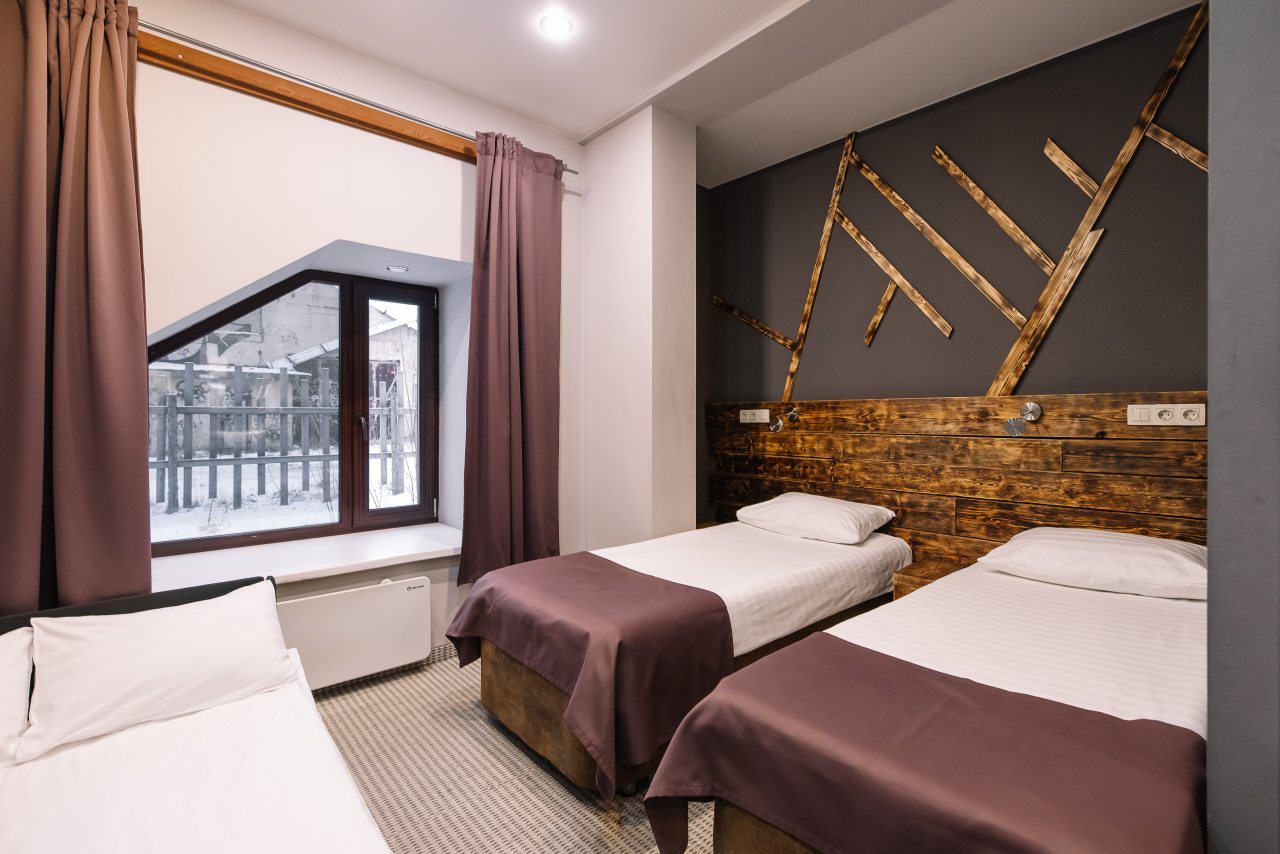 У нас номер Комфорт. Номер хороший, удобная кровать и эргономика соблюдена. Санузел чистый. Отель преимущественно оформлен в дереве, экологически чистый. Считаю это хорошим выбором для тех, кому нужен ночлег в Мурманске.