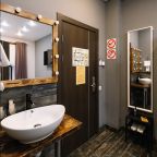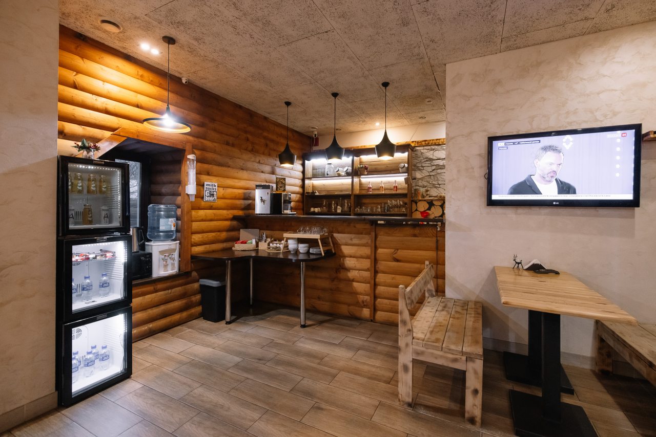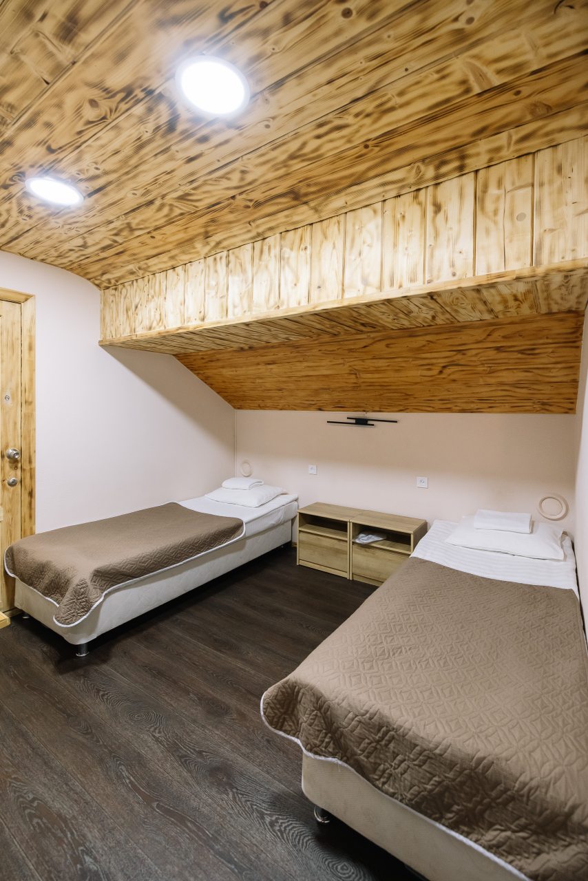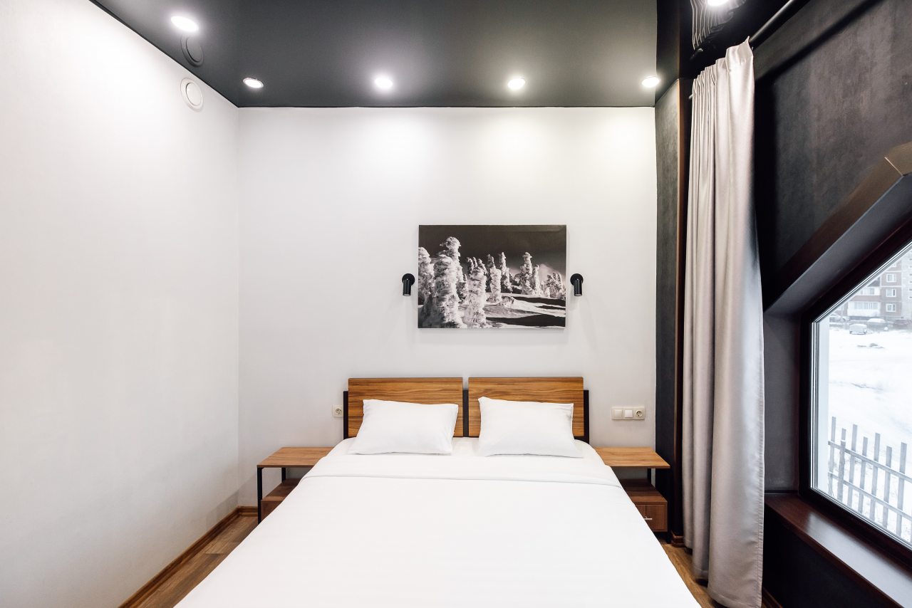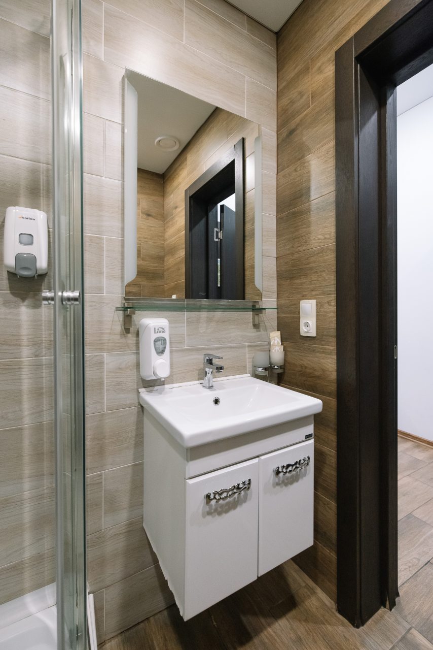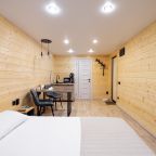 У нас номер Комфорт. Номер хороший, удобная кровать и эргономика соблюдена. Санузел чистый. Отель преимущественно оформлен в дереве, экологически чистый. Считаю это хорошим выбором для тех, кому нужен ночлег в Мурманске.