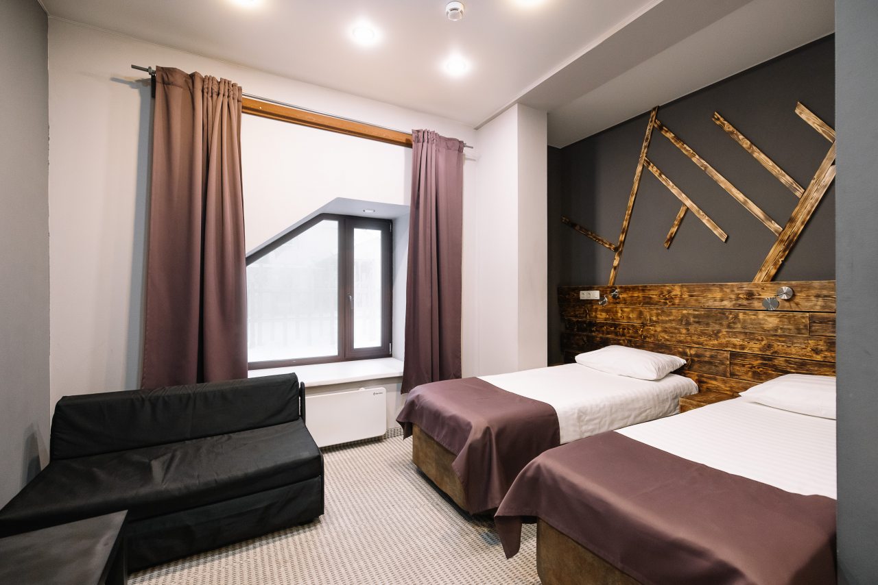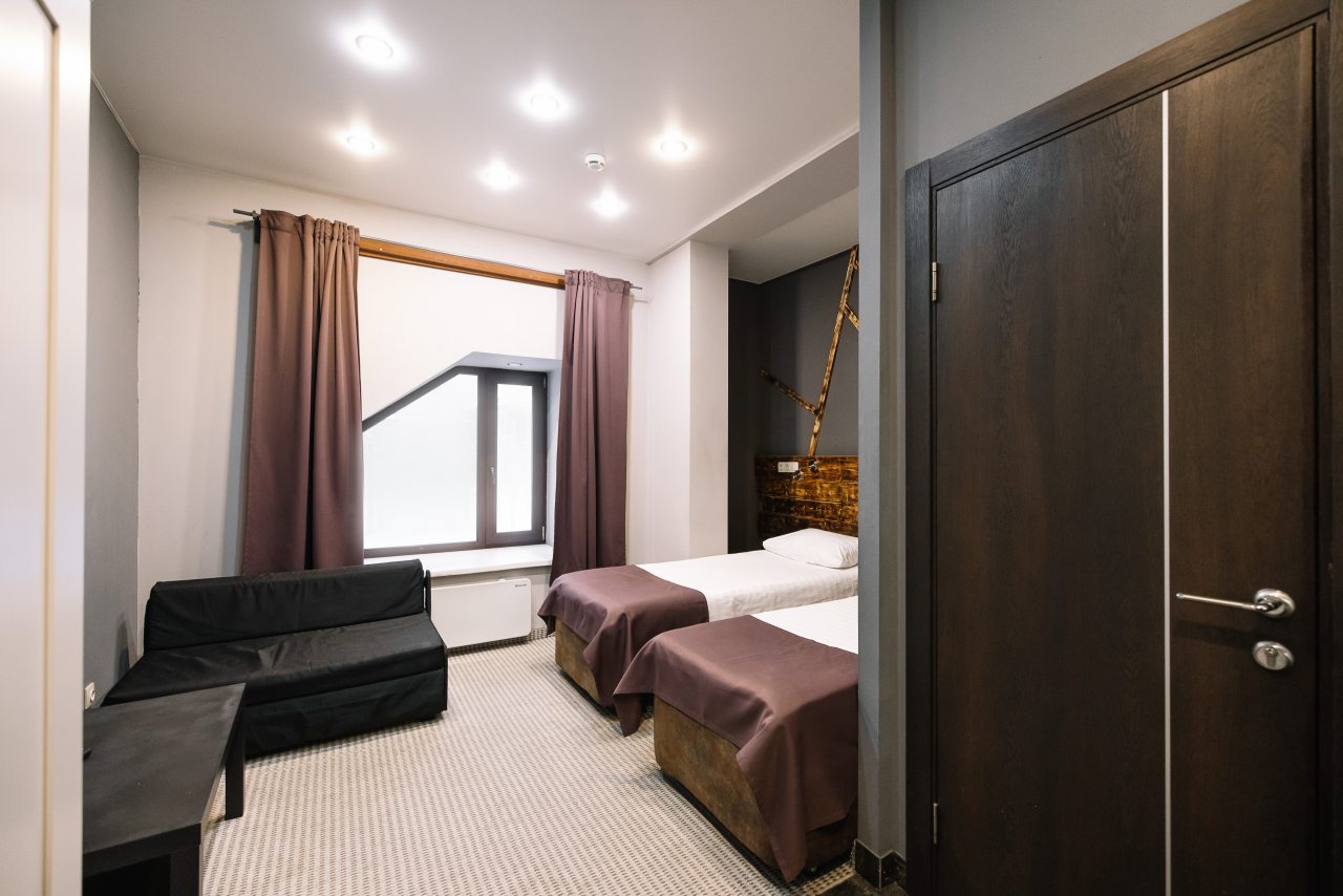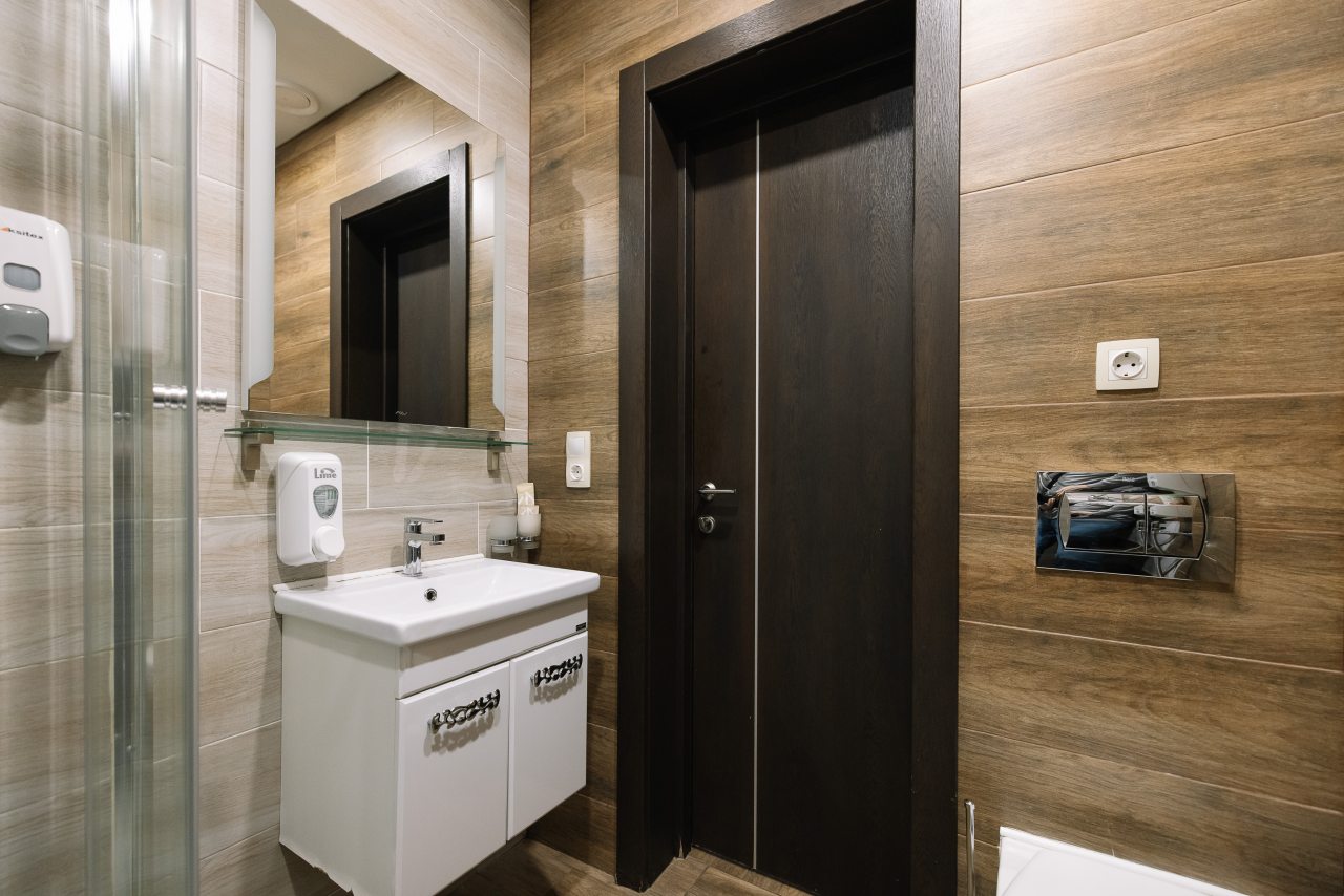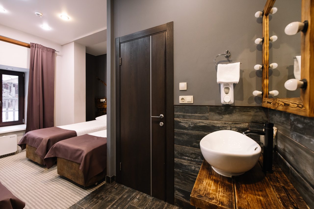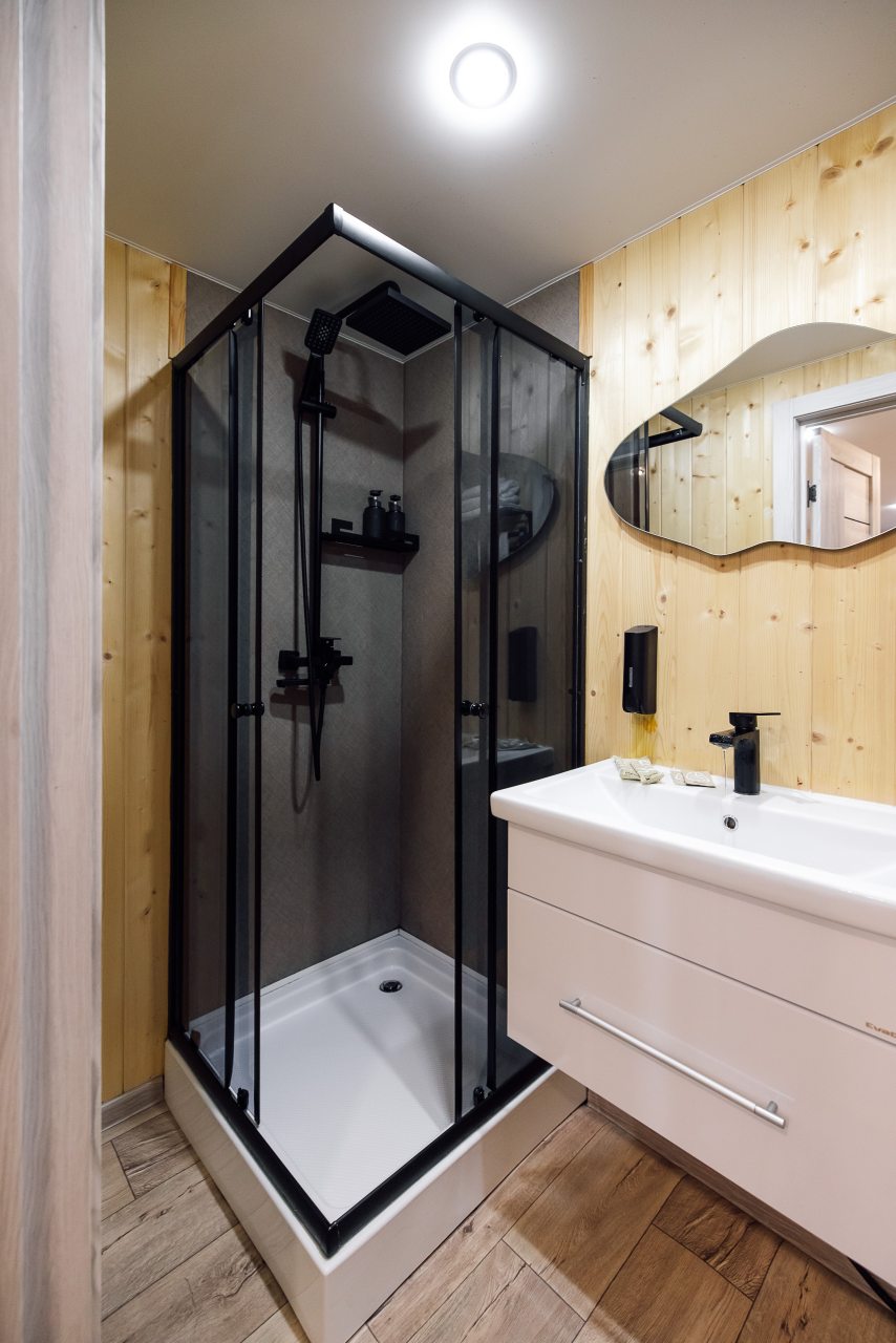 У нас номер Комфорт. Номер хороший, удобная кровать и эргономика соблюдена. Санузел чистый. Отель преимущественно оформлен в дереве, экологически чистый. Считаю это хорошим выбором для тех, кому нужен ночлег в Мурманске.