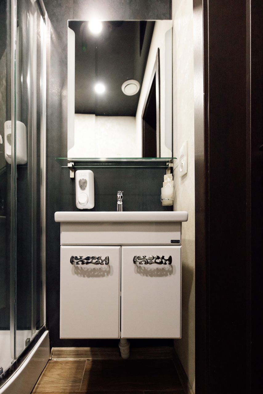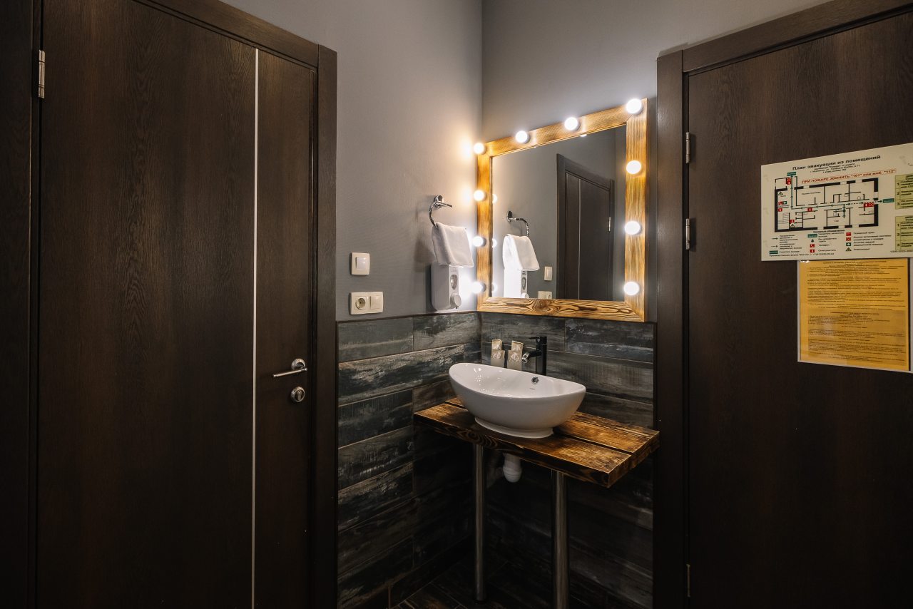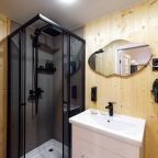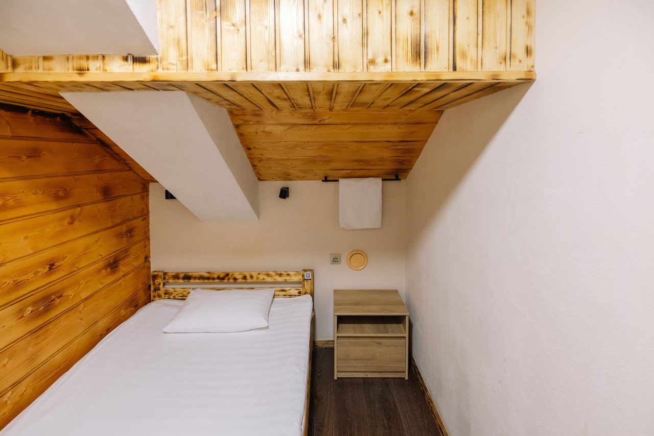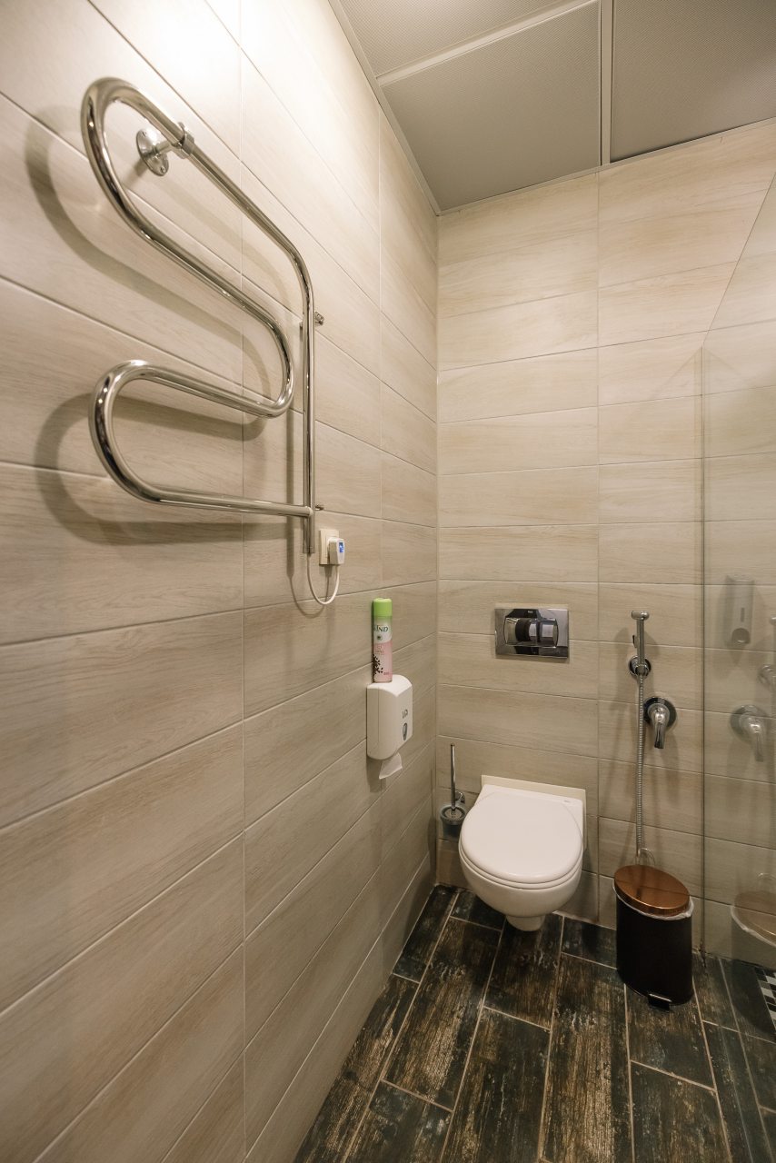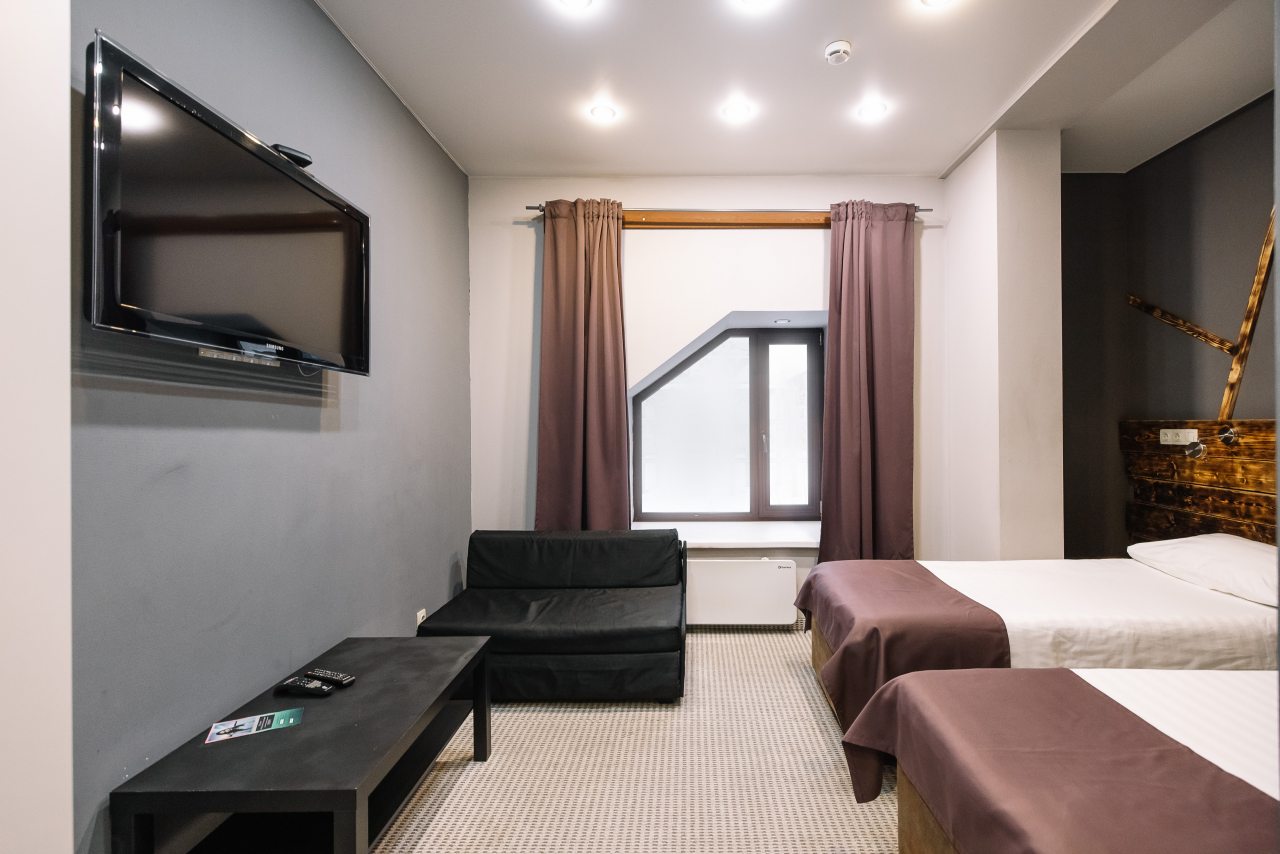 У нас номер Комфорт. Номер хороший, удобная кровать и эргономика соблюдена. Санузел чистый. Отель преимущественно оформлен в дереве, экологически чистый. Считаю это хорошим выбором для тех, кому нужен ночлег в Мурманске.