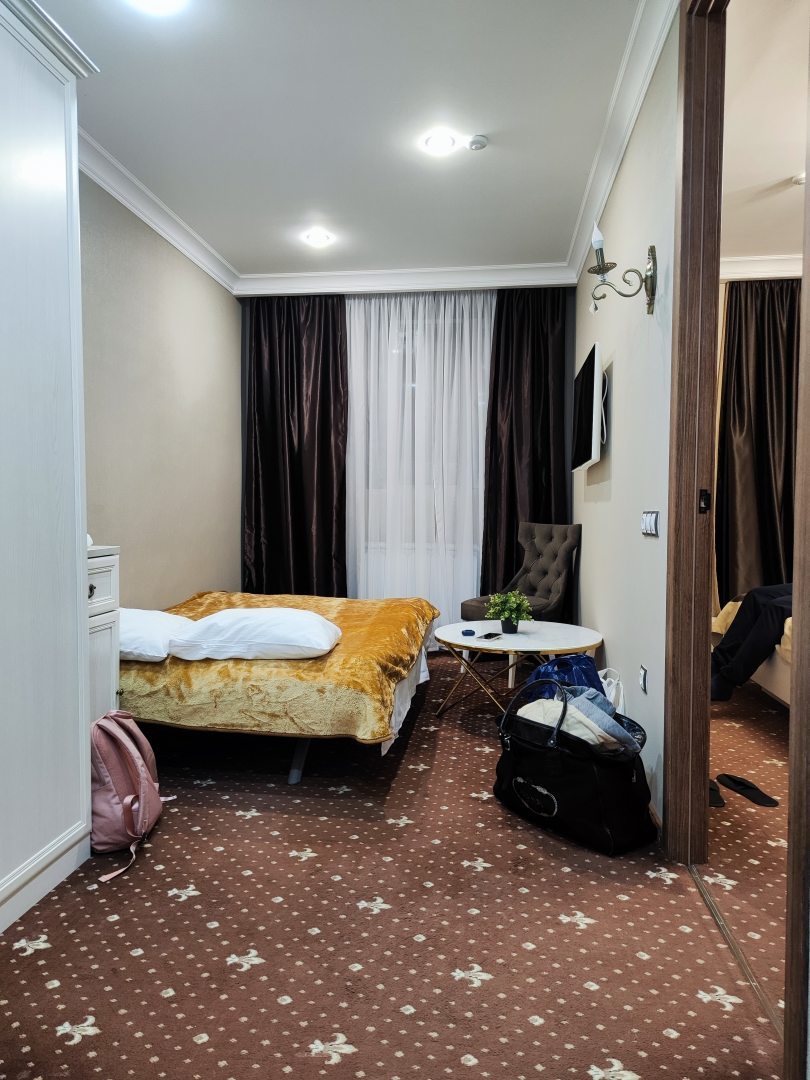 Из недостатков: если придираться, то хотелось бы одеяло побольше размером, именно двуспальное, отваливалась ручка смесителя на гигиеническом душе).