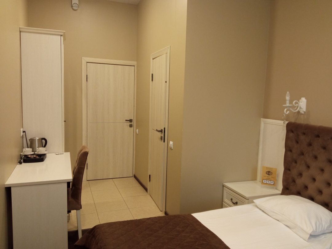 Побывала в городе Муром с целью посетить Свято-Троицкий монастырь. Остановилась в отеле Волна. Приятно удивила демократичная стоимость проживания за довольно объемный набор услуг. Отель расположен на первом этаже жилого дома, недалеко от набережной реки Оки, имеется своя бесплатная парковка. Отель и номер хорошо убраны, уютные. Персонал вежливый и доброжелательный. Хорошая шумоизоляция, в отеле очень тихо, нет рядом шумных автомобильных дорог. В номере имеется свой санузел, шкаф, стол, мягкие уютные стульчики, банкетка, кровать, две тумбочки, кондиционер, телевизор, холодильник, чайник, две кружки, ложки, пакетики с чаем, тапочки, фен, мыло для рук, шампунь, гель для душа, гигиенический душ, душевая кабина, даже натуральный освежитель воздуха) Могу что-то упустить. Постельное белье белое, чистое и хрустящее. В отеле есть отдельное помещение с микроволновкой, чайными пакетиками, посудой, столами и стульями. Приятно удивило наличие розеток над тумбочками, обеденным столом и в ванной комнате. Я осталась очень довольна посещением отеля Волна, могу смело рекомендовать его, если вернусь в Муром, обязательно остановлюсь здесь.