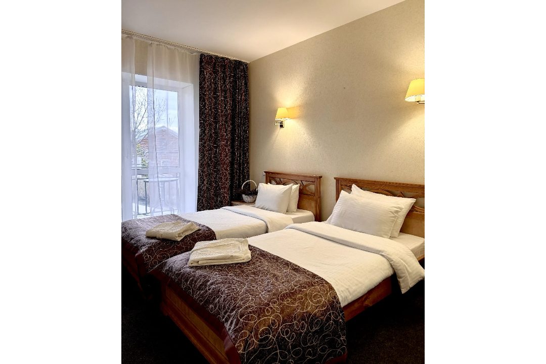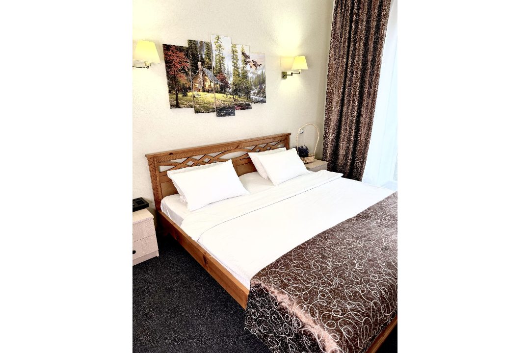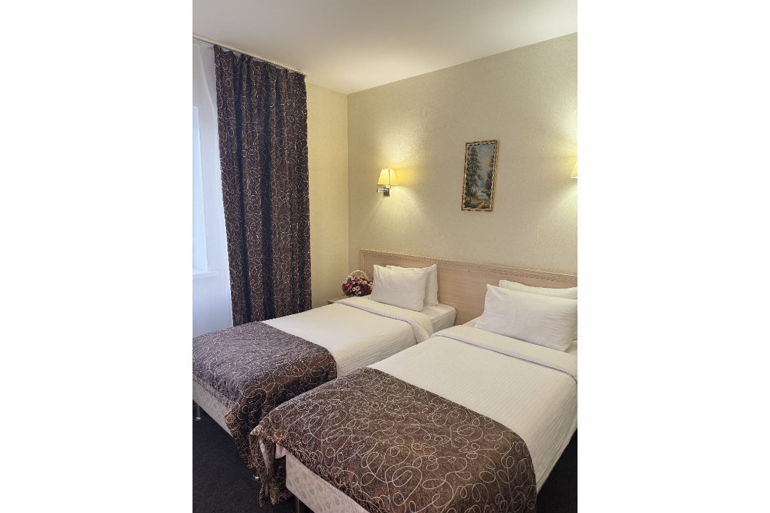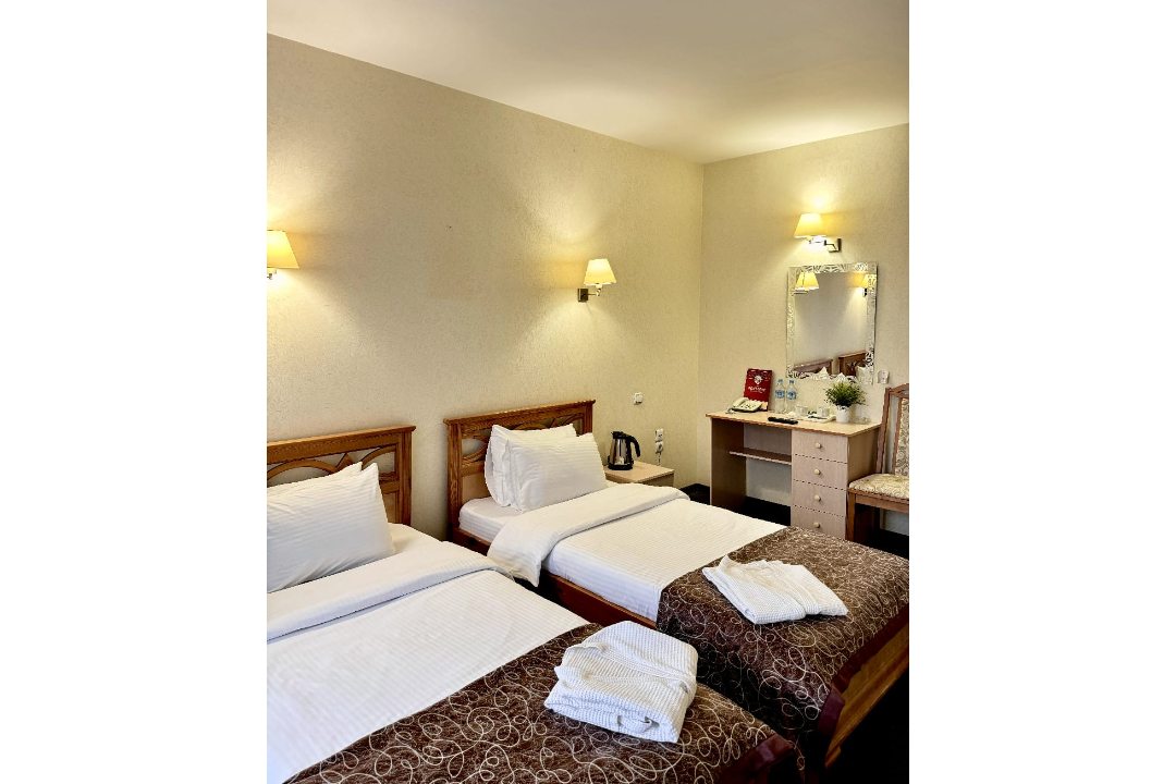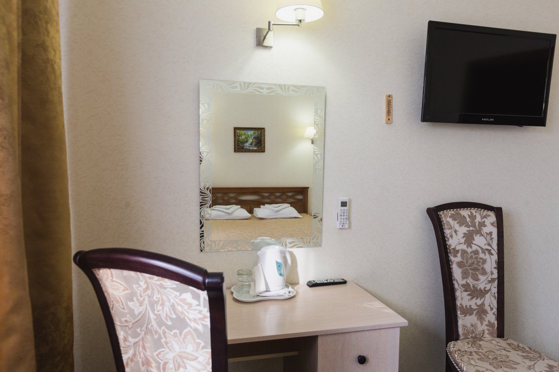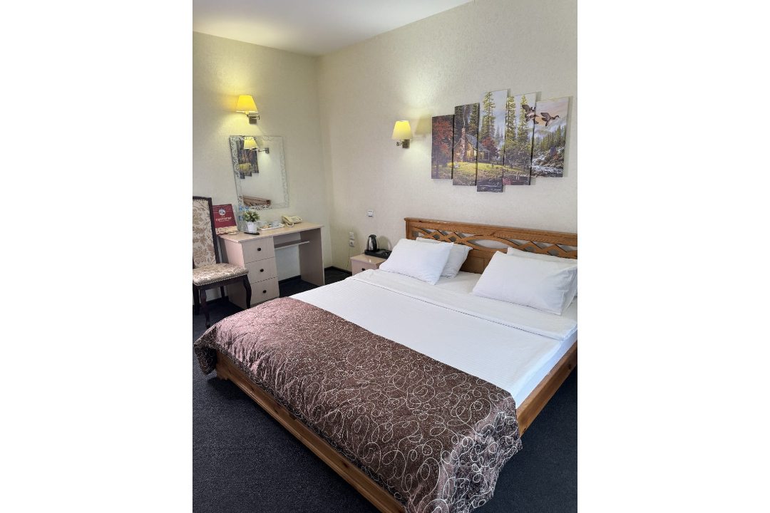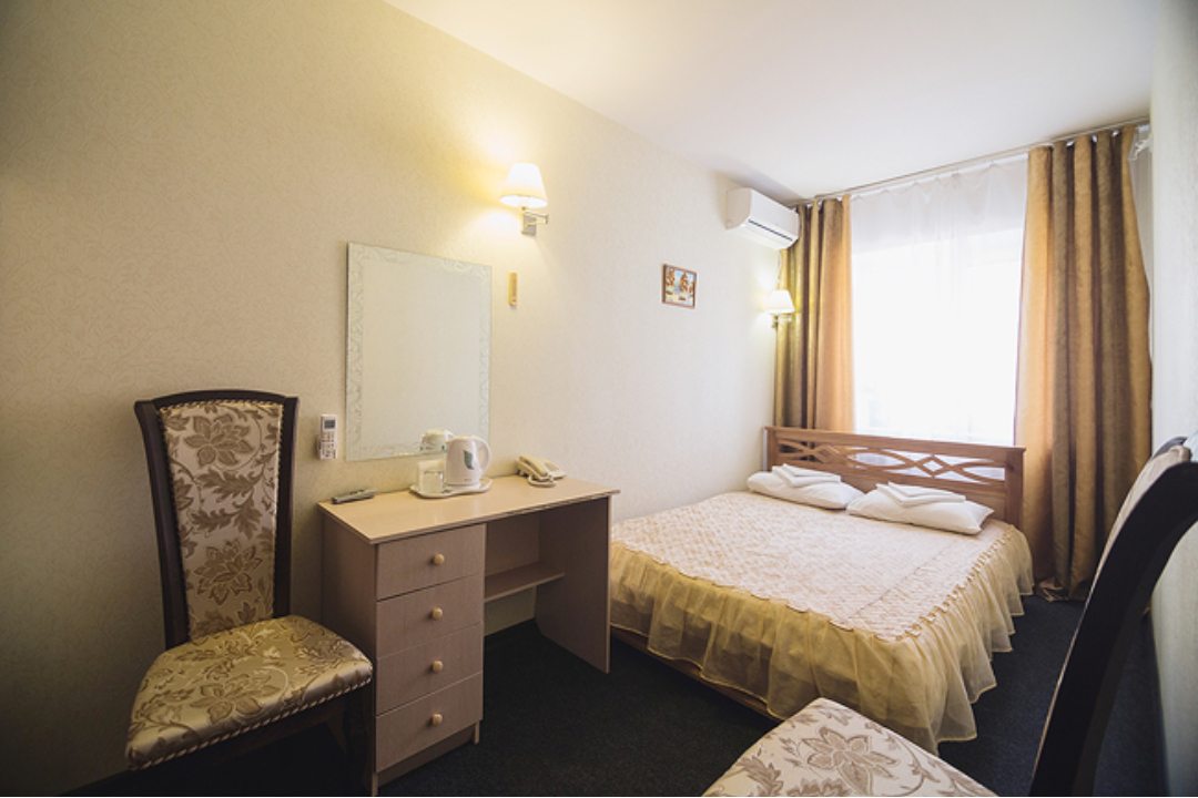 Хорошая гостиница для отдыха. Мне предложили комфортабельный номер со стандартной мебелью. Комната была большая и предполагала места отдыха еще минимум для двоих людей. Я отдыхала в уютной обстановке и без помех могла заняться различными делами. Всем рекомендую это место.