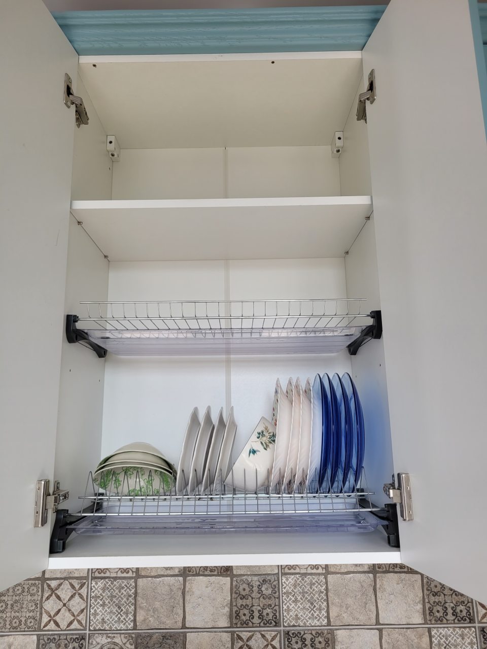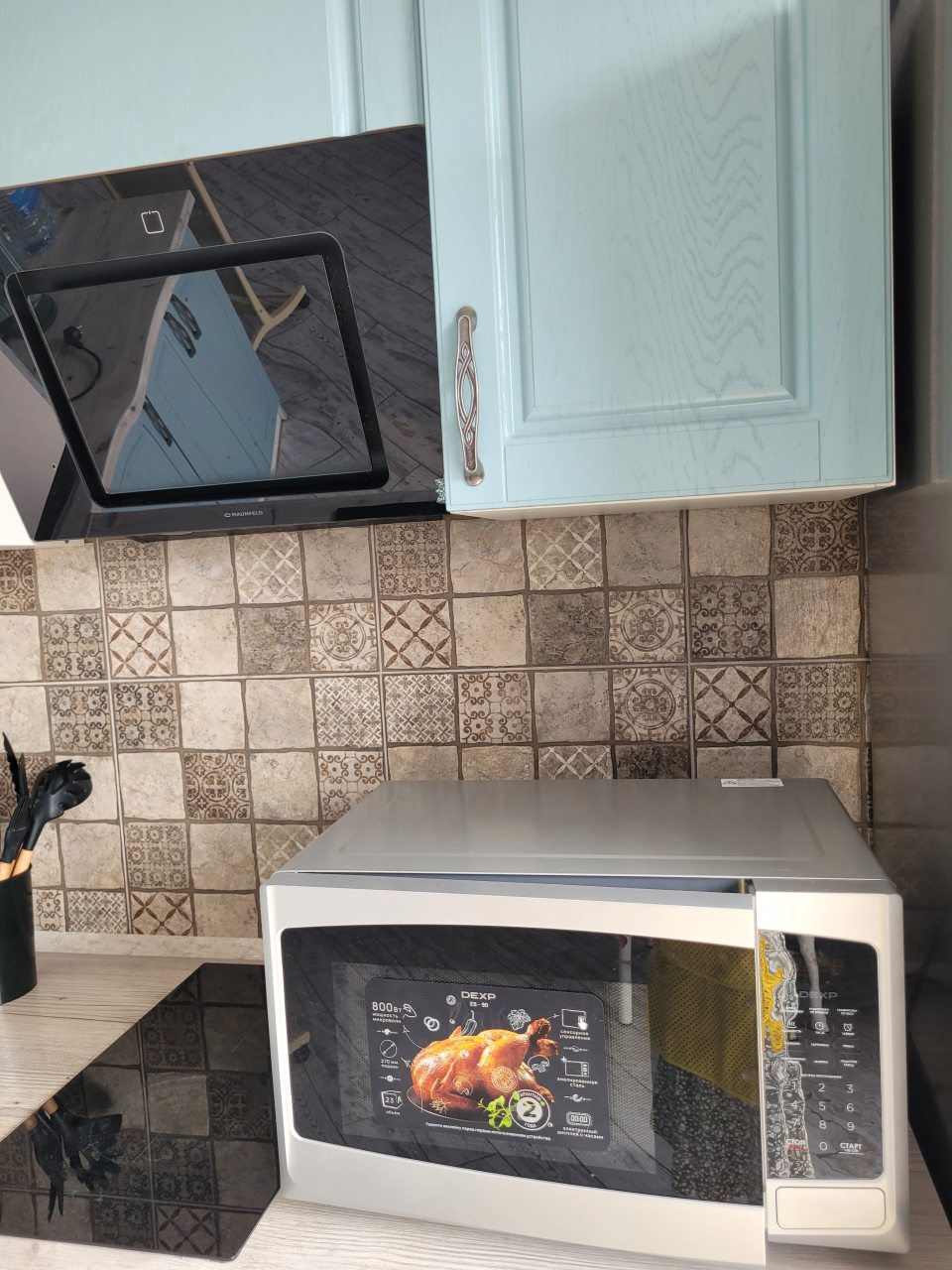 На кухне установлен стандартный набор современной техники, имеется посуда и кухонные принадлежности.