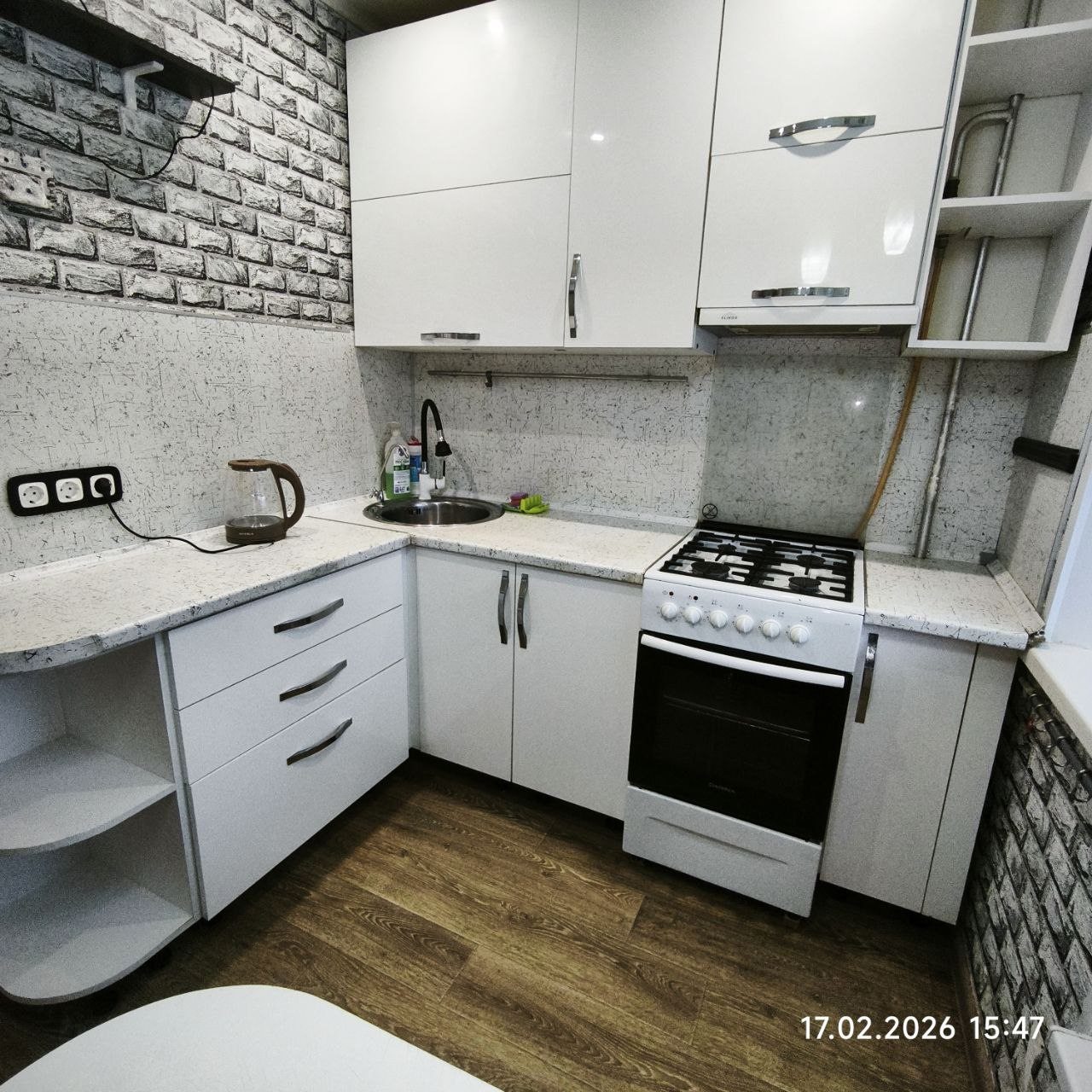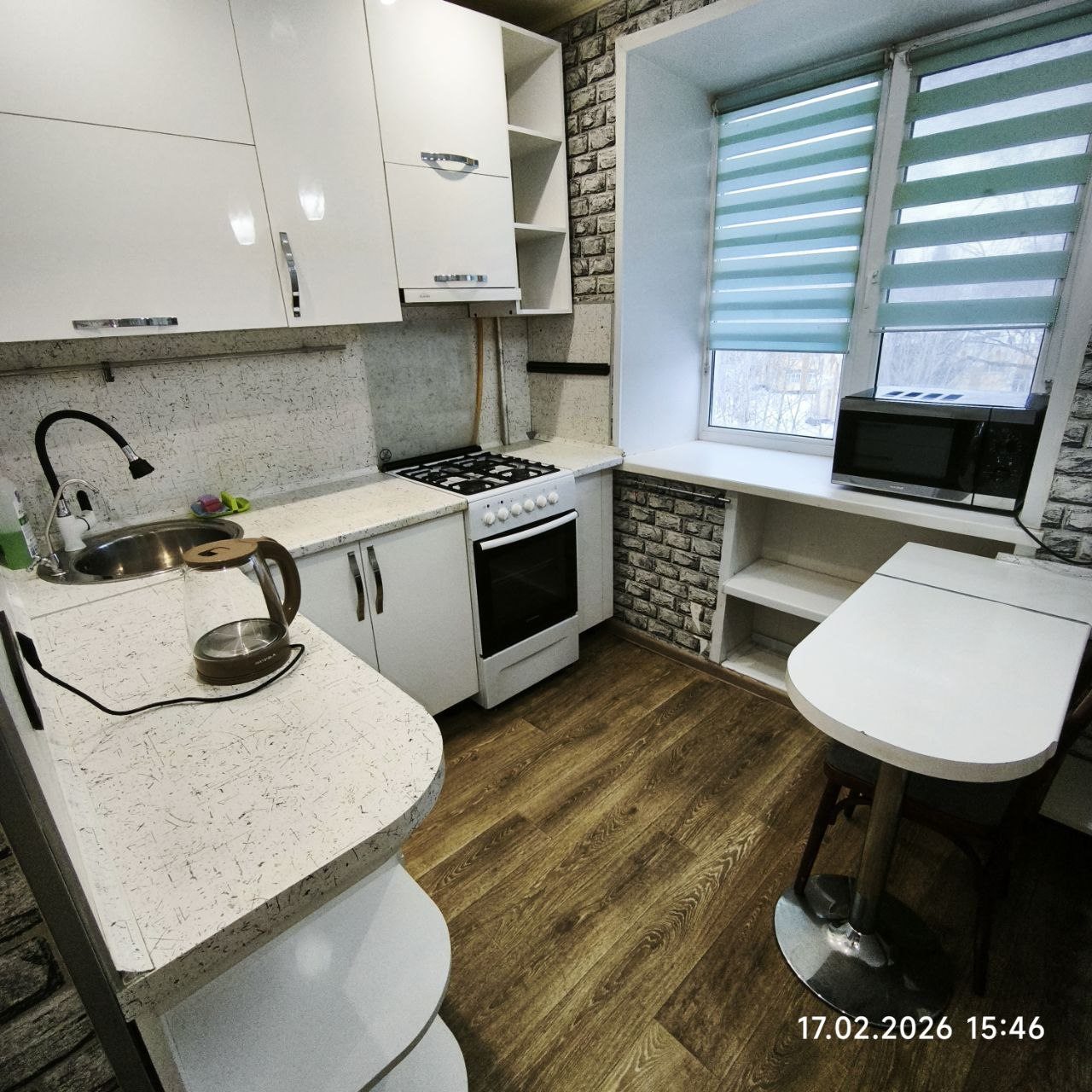 Кухня укомплектована бытовыми приборами для организации питания: электрический чайник, газовая плита и духовой шкаф, микроволновая печь. В шаговой доступности работают различные продуктовые магазины и супермаркеты.