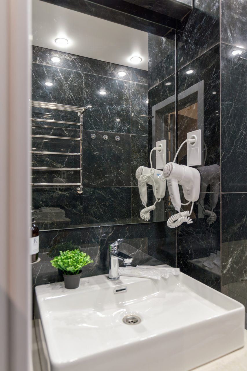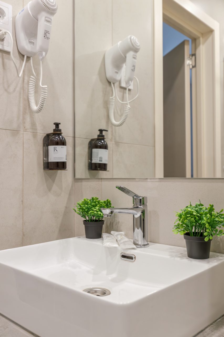 Во всех номерах есть все необходимое для комфортного проживания, а именно — кондиционер, ЖК-телевизор, спутниковое телевидение, холодильник, стиральная машинка, микроволновая печь, чайник. Во всех номерах так же установлены ванные комнаты с душем, феном и средствами личной гигиены.