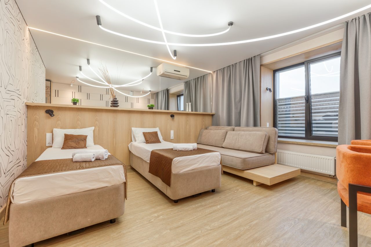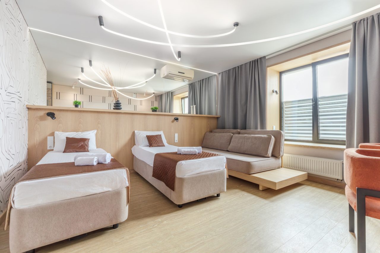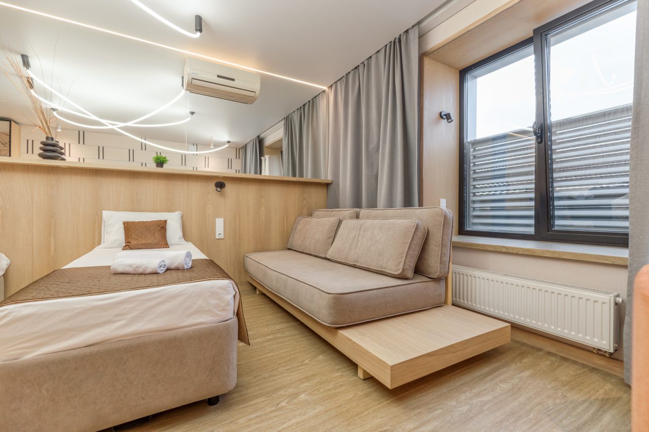 Отель оставляет приятное впечатление своей гармонией и спокойствием. Атмосфера легкая и ненавязчивая. В интерьере есть своя изюминка, чувствуется забота о настроении гостей. В номере тихо, можно спокойно работать или отдыхать. Все выглядит стильно и аккуратно.