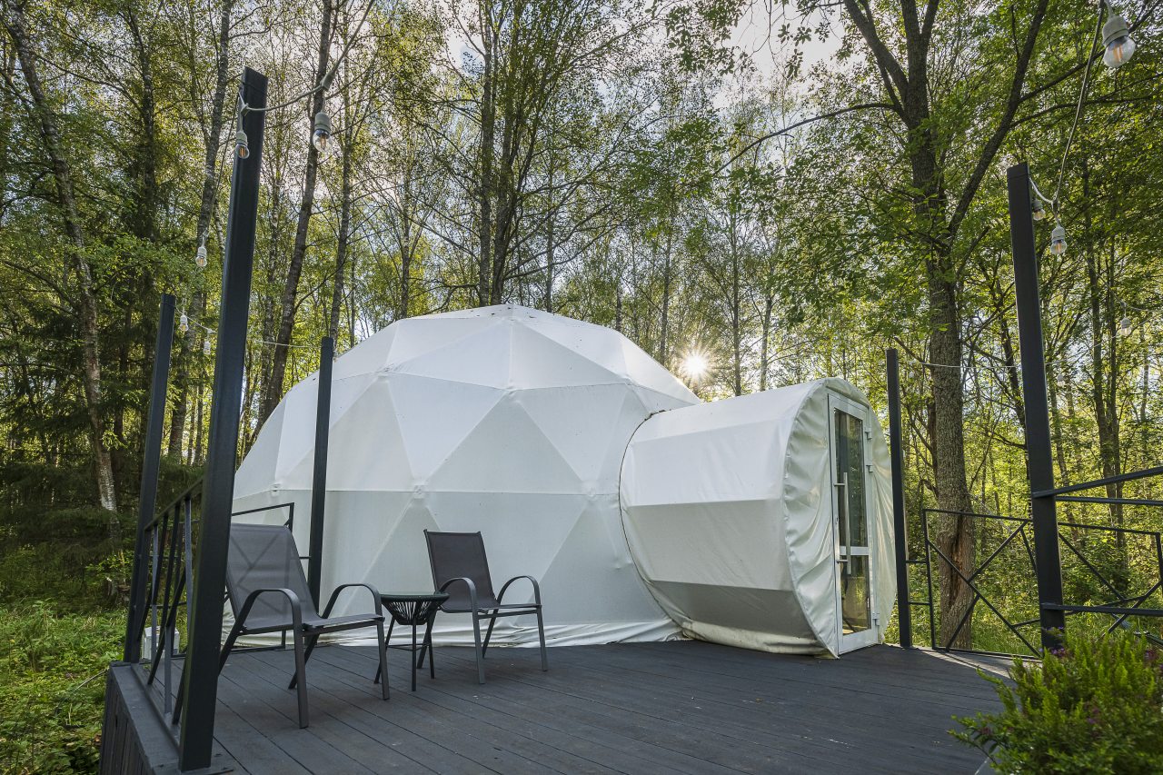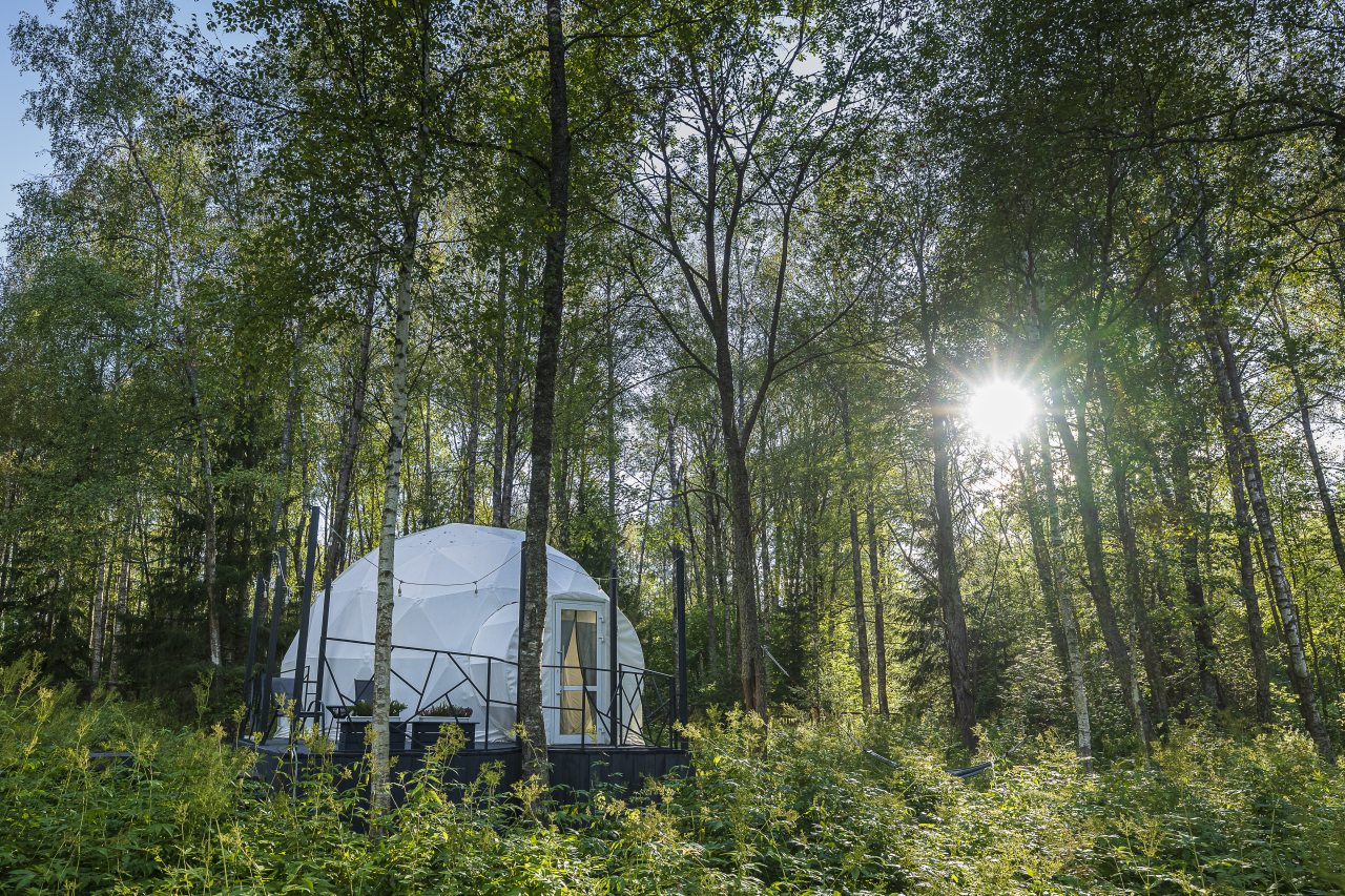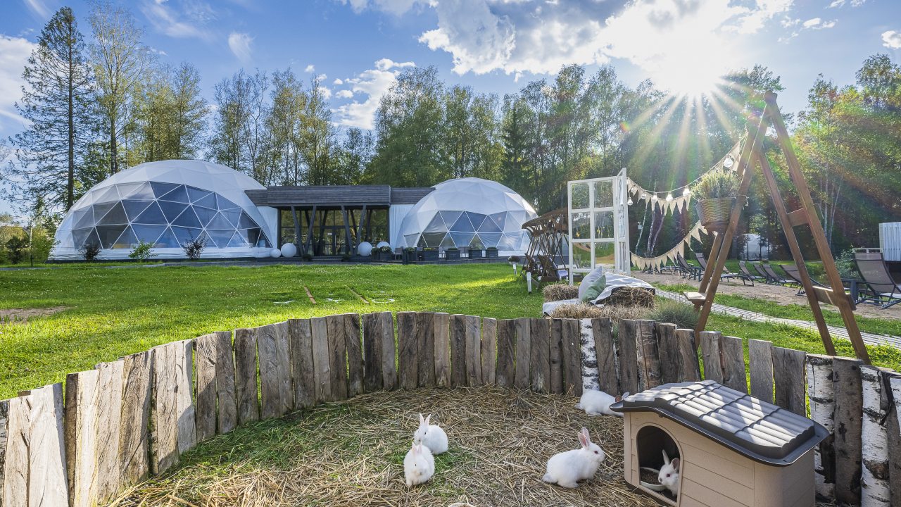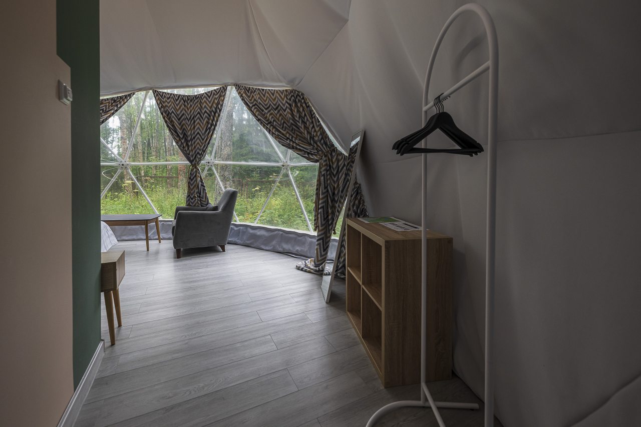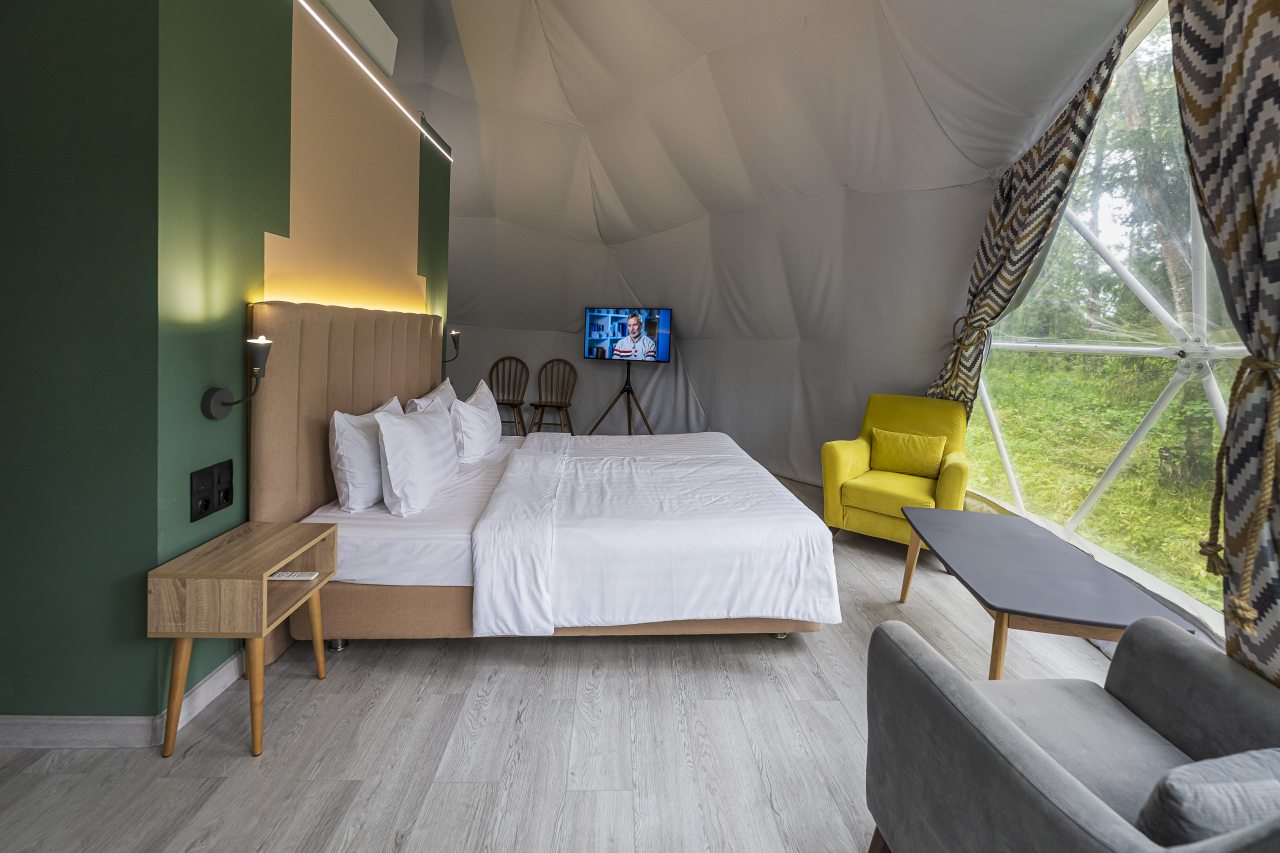 Гостям предлагают расположиться в уютных домиках, а также имеются глэмпы. Каждый оснащен комфортным спальным местом, теплыми полами и собственной ванной комнатой с полотенцами, махровыми халатами и гигиеническими средствами. В домах установлены телевизор и кондиционер, и имеется беспроводной интернет.