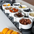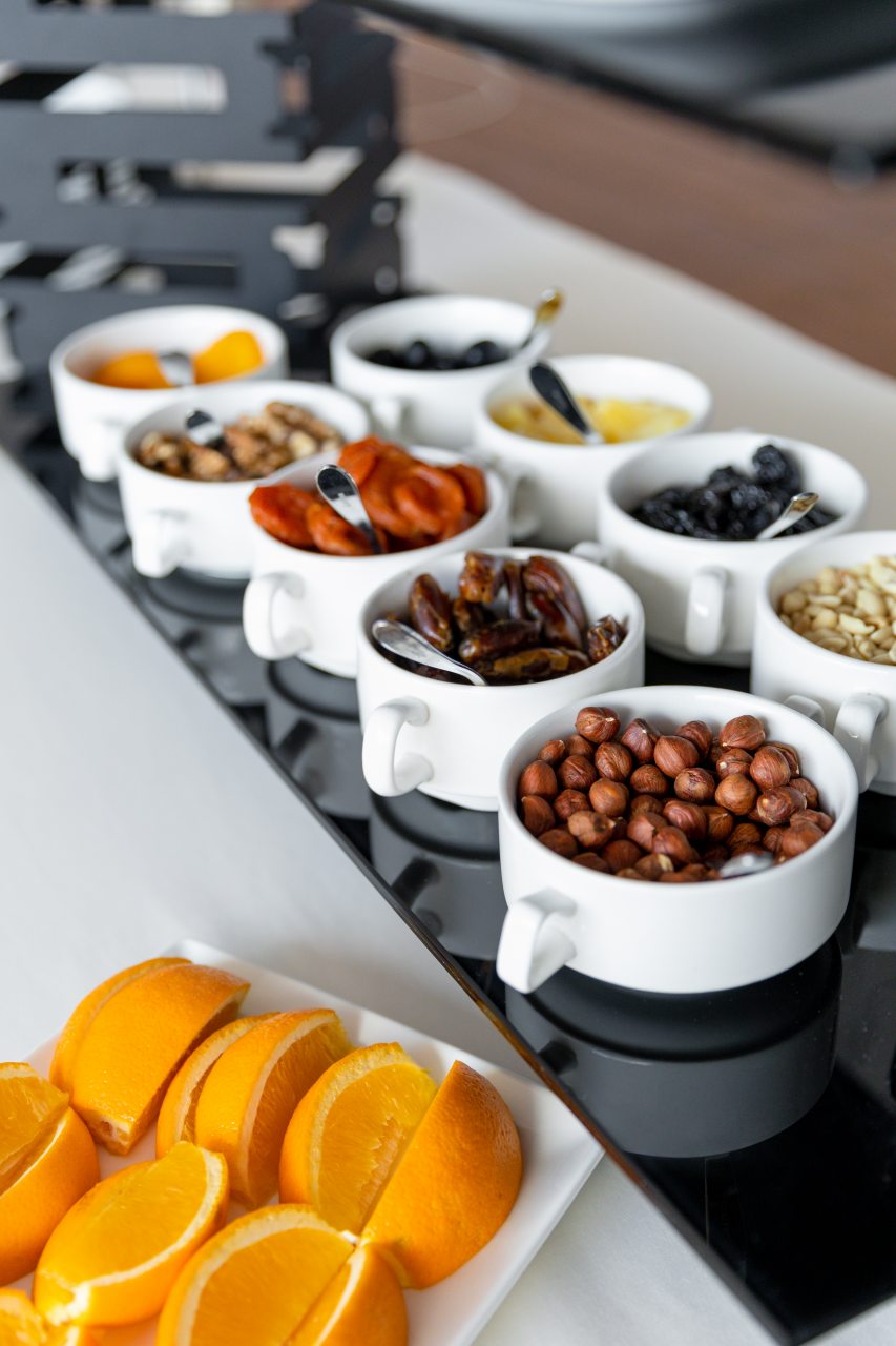 На территории работает купольный ресторан с разнообразными блюдами от шеф-повара, которые также можно заказать и в номер. Есть возможность самостоятельно приготовить барбекю. Помимо этого, в апартаментах имеется чайник, посуда и столовые приборы, а в отдельных категориях есть кухня со всей необходимой техникой для комфортной готовки.