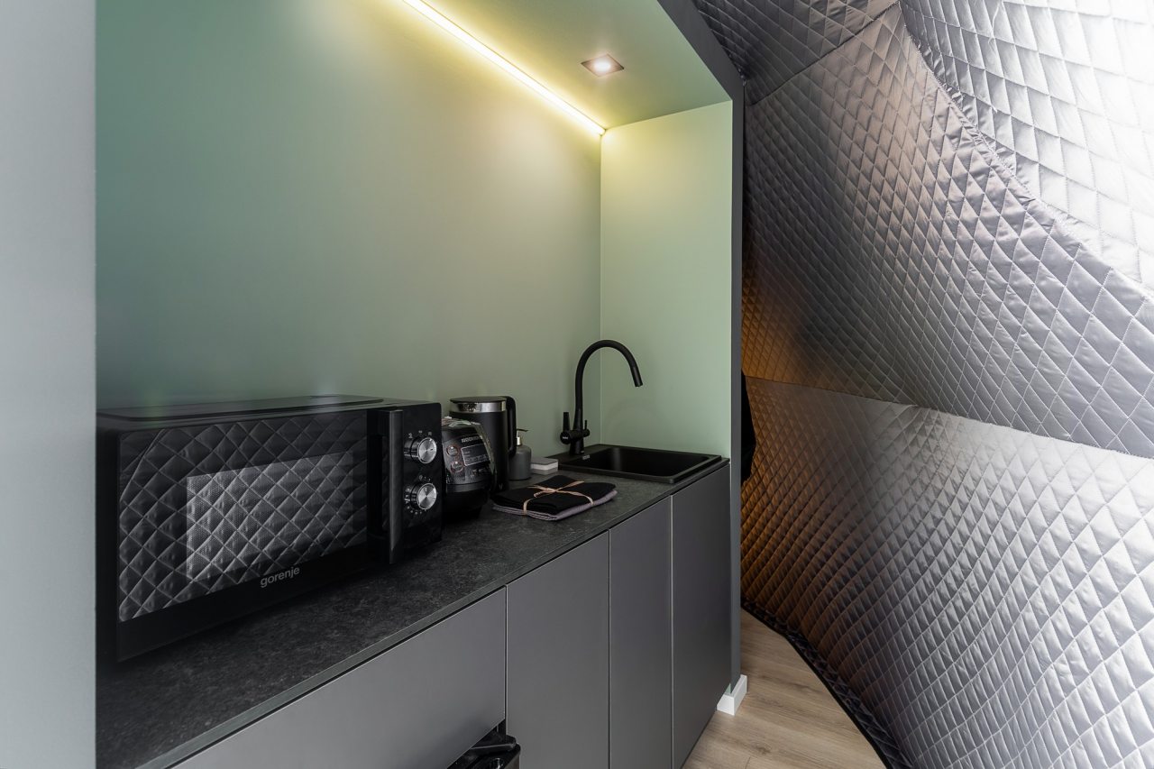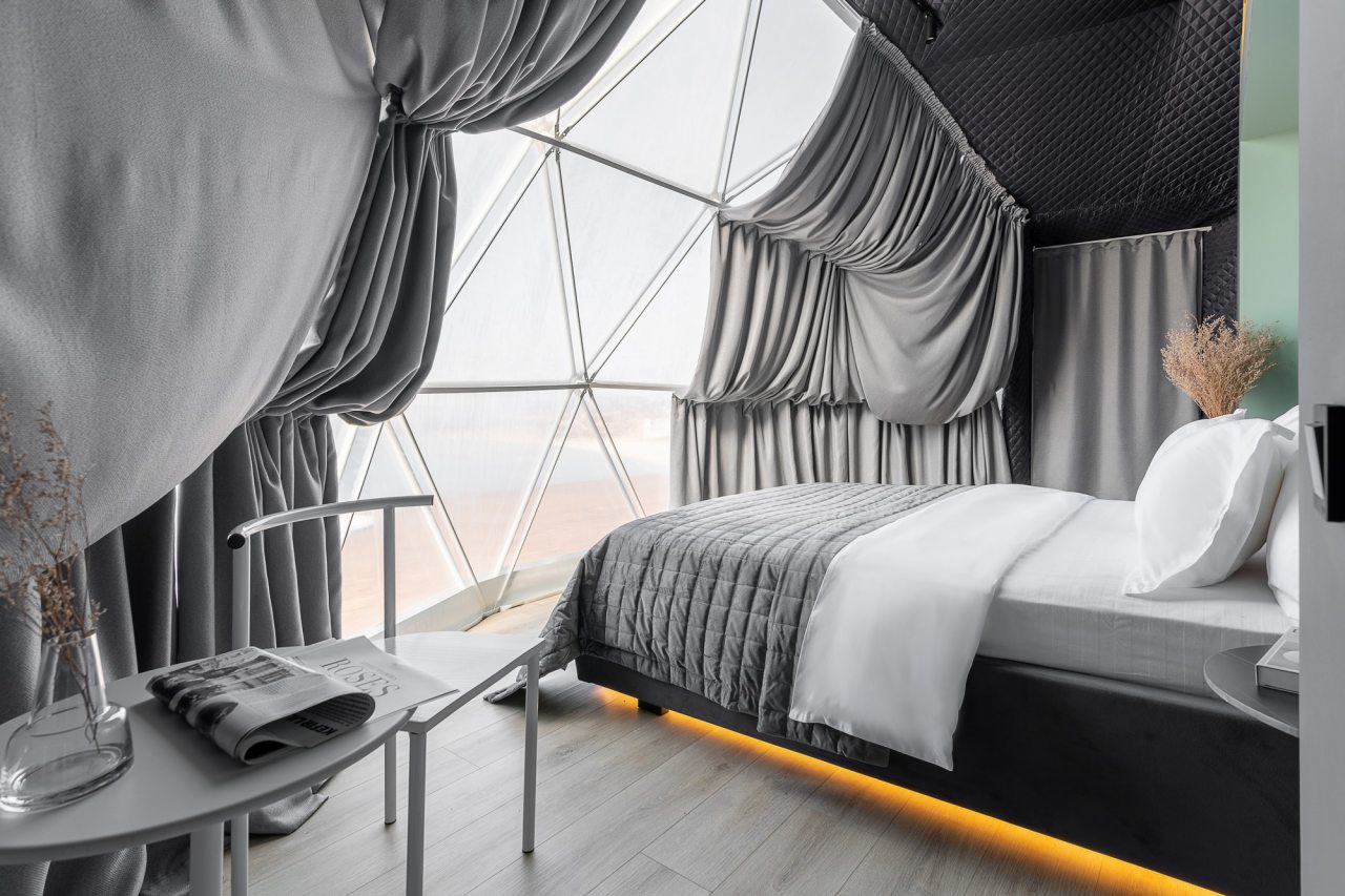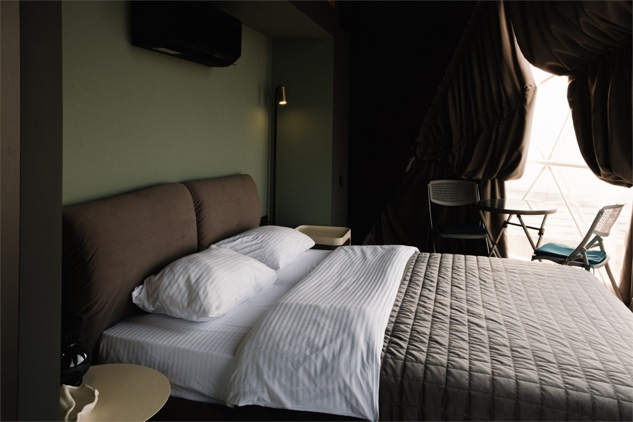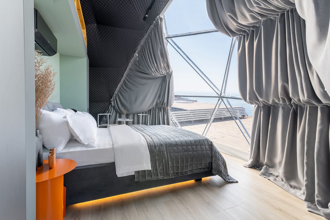 Для размещения доступны уютные дома-сферы с панорамным видом на бухту. Экосферы обустроены санузлом с душевой, удобными кроватями, кондиционером, отопительными приборами, Wi-Fi. Гостям предоставляется набор полотенец, халаты, туалетные принадлежности, фен. Для отдыха есть просторная терраса с уличной мебелью и горячей японской купелью.