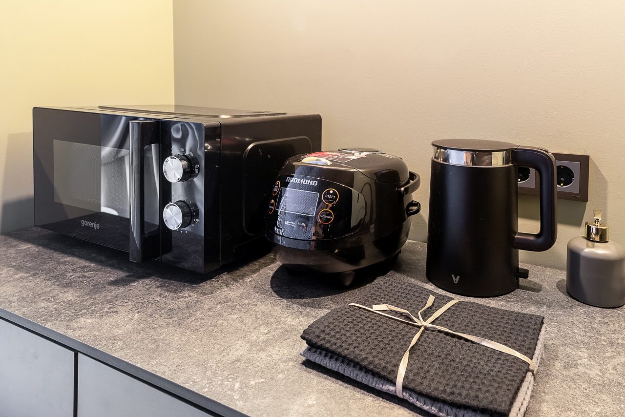 В каждом домике есть мини-кухня с микроволновой печью, посудой, чайником и столовыми приборами. На территории базы отдыха работает стильный ресторан морской кухни.
