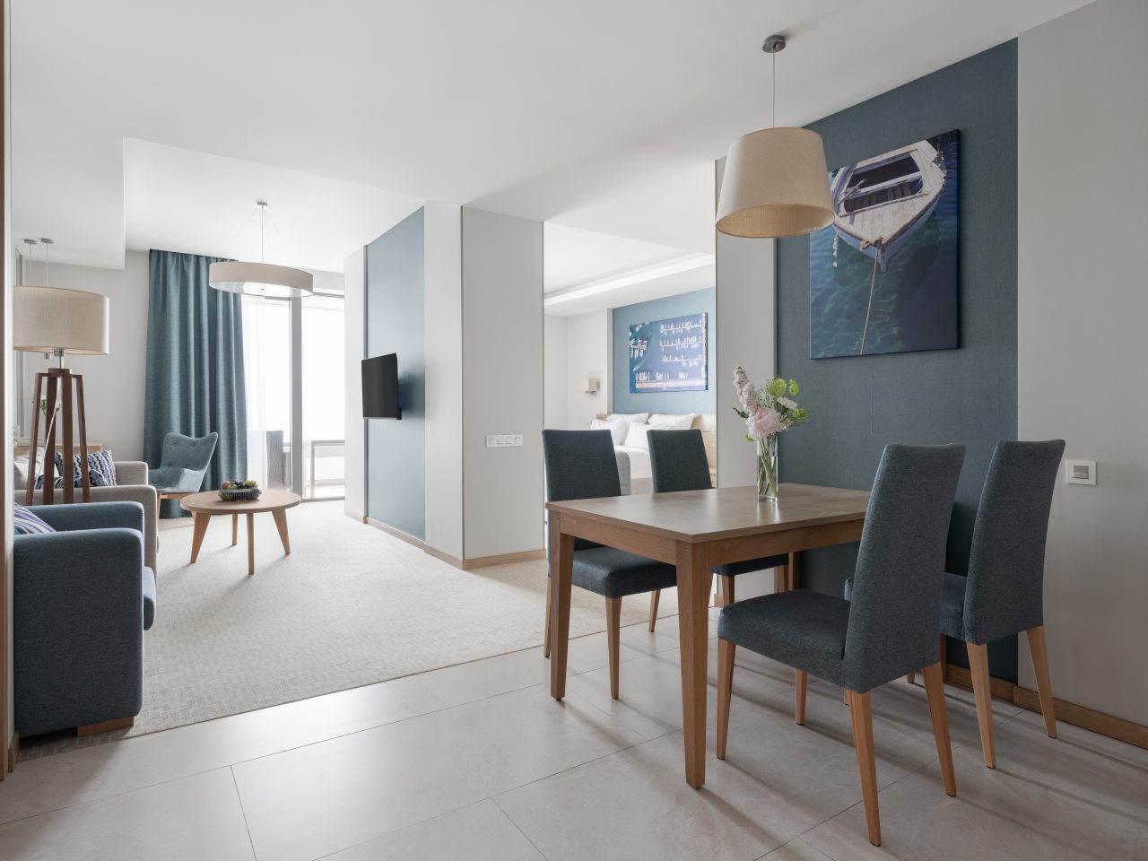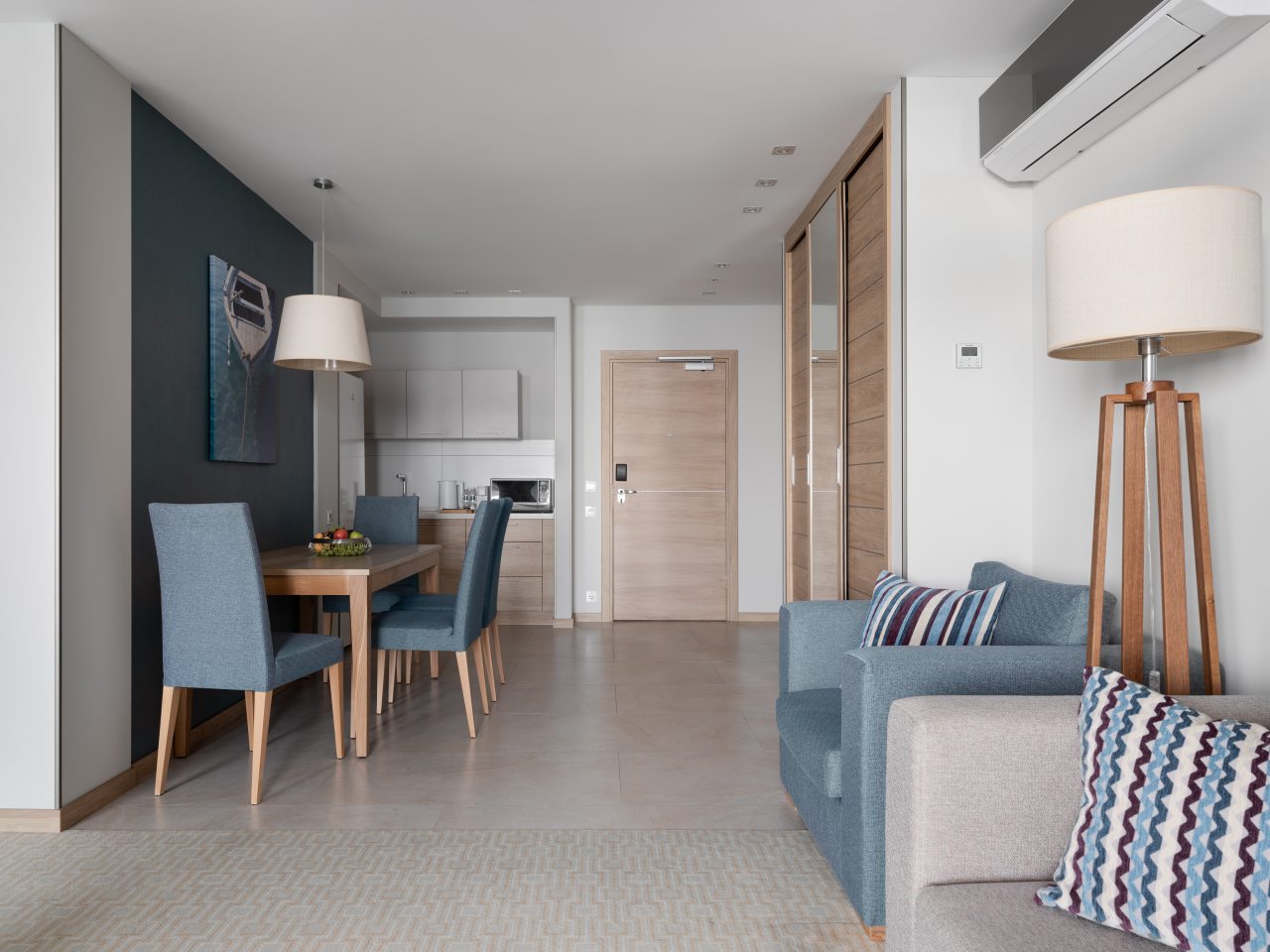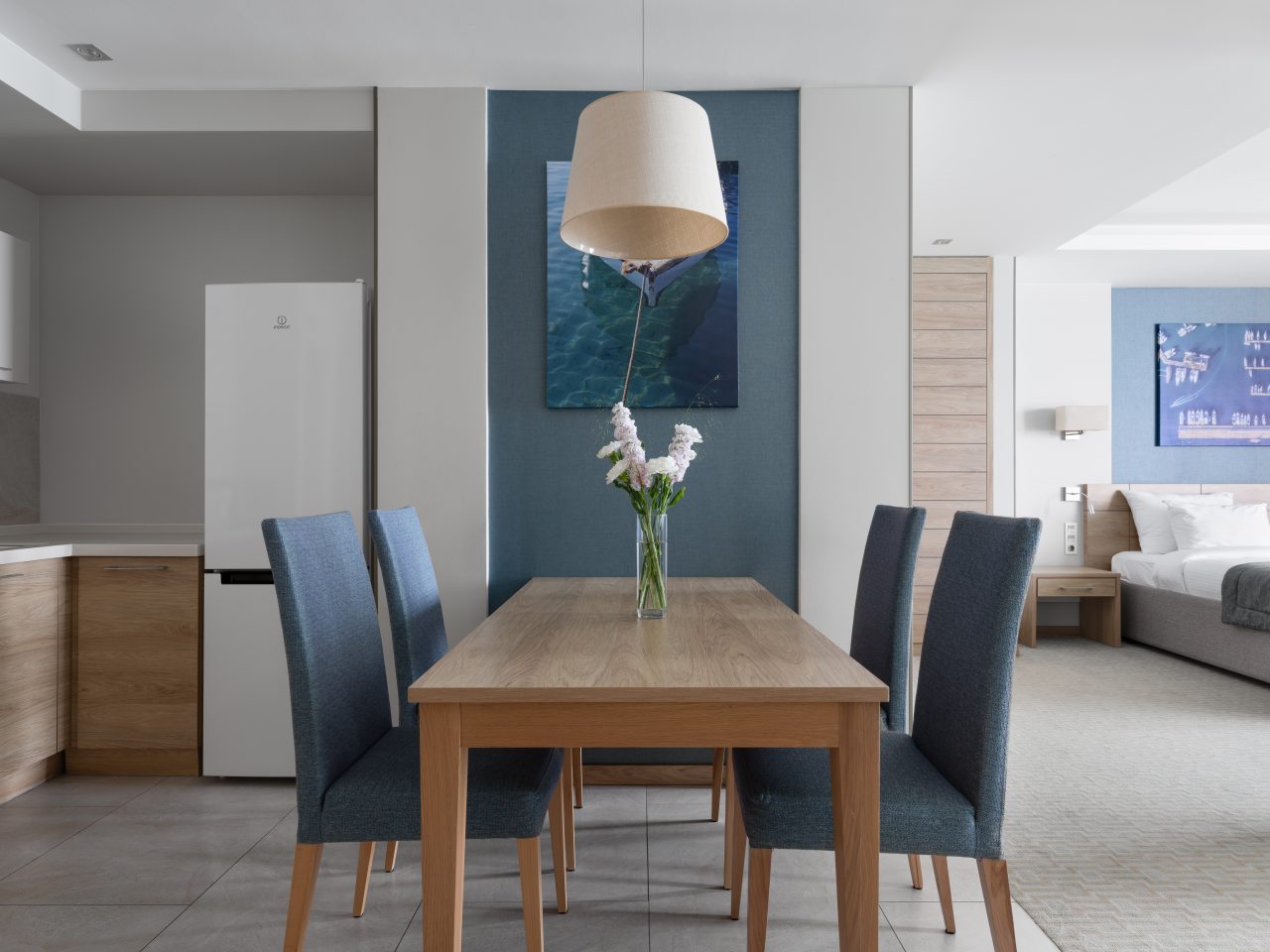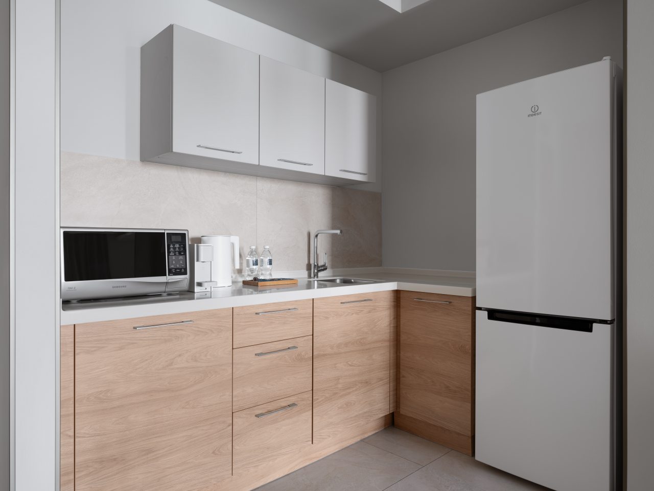 Для дополнительного комфорта в номерах предусмотрена кухонная зона с чайником, холодильником, СВЧ. А в ресторане при апарт-отеле вы сможете попробовать изысканные напитки и блюда.