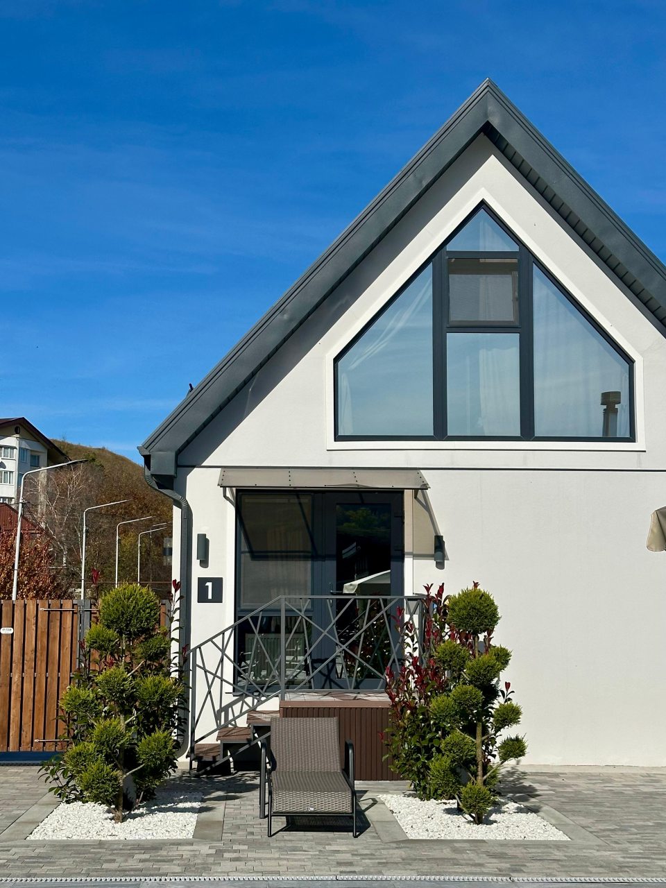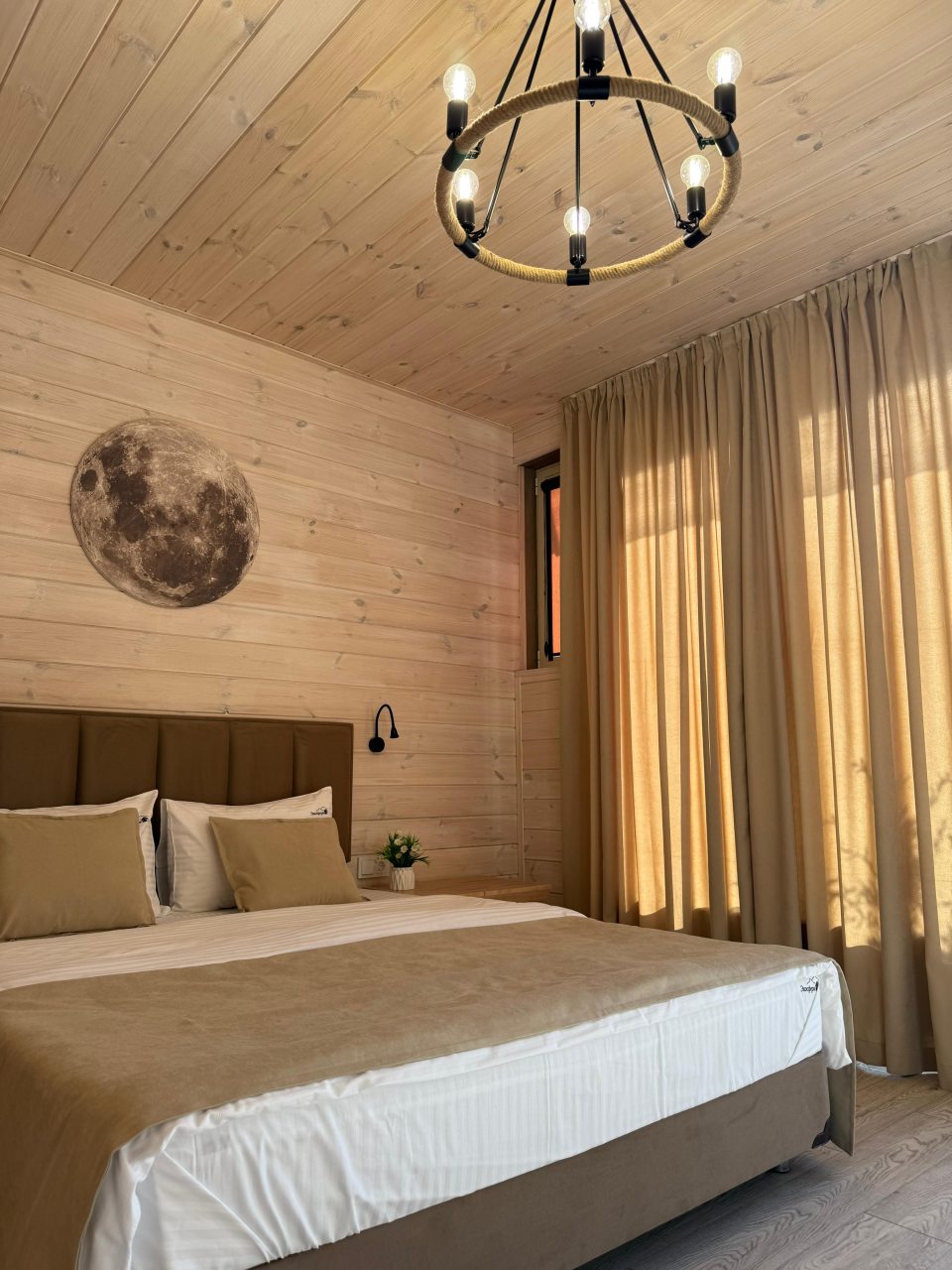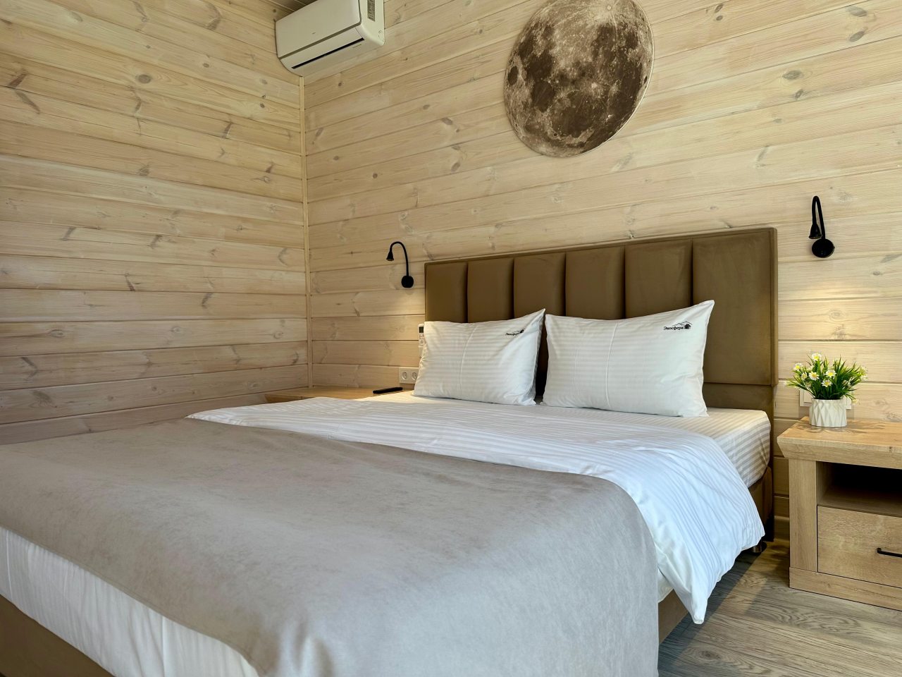 Внутри гостевого дома, выполненного в особом стиле, все продумано до мелочей: удобные кровати с мягким изголовьем, ортопедические матрасы и натуральное постельное белье из 100% хлопка, гипоаллергенные одеяла и подушки, светильники для чтения, раскладной диван, телевизор и Wi-Fi. В ванной комнате предусмотрены не только средства личной гигиены и премиальная косметика, но и фен, полотенца, тапочки, халат.