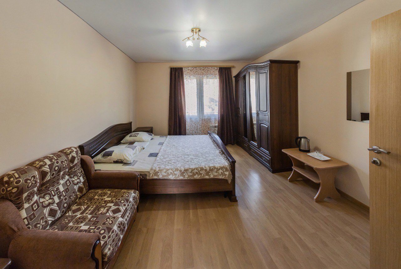Интерьер выполнен в светлых тонах, что позволяет гостям чувствовать комфорт и уют. Сделан современный ремонт. Гостям предоставляются комфортные 2,3,4-местные номера класса «стандарт», а также просторные семейные номера (на 3-10 спальных места). В каждом номере есть холодильник, кондиционер, чайник, ванная комната с душем, санузел, шкаф, а также балкон и бесплатный Wi-Fi .