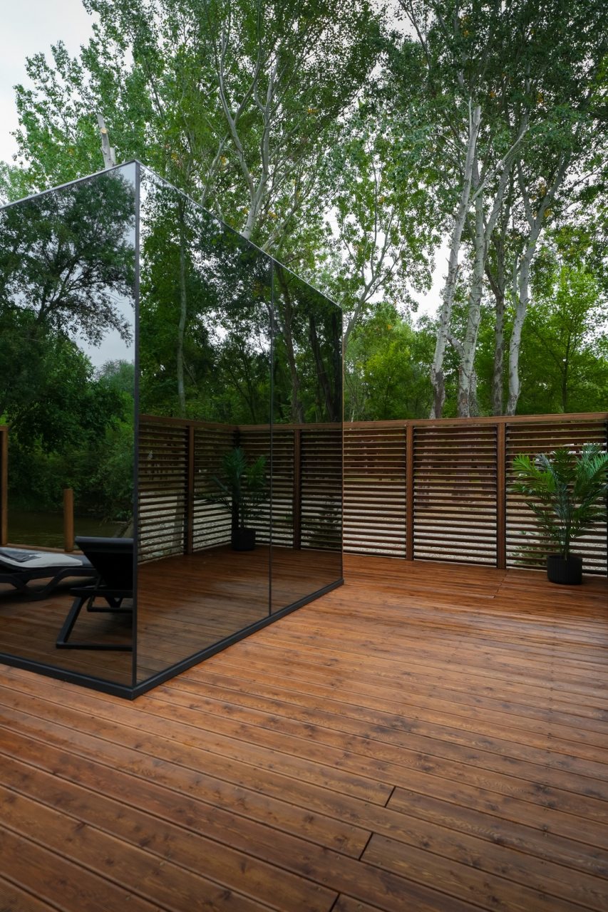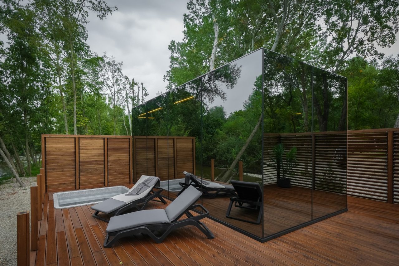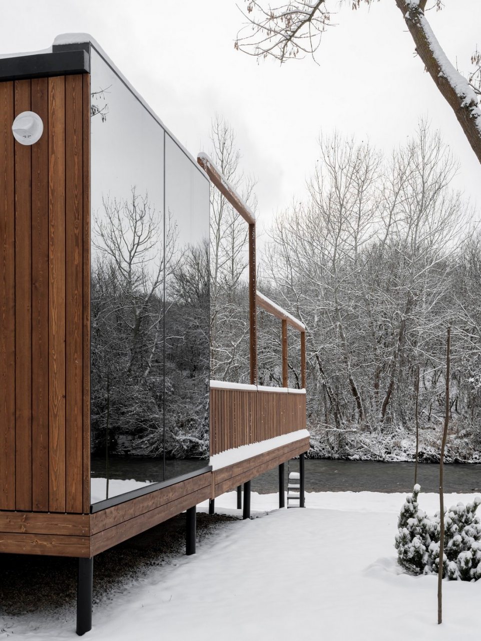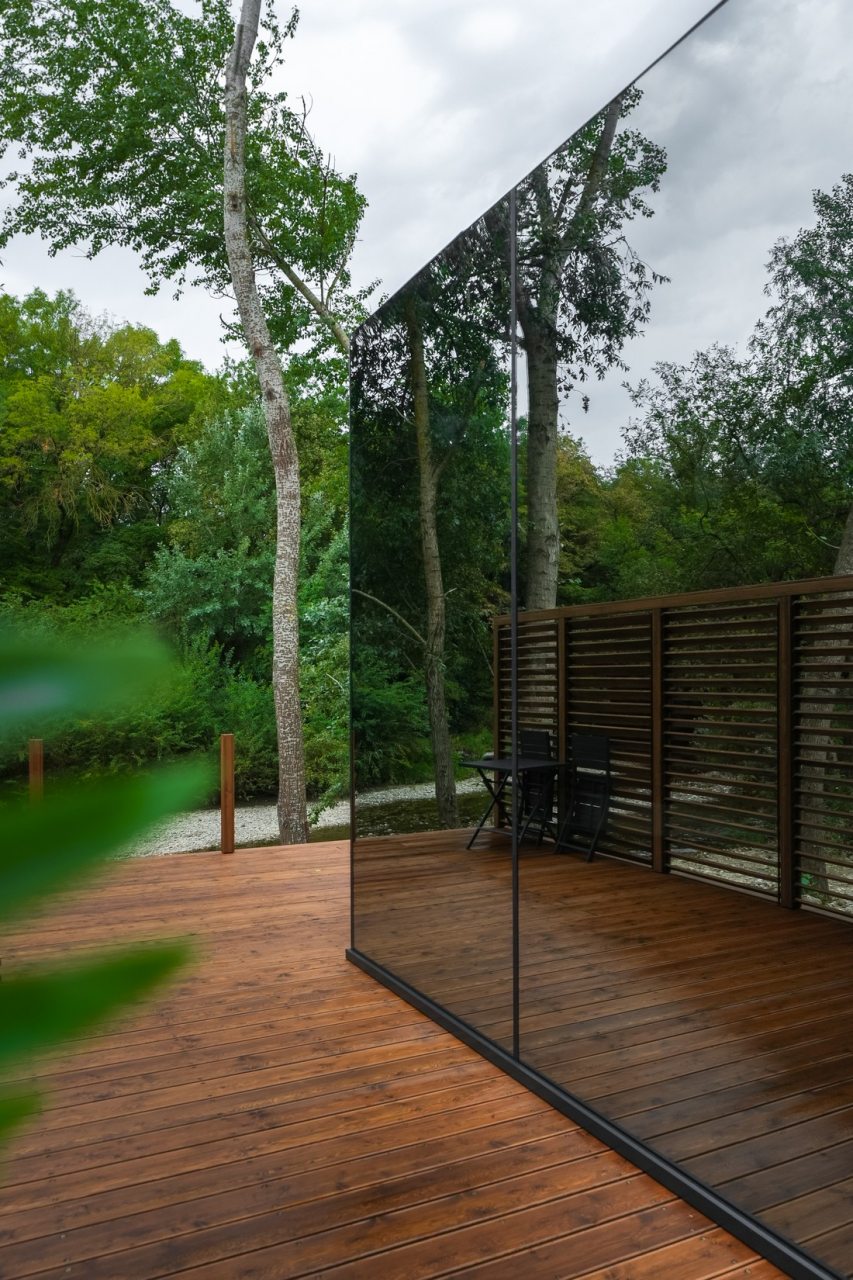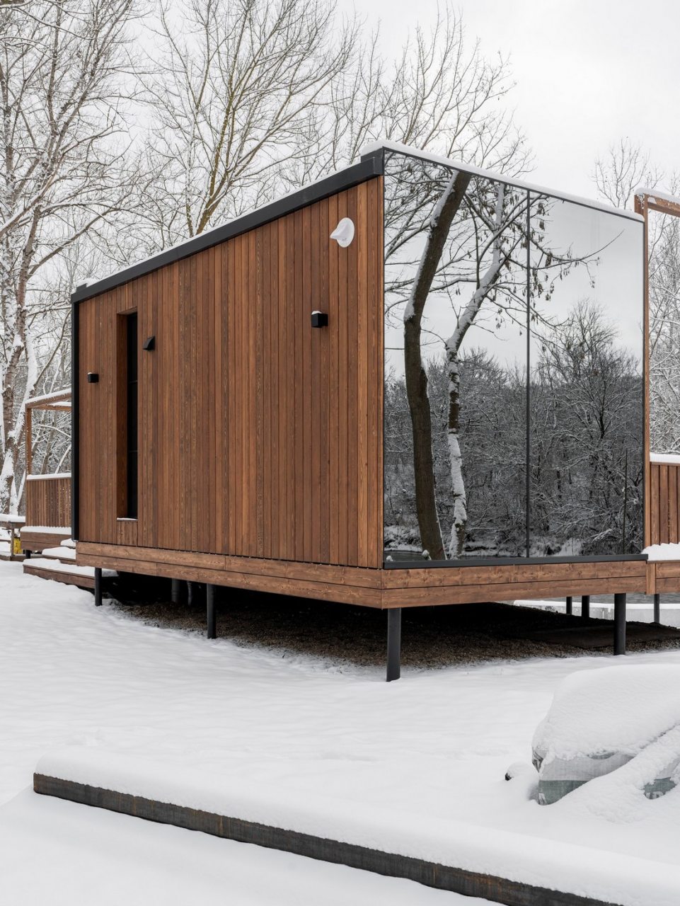 Для пребывания отдыхающих представлены необычные зеркальные домики различных категорий вместительностью от двух до четырех человек, что идеально размещения для пары или семьи с детьми. Интерьер выполнен в современном стиле «Эко» и в оснащение входит качественная мебель, двуспальная кровать, техника и санузел, где есть полотенца, тапочки, халаты и косметико-гигиенический набор. Из панорамных окон открывается потрясающий вид.