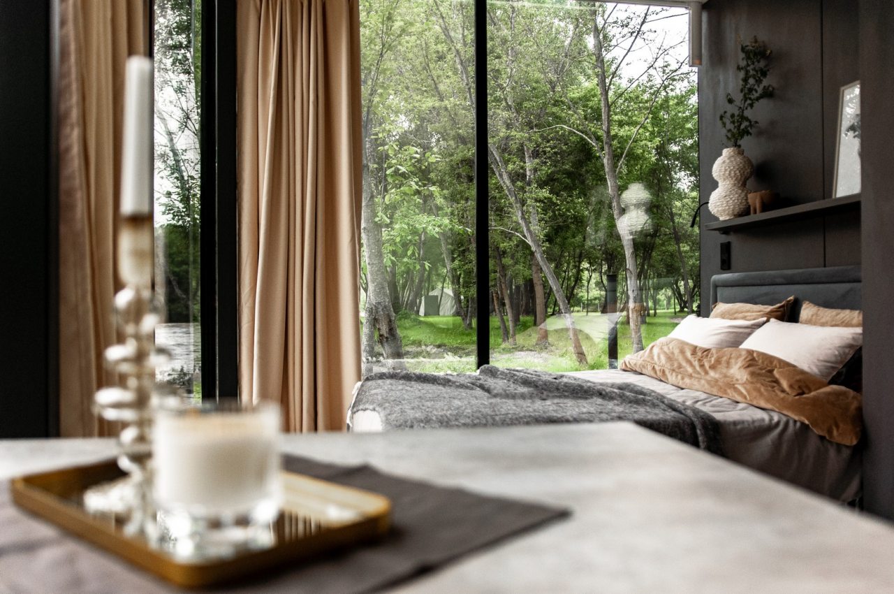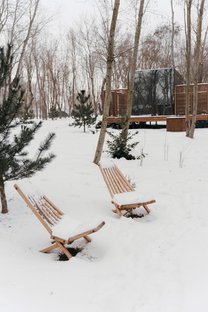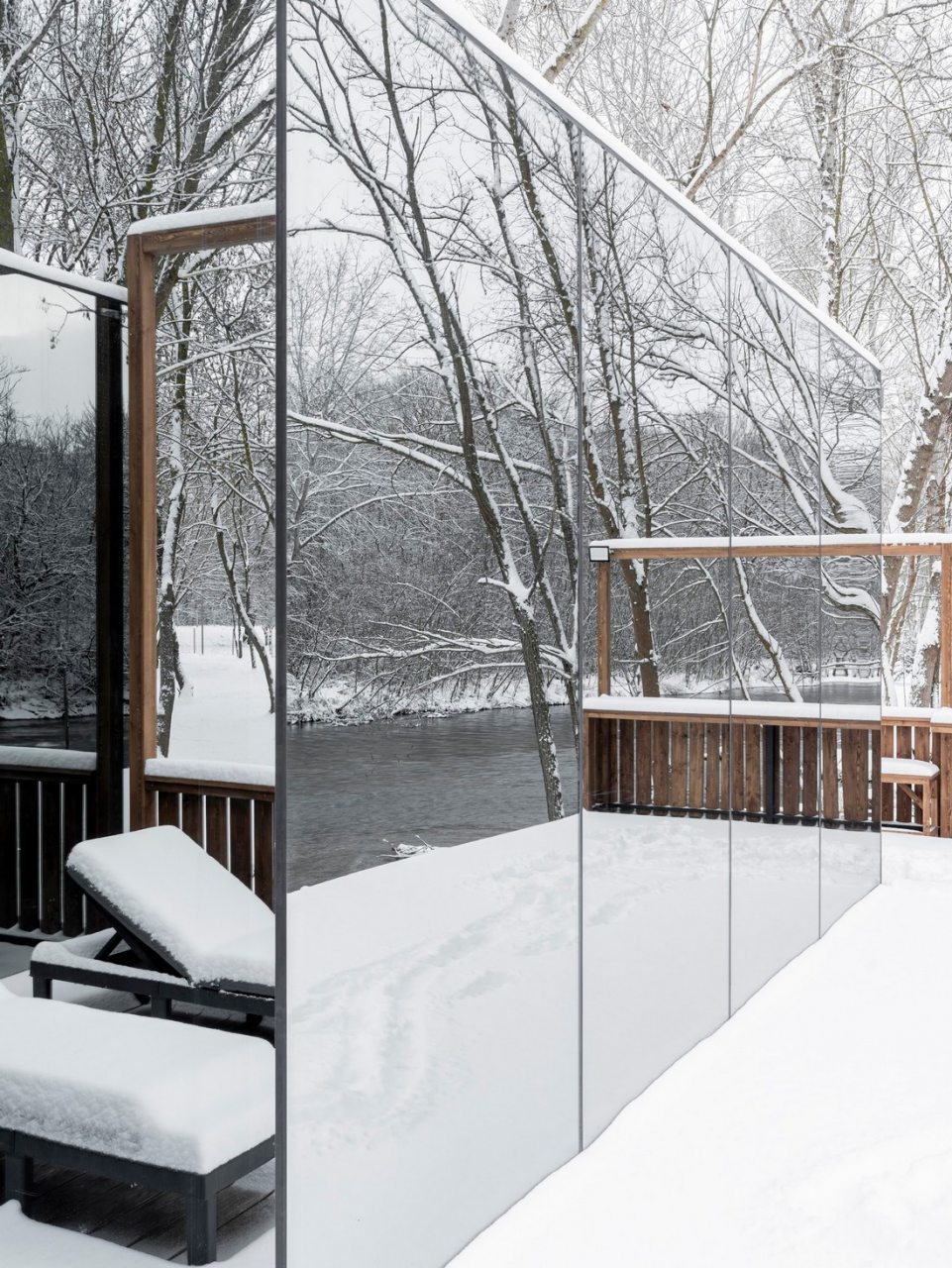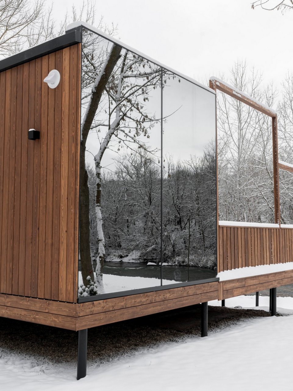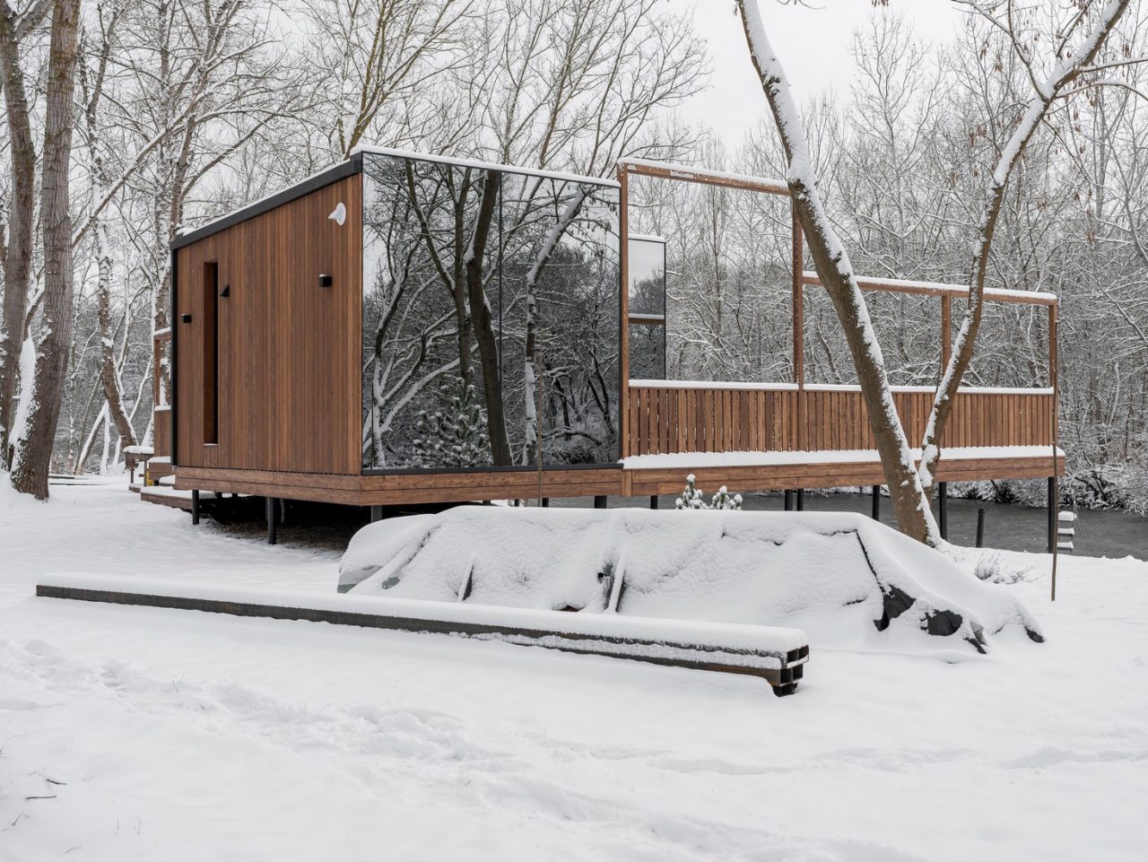 Для пребывания отдыхающих представлены необычные зеркальные домики различных категорий вместительностью от двух до четырех человек, что идеально размещения для пары или семьи с детьми. Интерьер выполнен в современном стиле «Эко» и в оснащение входит качественная мебель, двуспальная кровать, техника и санузел, где есть полотенца, тапочки, халаты и косметико-гигиенический набор. Из панорамных окон открывается потрясающий вид.