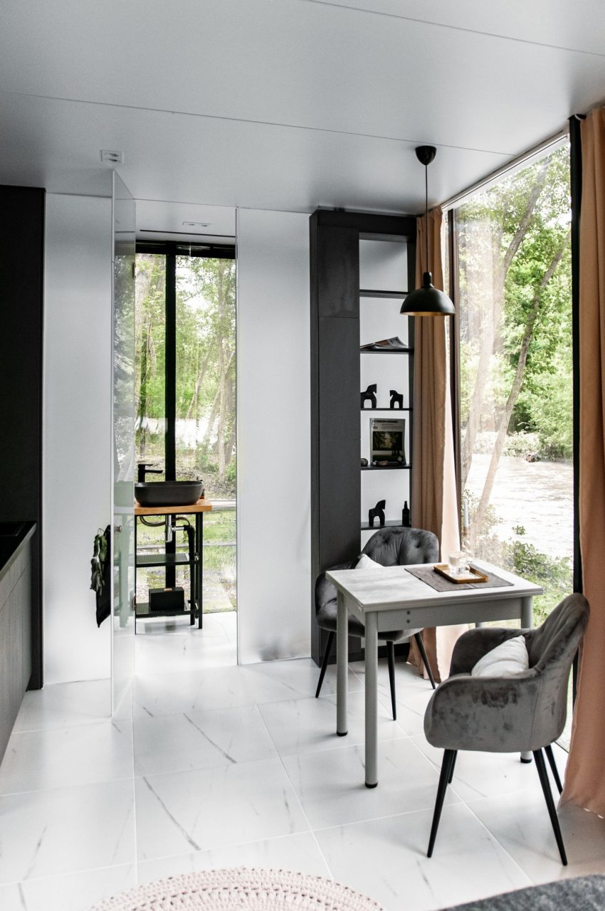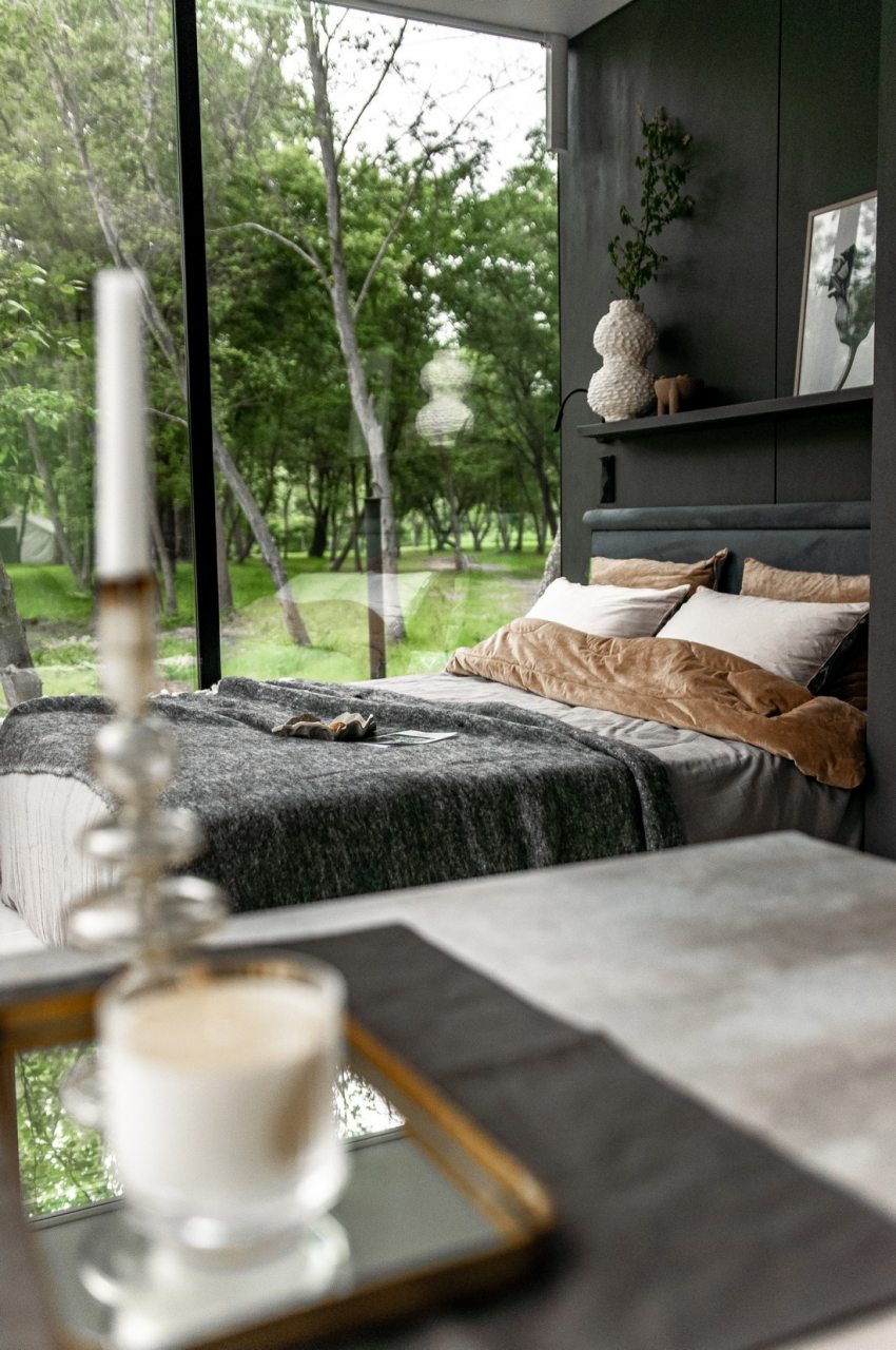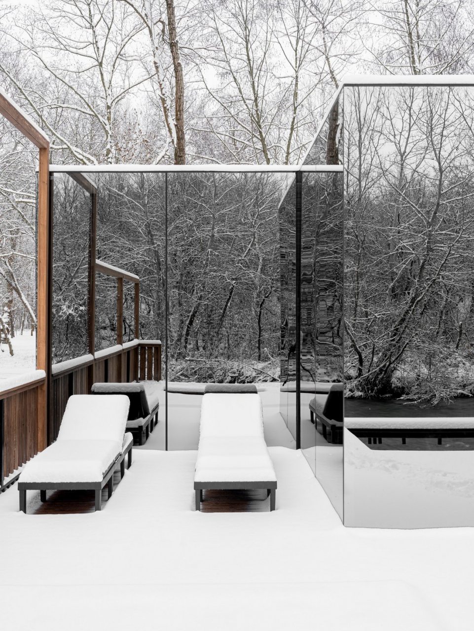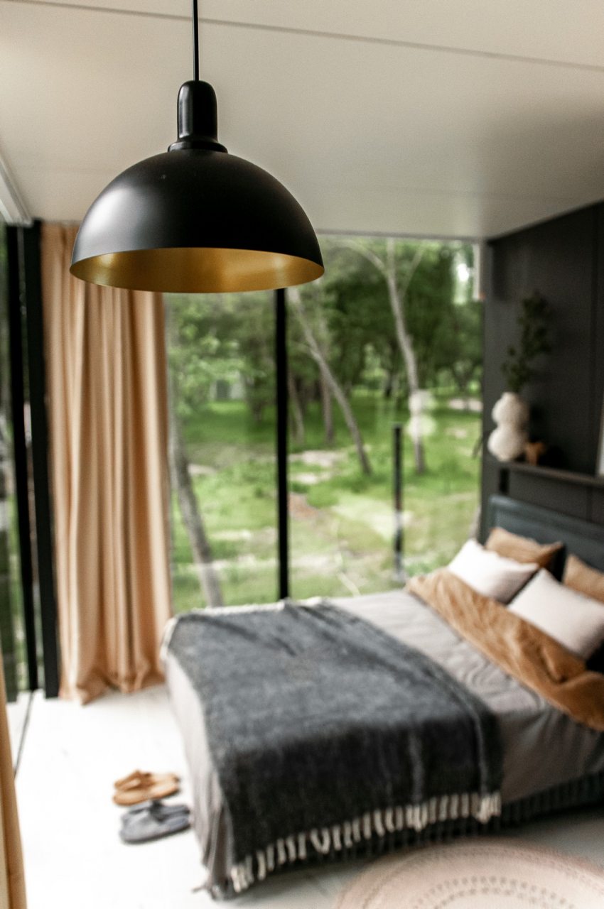 Для пребывания отдыхающих представлены необычные зеркальные домики различных категорий вместительностью от двух до четырех человек, что идеально размещения для пары или семьи с детьми. Интерьер выполнен в современном стиле «Эко» и в оснащение входит качественная мебель, двуспальная кровать, техника и санузел, где есть полотенца, тапочки, халаты и косметико-гигиенический набор. Из панорамных окон открывается потрясающий вид.