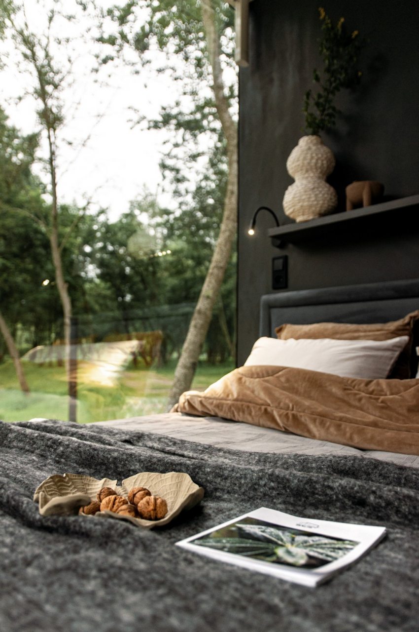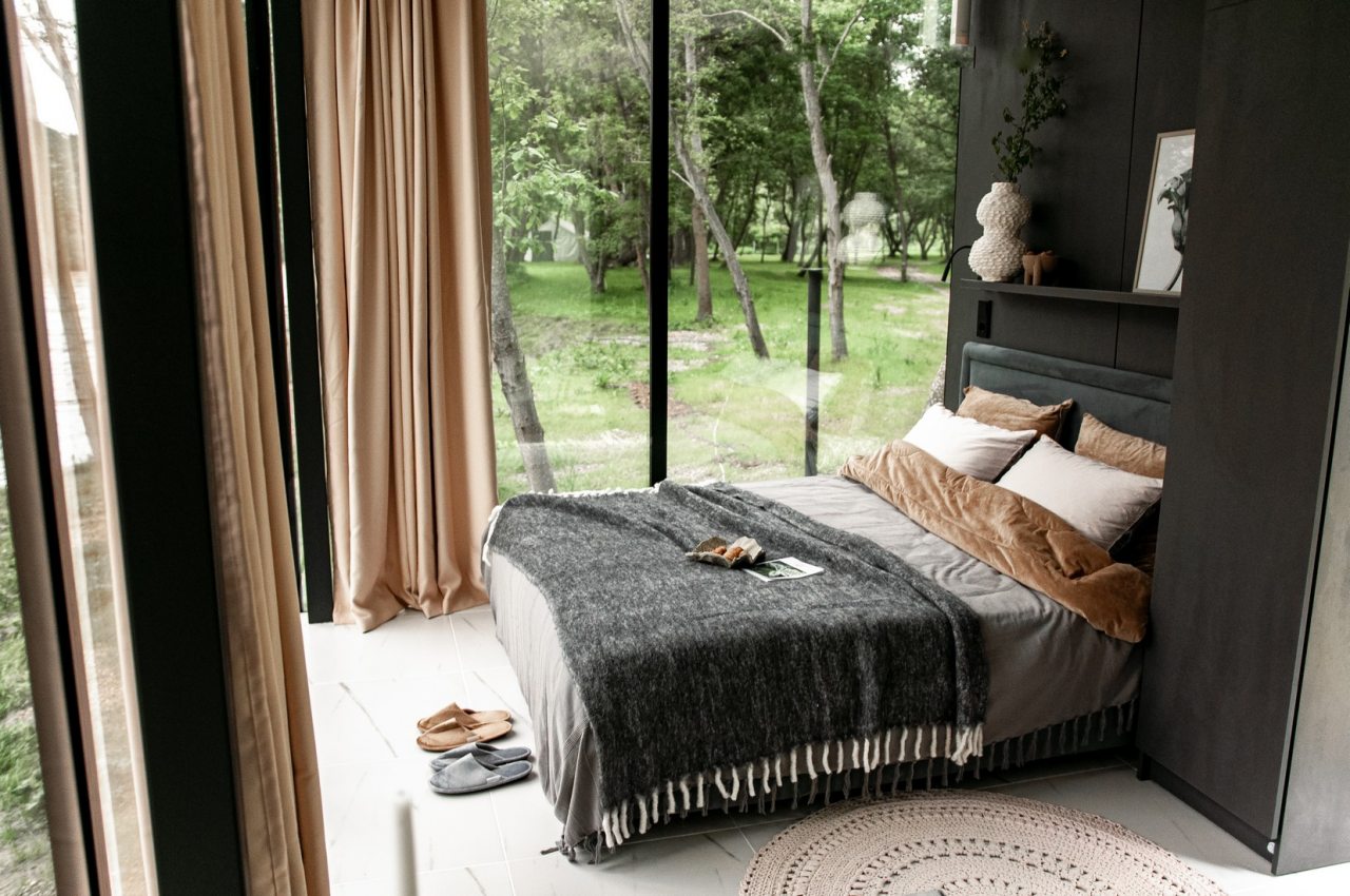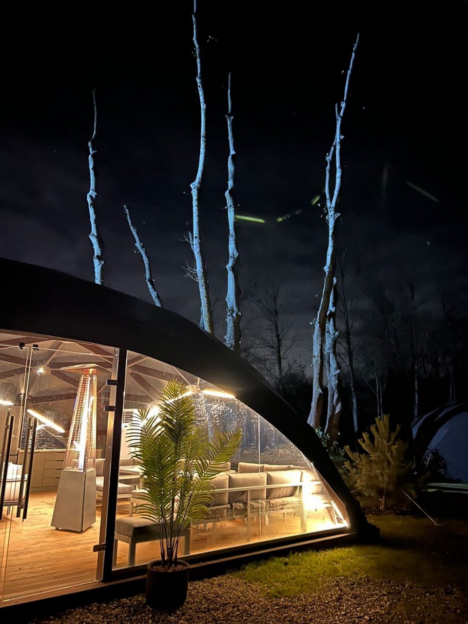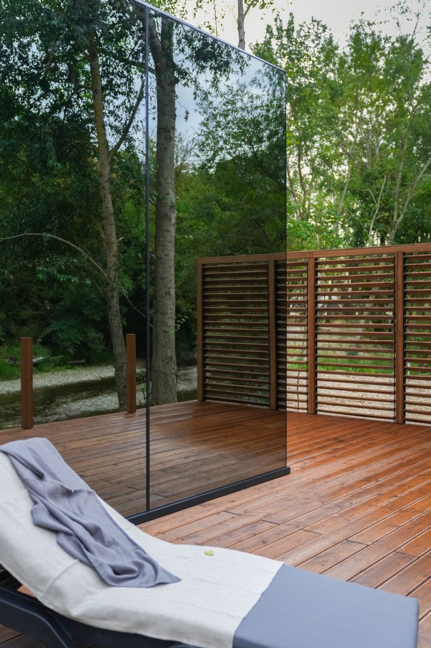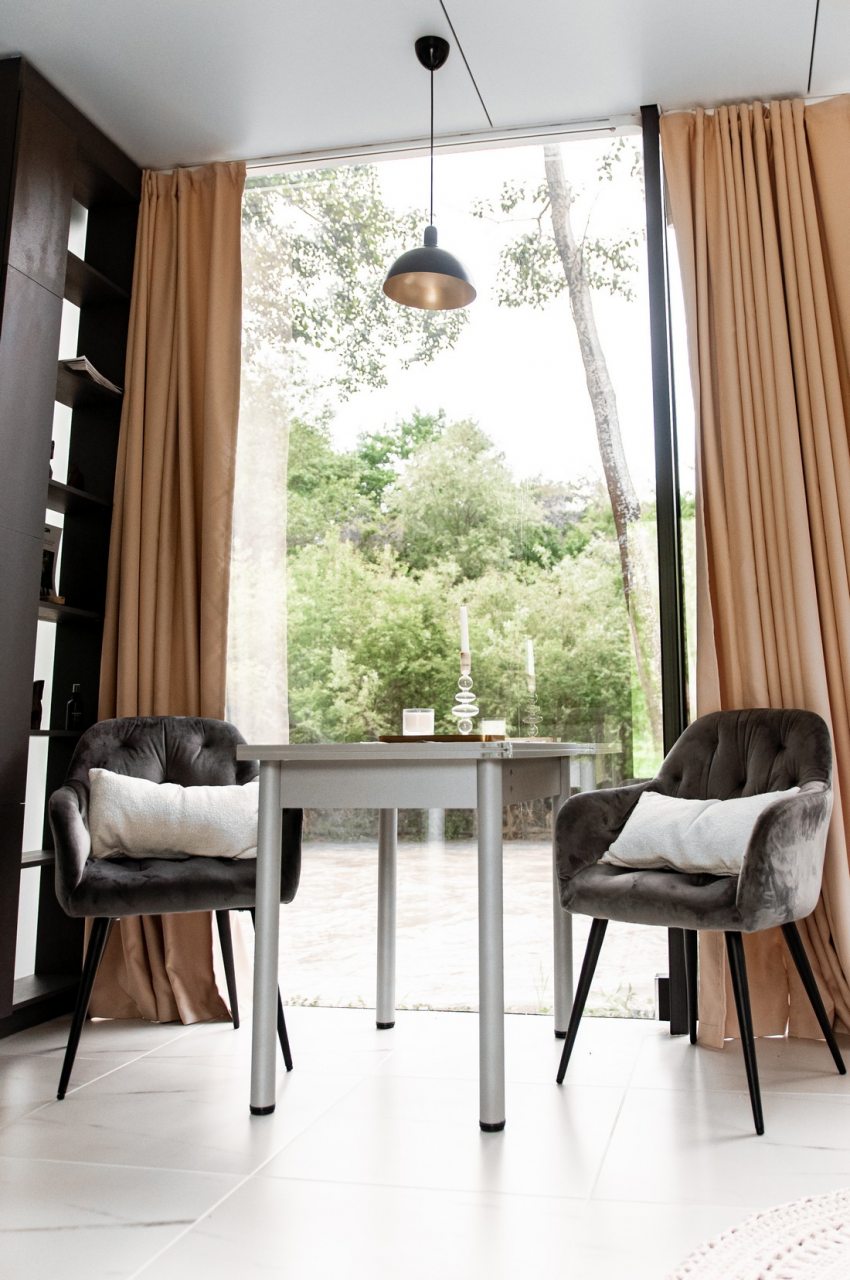 Для пребывания отдыхающих представлены необычные зеркальные домики различных категорий вместительностью от двух до четырех человек, что идеально размещения для пары или семьи с детьми. Интерьер выполнен в современном стиле «Эко» и в оснащение входит качественная мебель, двуспальная кровать, техника и санузел, где есть полотенца, тапочки, халаты и косметико-гигиенический набор. Из панорамных окон открывается потрясающий вид.