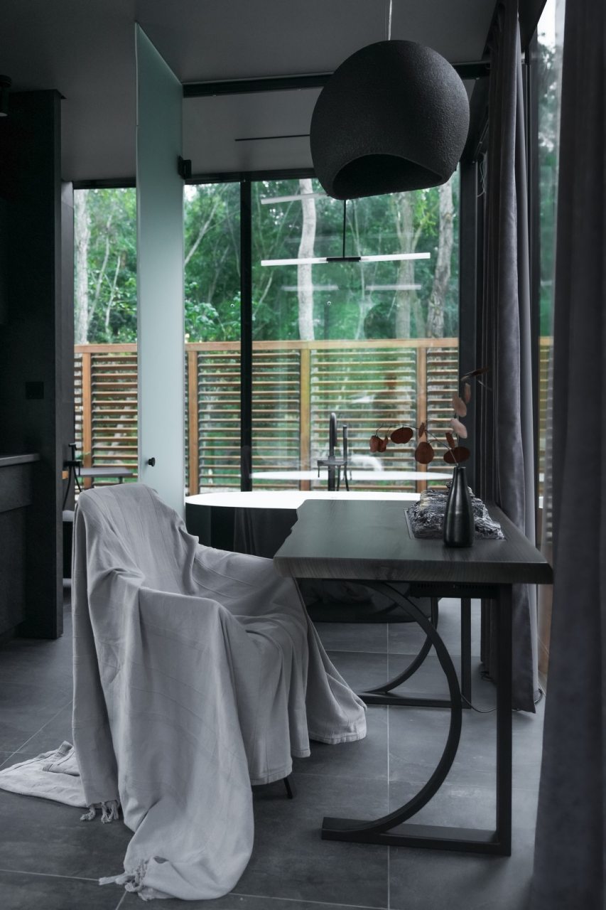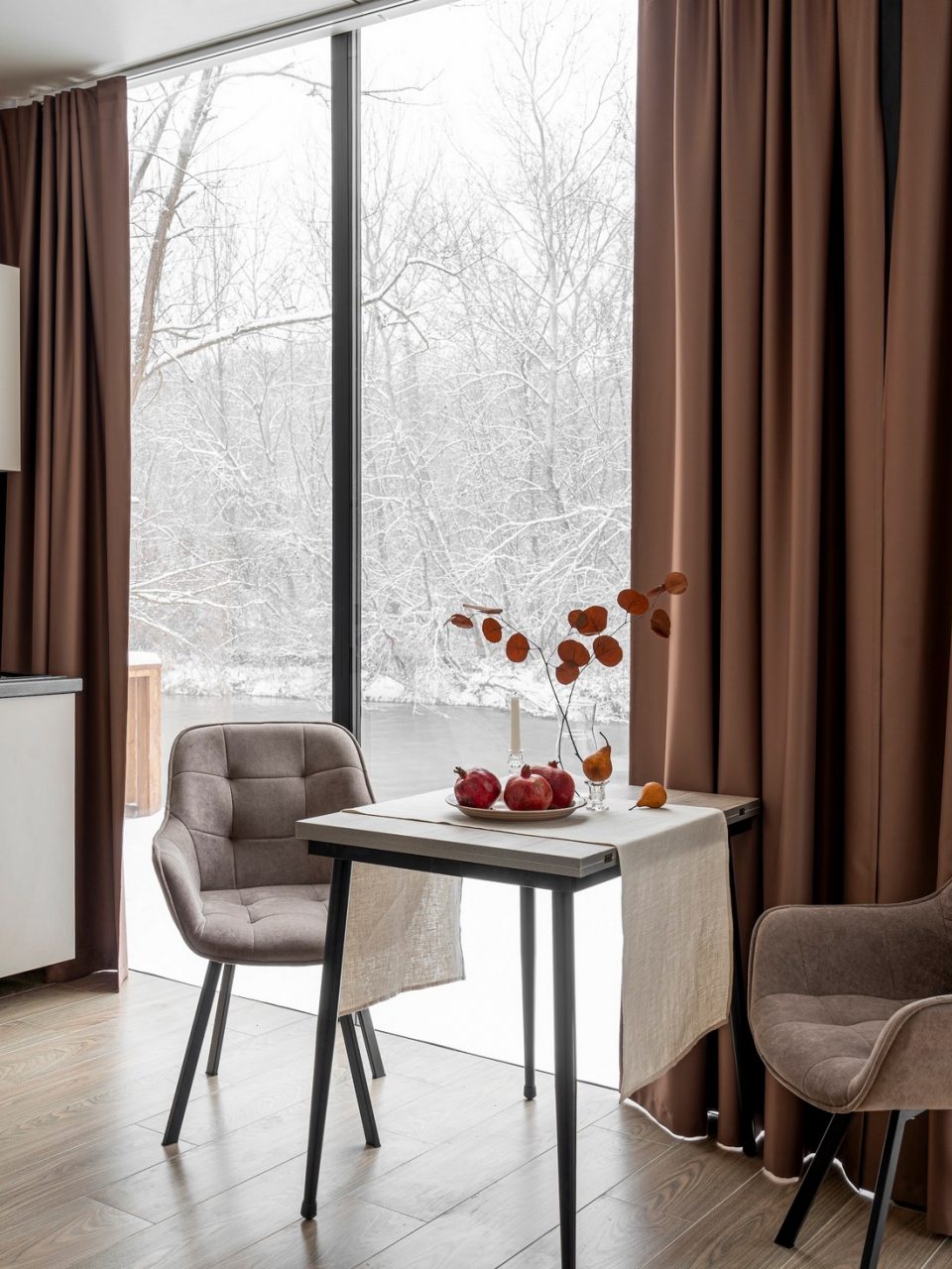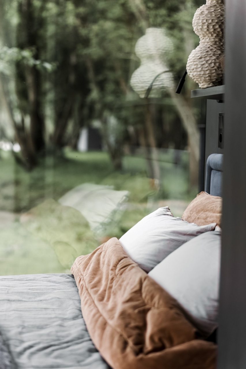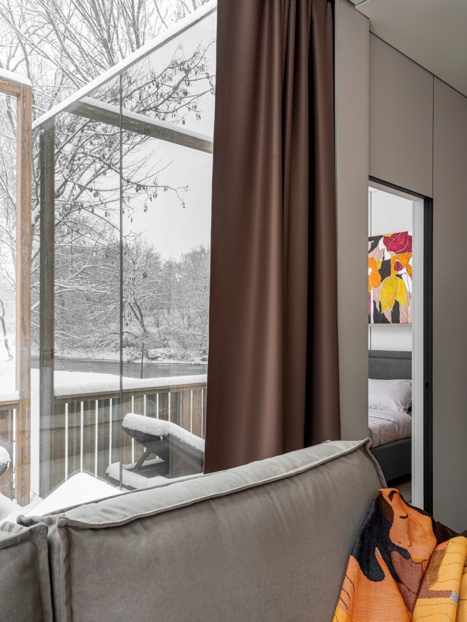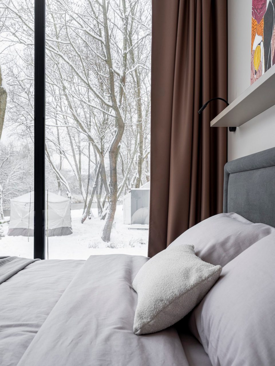 Для пребывания отдыхающих представлены необычные зеркальные домики различных категорий вместительностью от двух до четырех человек, что идеально размещения для пары или семьи с детьми. Интерьер выполнен в современном стиле «Эко» и в оснащение входит качественная мебель, двуспальная кровать, техника и санузел, где есть полотенца, тапочки, халаты и косметико-гигиенический набор. Из панорамных окон открывается потрясающий вид.