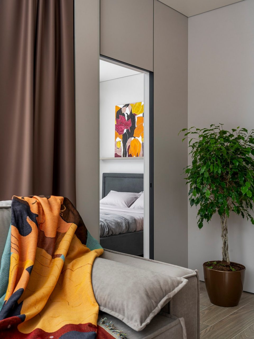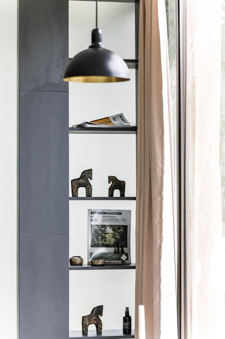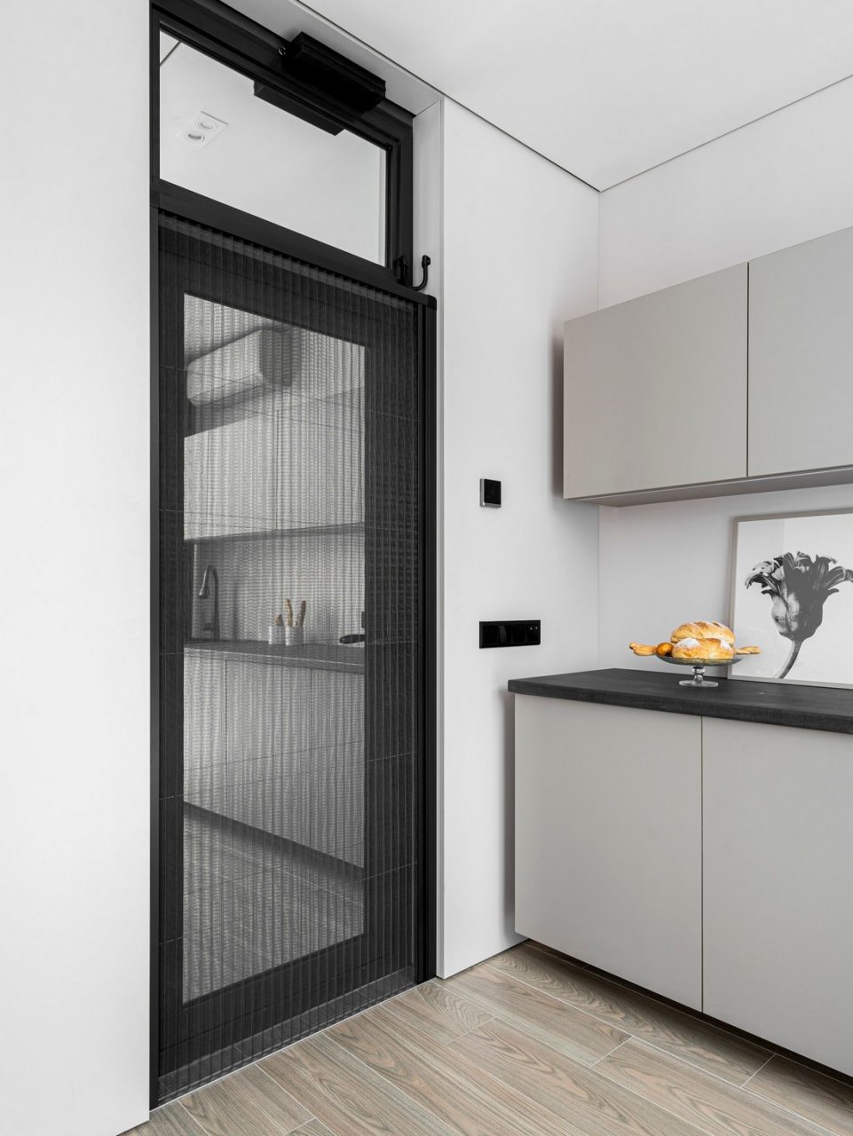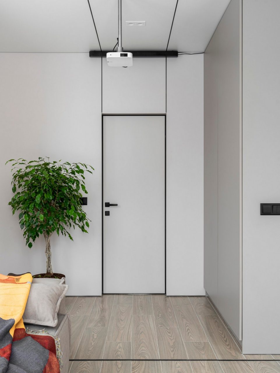 В кухне-гостиной есть обеденный стол, посуда, рабочая поверхность, навесные шкафчики и бытовые приборы для организации питания: холодильник, микроволновая печь, кофемашина, чайник, варочная панель.