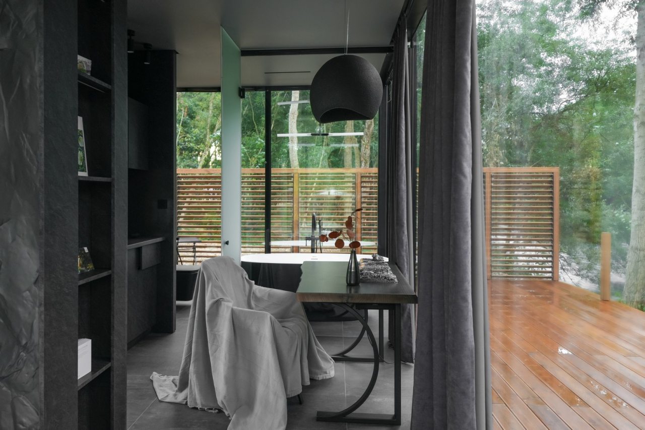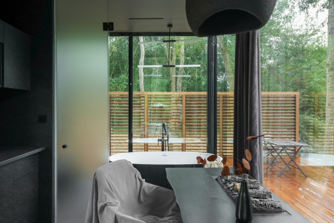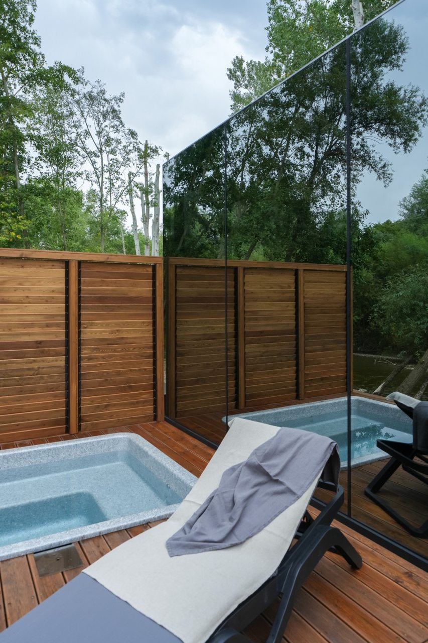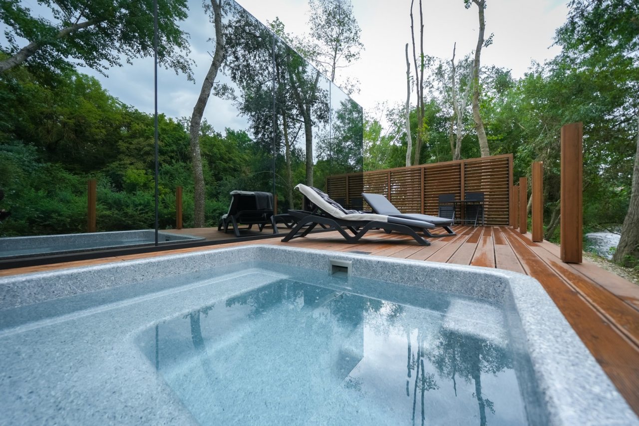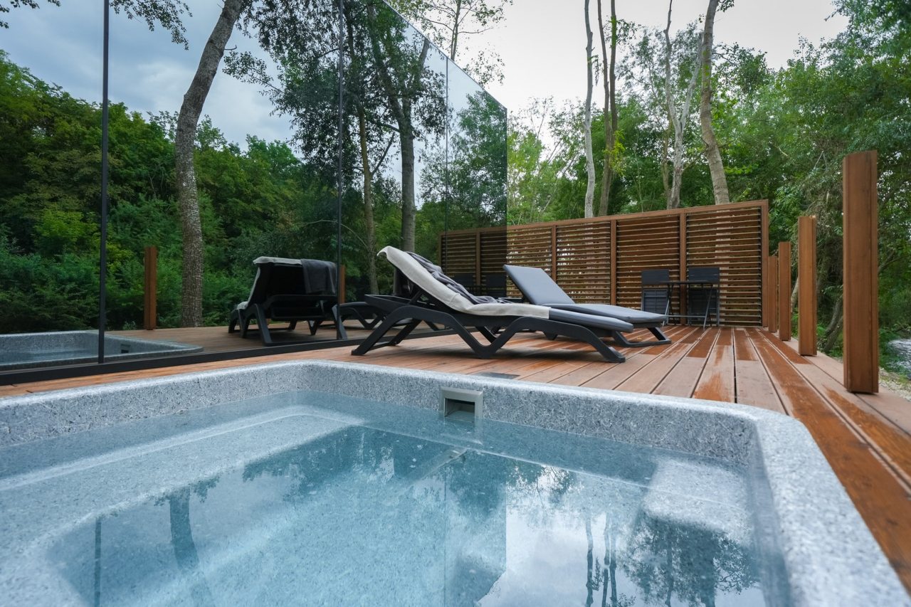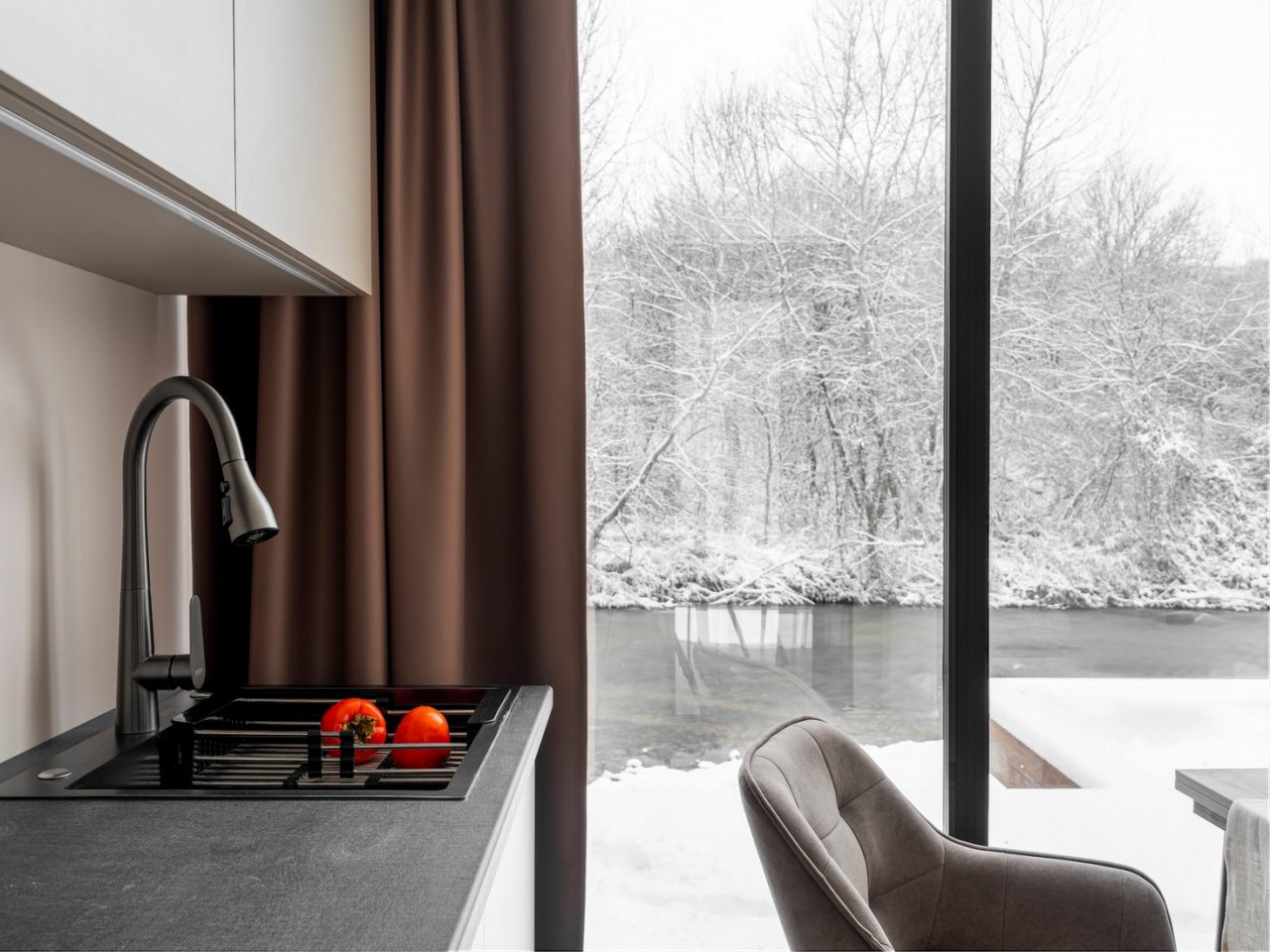 Некоторые домики оснащены собственным теплым джакузи и приватной террасой с уличной мебелью, где можно насладиться чашкой любимого напитка и красивым пейзажем. Расстояние до железнодорожного вокзала составит 12,6 км, а до аэропорта — 19,1 км.