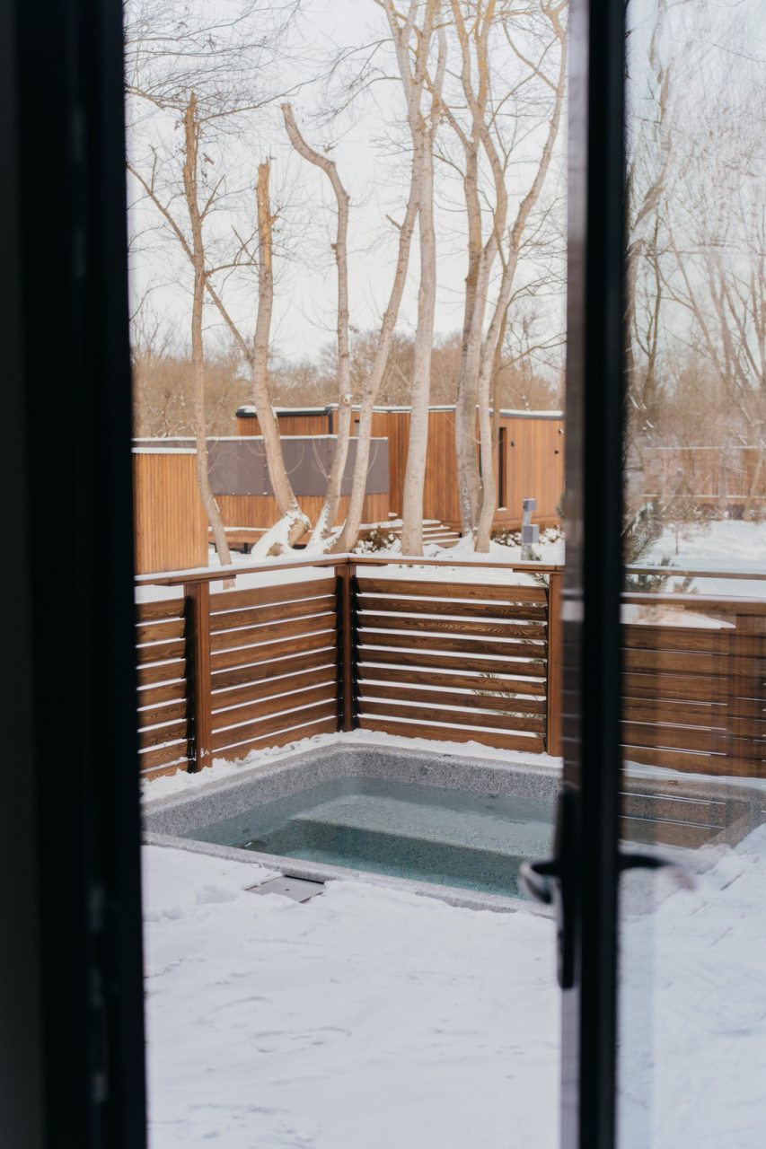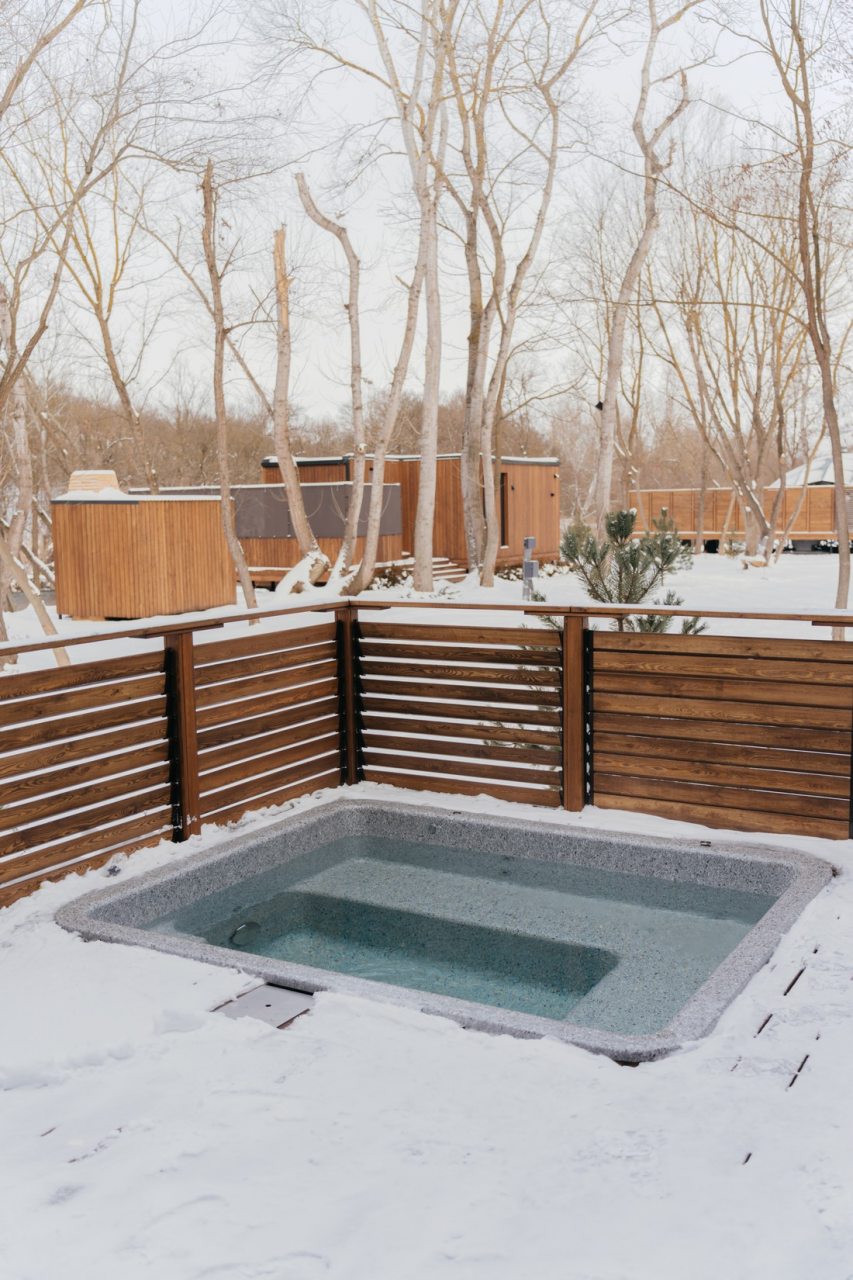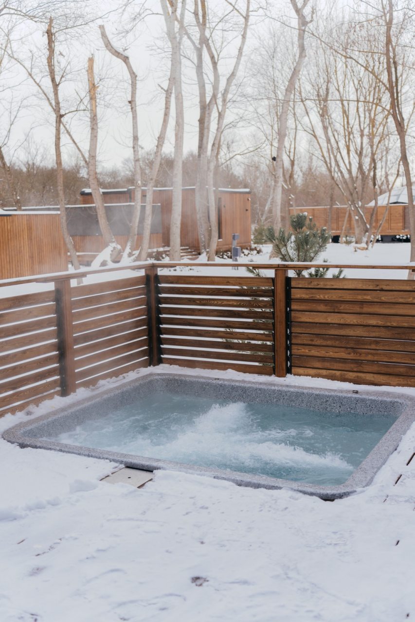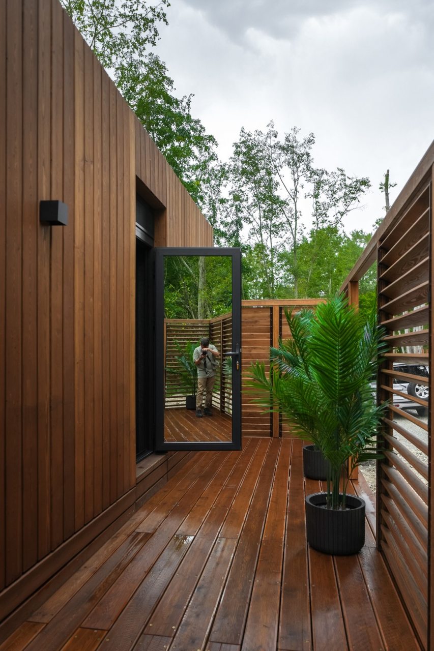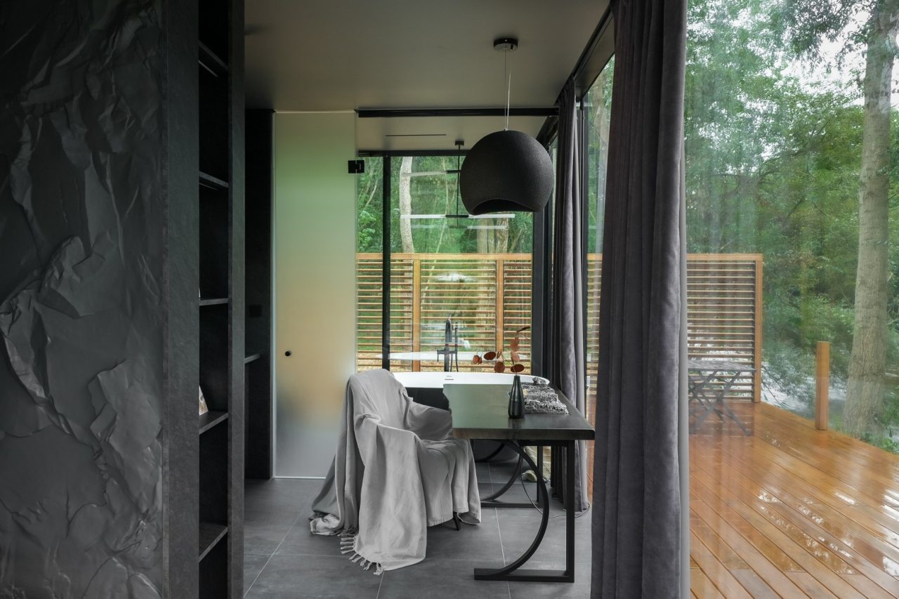 Некоторые домики оснащены собственным теплым джакузи и приватной террасой с уличной мебелью, где можно насладиться чашкой любимого напитка и красивым пейзажем. Расстояние до железнодорожного вокзала составит 12,6 км, а до аэропорта — 19,1 км.