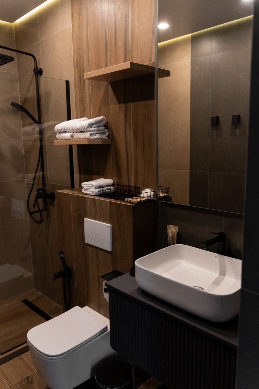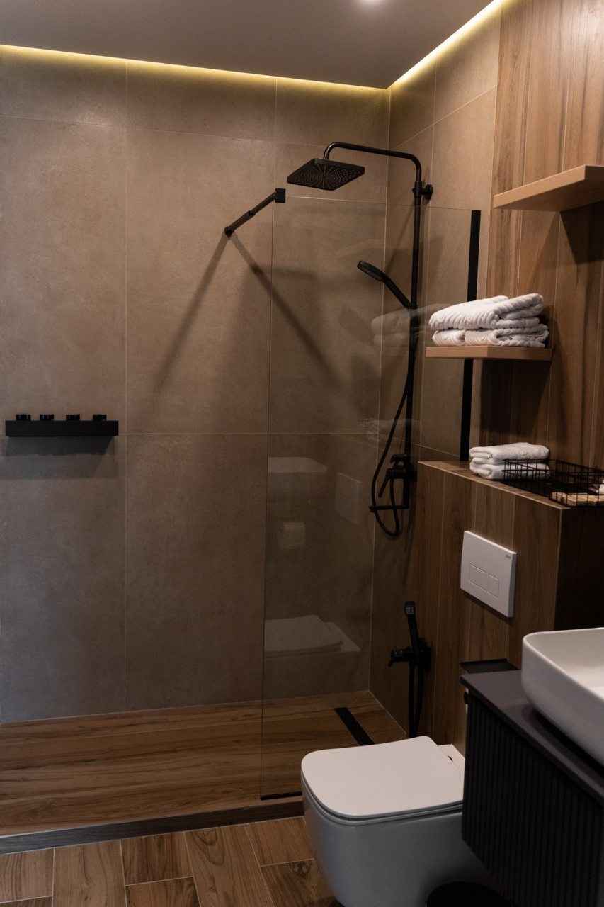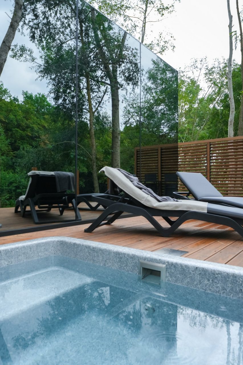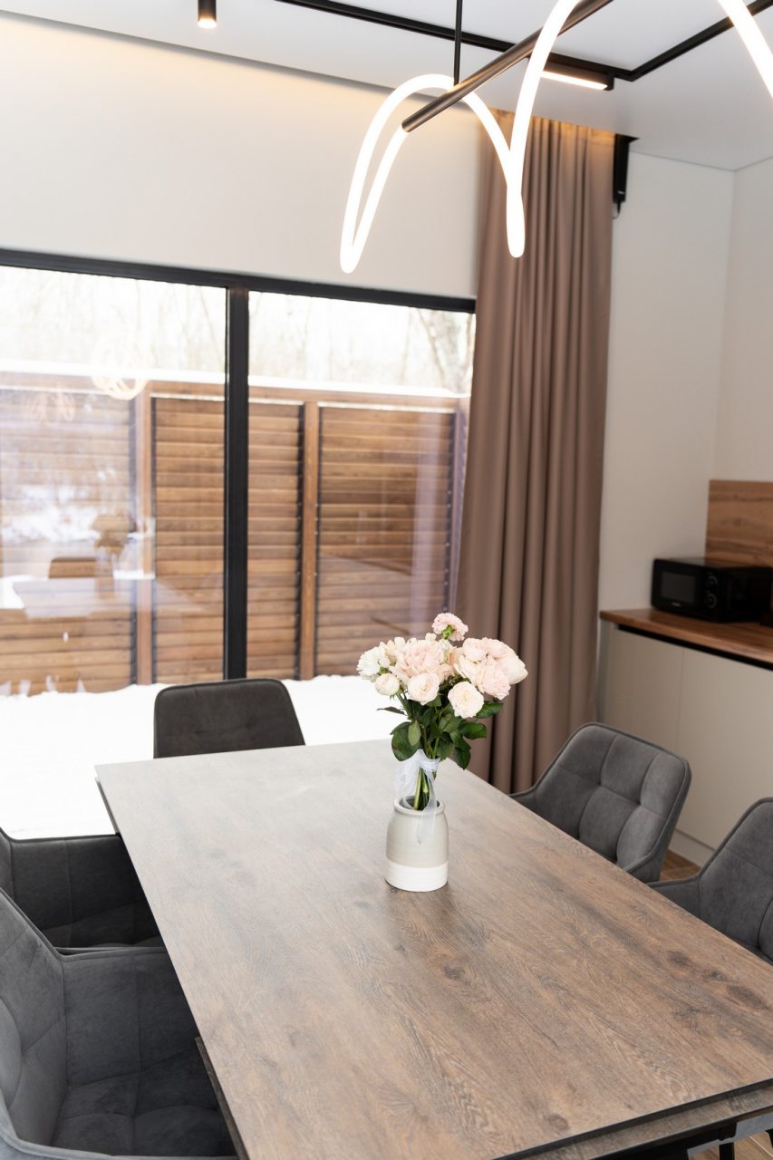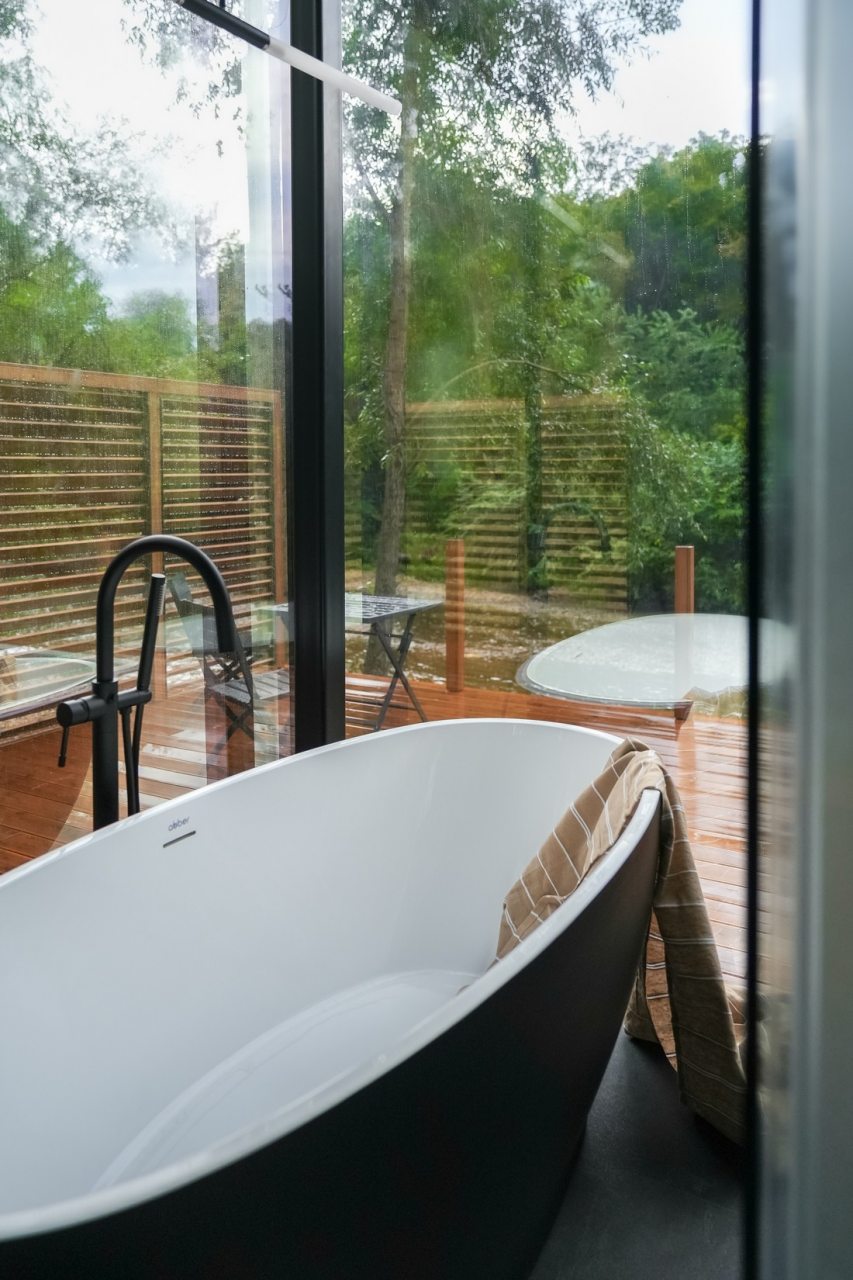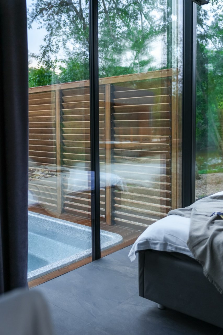 Некоторые домики оснащены собственным теплым джакузи и приватной террасой с уличной мебелью, где можно насладиться чашкой любимого напитка и красивым пейзажем. Расстояние до железнодорожного вокзала составит 12,6 км, а до аэропорта — 19,1 км.