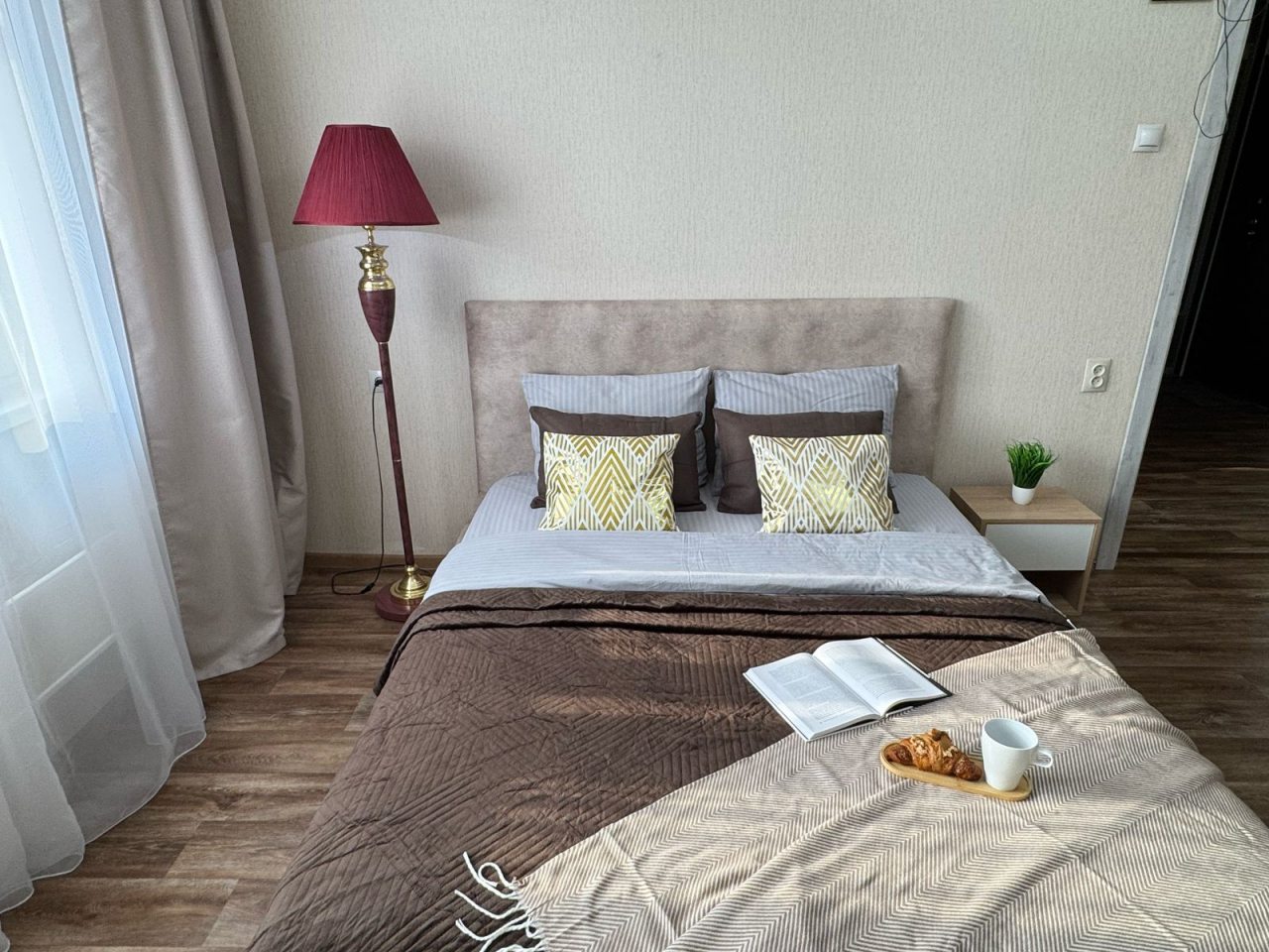 Уютные однокомнатные апартаменты оформлены в современном стиле и укомплектованы мебелью и техникой для комфортного времяпровождения и отдыха гостей: двуспальная кровать, мягкий диван, зоны для хранения личных вещей, телевизор. В ванной комнате установлена стиральная машинка.