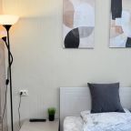 Очень стильные апартаменты с прекрасной атмосферой. Оборудованы всей необходимой техникой, а также комфортными мебелью и кроватями. Отличное расположение, все в шаговой доступности. Сантехника достойная, никаких проблем с горячей водой не возникало, это отлично.