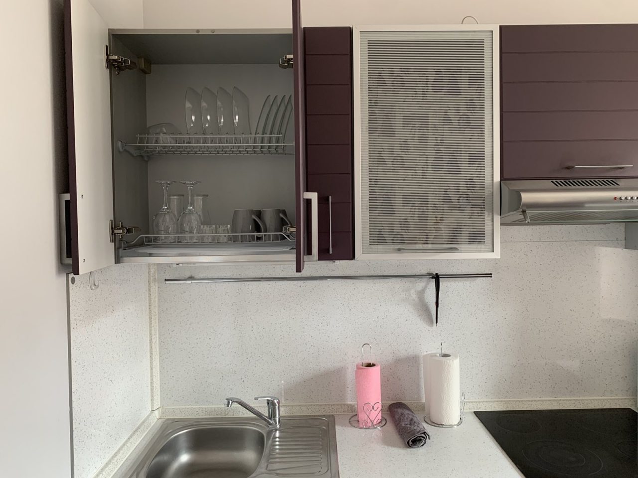 На просторной кухне будет приятно готовить домашние блюда, поскольку в наличии духовой шкаф, варочная панель, СВЧ-печь, чайник, вытяжка, холодильник и уютная обеденная зона.