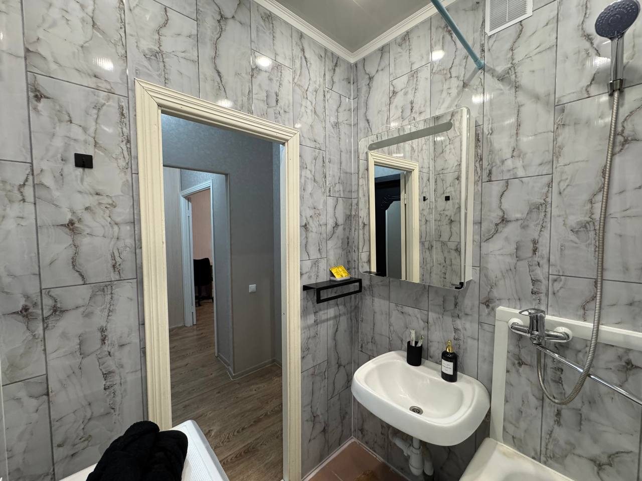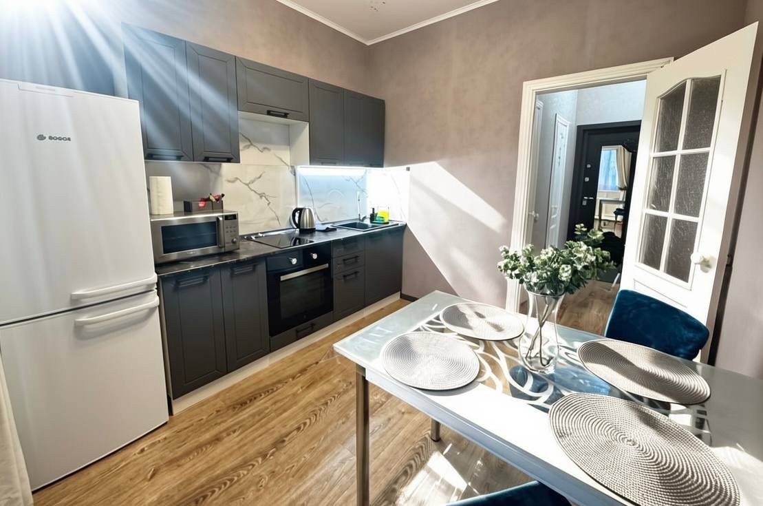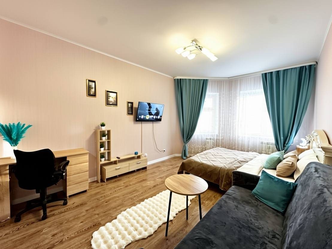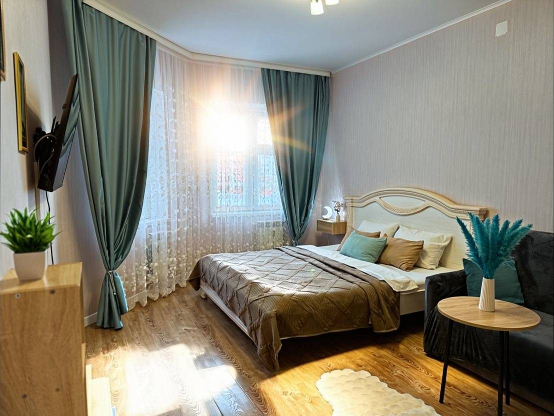 Гостям предлагается разместиться в комфортабельных апартаментах, которые имеют все необходимое для проживания. Среди удобств: плазменный телевизор, Яндекс Станция, шкаф-купе, а также затемненный шторы для комфортного сна. В личной ванной комнате установлена стиральная машина, сушильный барабан, фен. Предоставляются средства личной гигиены и набор полотенец.