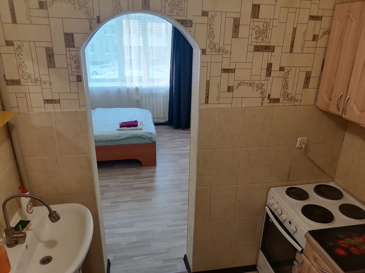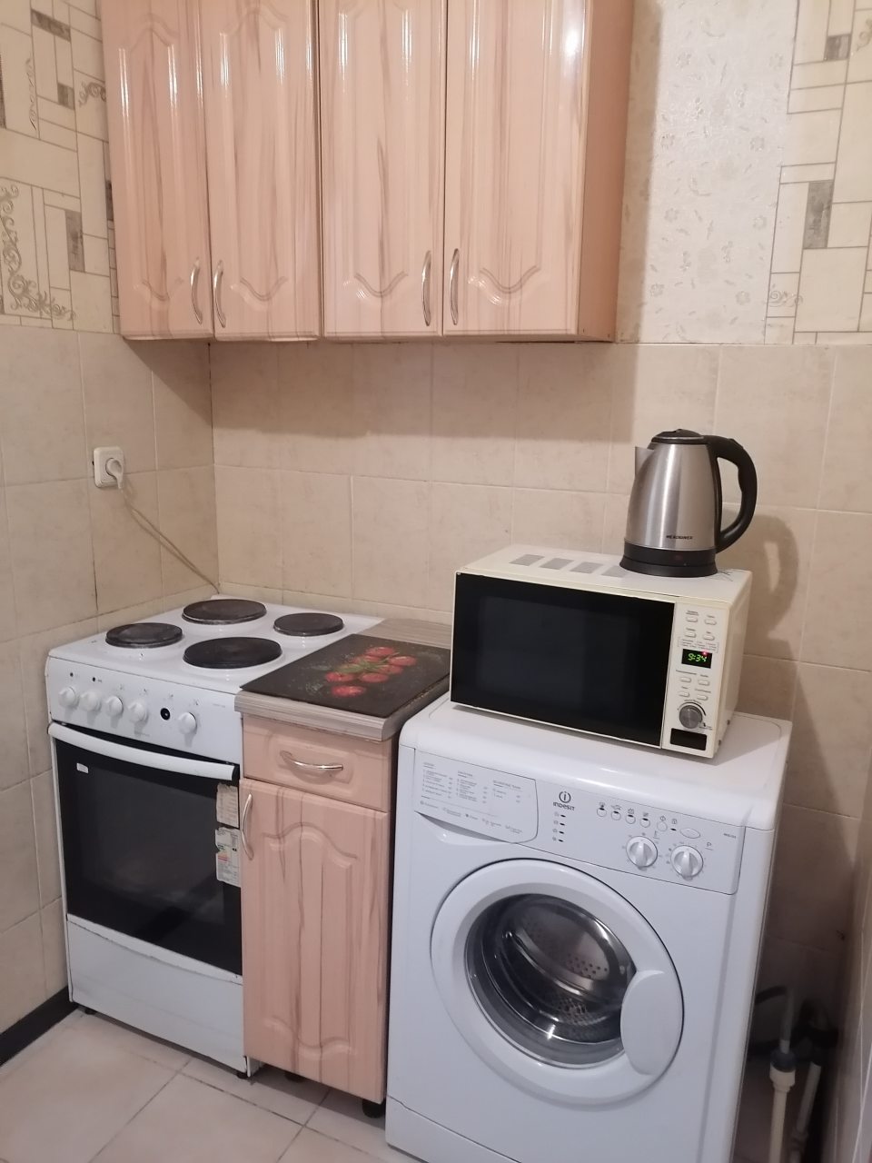 Кухня имеет гарнитур и всю необходимую бытовую технику, например: электроплиту, чайник, микроволновую печь и др. В шаговой доступности продовольственные магазины и кафе.