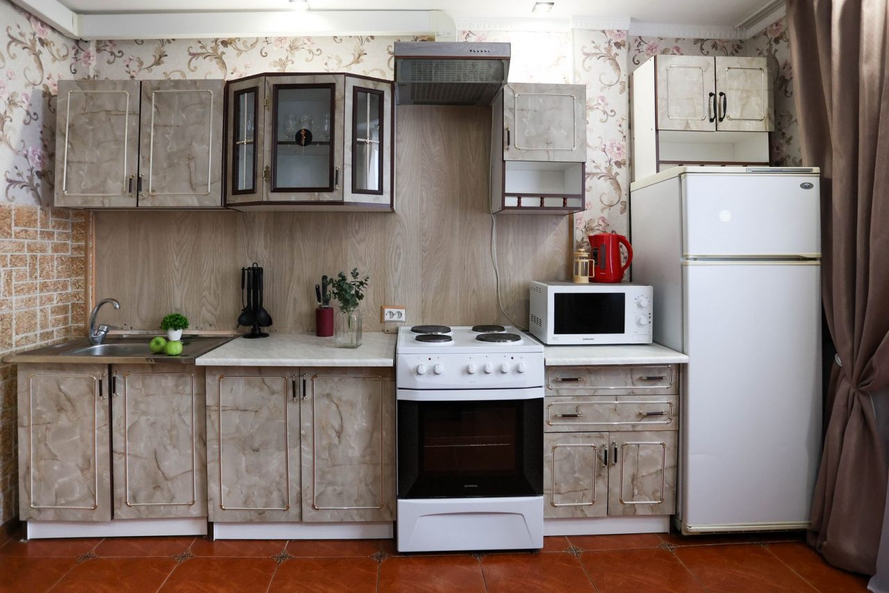 На кухне имеется необходимая бытовая техника для самостоятельного приготовления еды. В шаговой доступности ресторан «Шафран», различные продуктовые магазины и рынок.