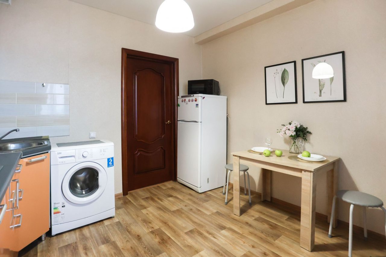 Светлая квартира обустроены мягкой и корпусной мебелью, техникой и другими удобствами, бесплатным wi-fi, телевизором с кабельным ТВ. Гостям выдается постельное белье, полотенца и халаты.