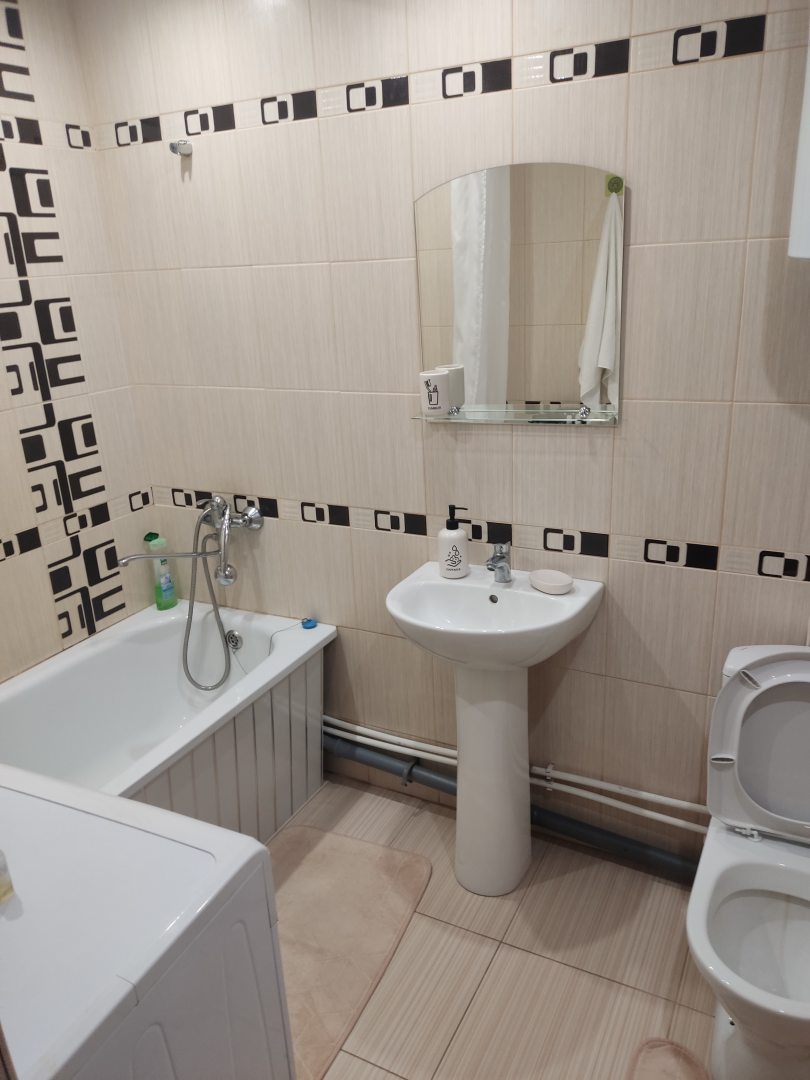 Здесь спокойная обстановка, находится квартира в спальном районе. Она отлично оформлена в светлых тонах, мне это сразу же понравилось. Рядом есть магазины и банки. Удобно отсюда доехать до вокзала, так что эту квартиру можно рассмотреть тем, кто находится в поиске места, где переночевать в пути.