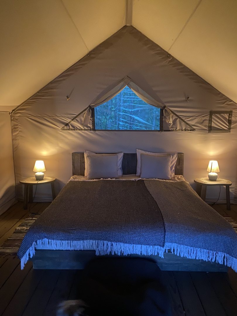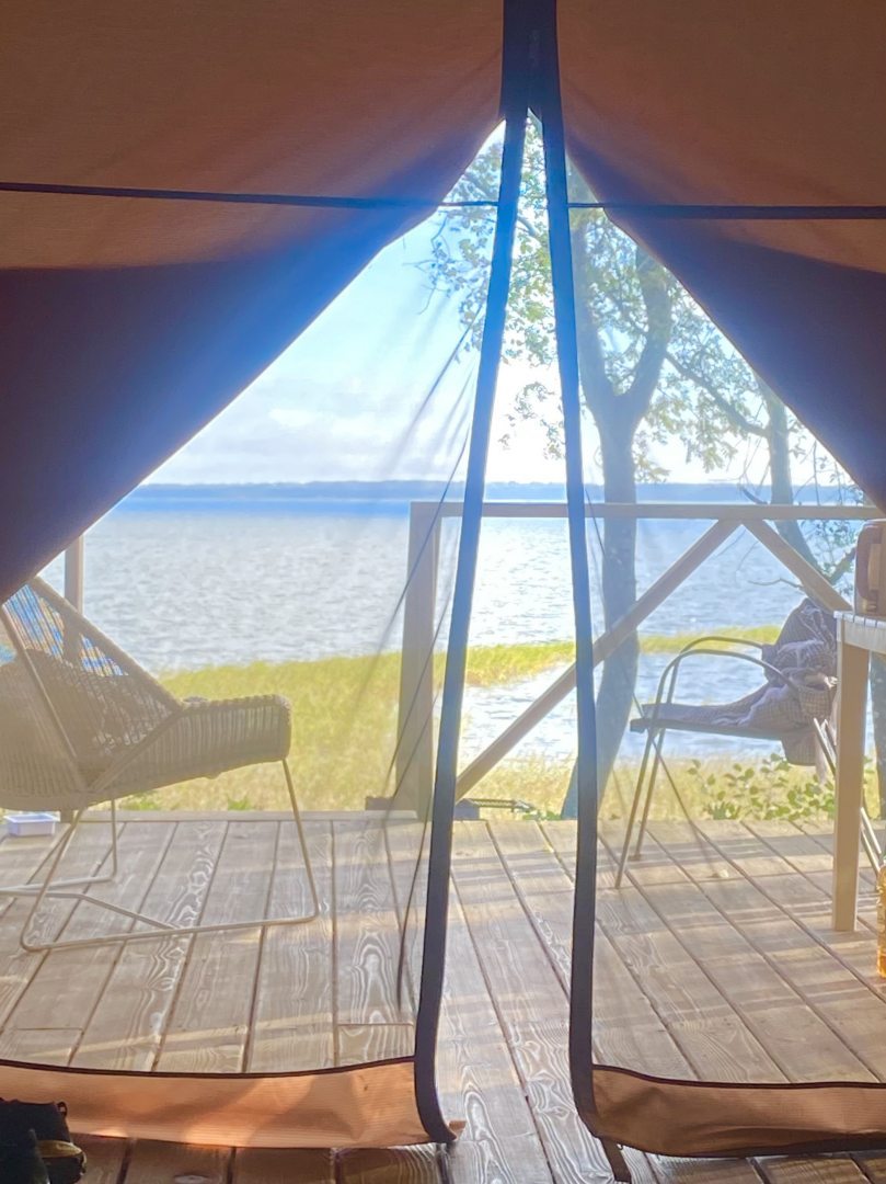 Это действительно рай- тихое и красивое место , с видом на озеро. Равнодушным уехать просто невозможно. Мы первый раз за много лет спали ДНЕМ !!! Чистота воздуха невероятная . Если бы можно было оценивать по 100 бальной системе я поставила 101!!! Жили в глэмпинге, было прохладно на улице , но теплые простыни нас окутали как мамины руки и погружали в сон моментально . Обязательно приедем туда еще и позовем гостей .