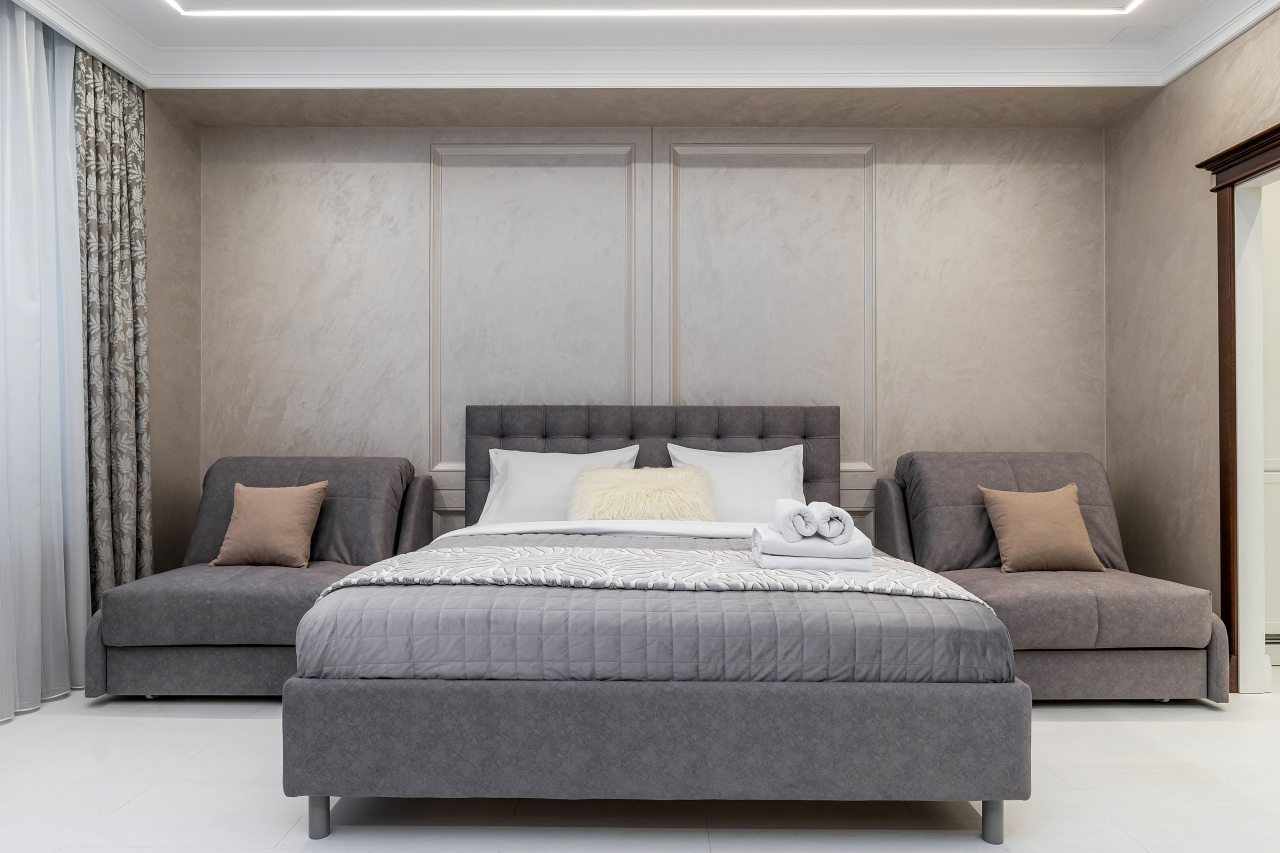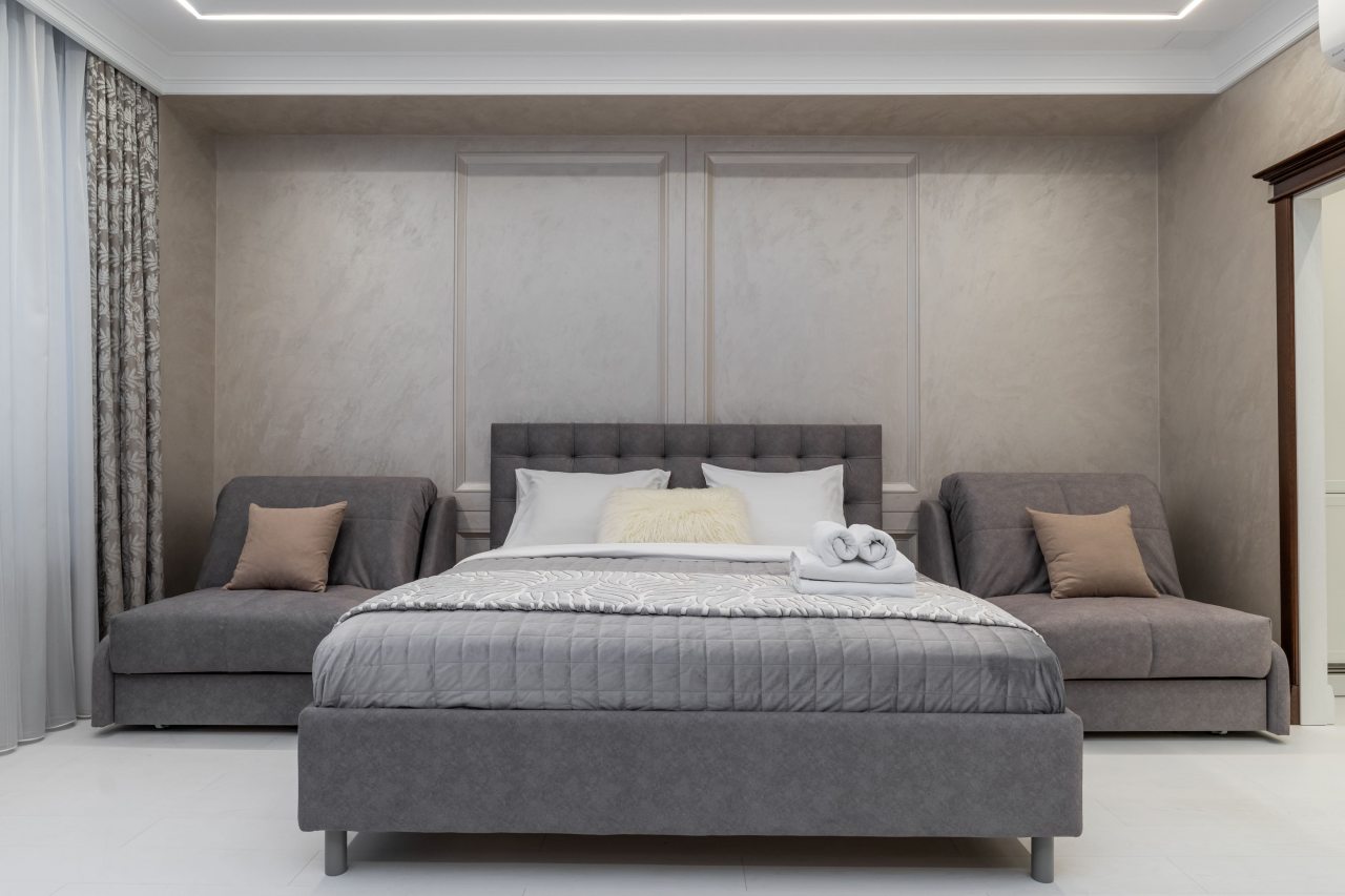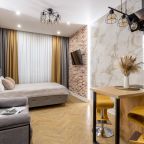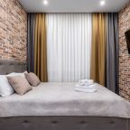 Для размещения подготовлены светлые и уютные апартаменты с гостиной и спальней. Они укомплектованы комфортабельной мягкой мебелью, телевизором, набором полотенец и затемнёнными шторами для спокойного отдыха. В числе удобств собственная ванная комната с гигиеническим набором, постельное белье и бесплатный Wi-Fi.