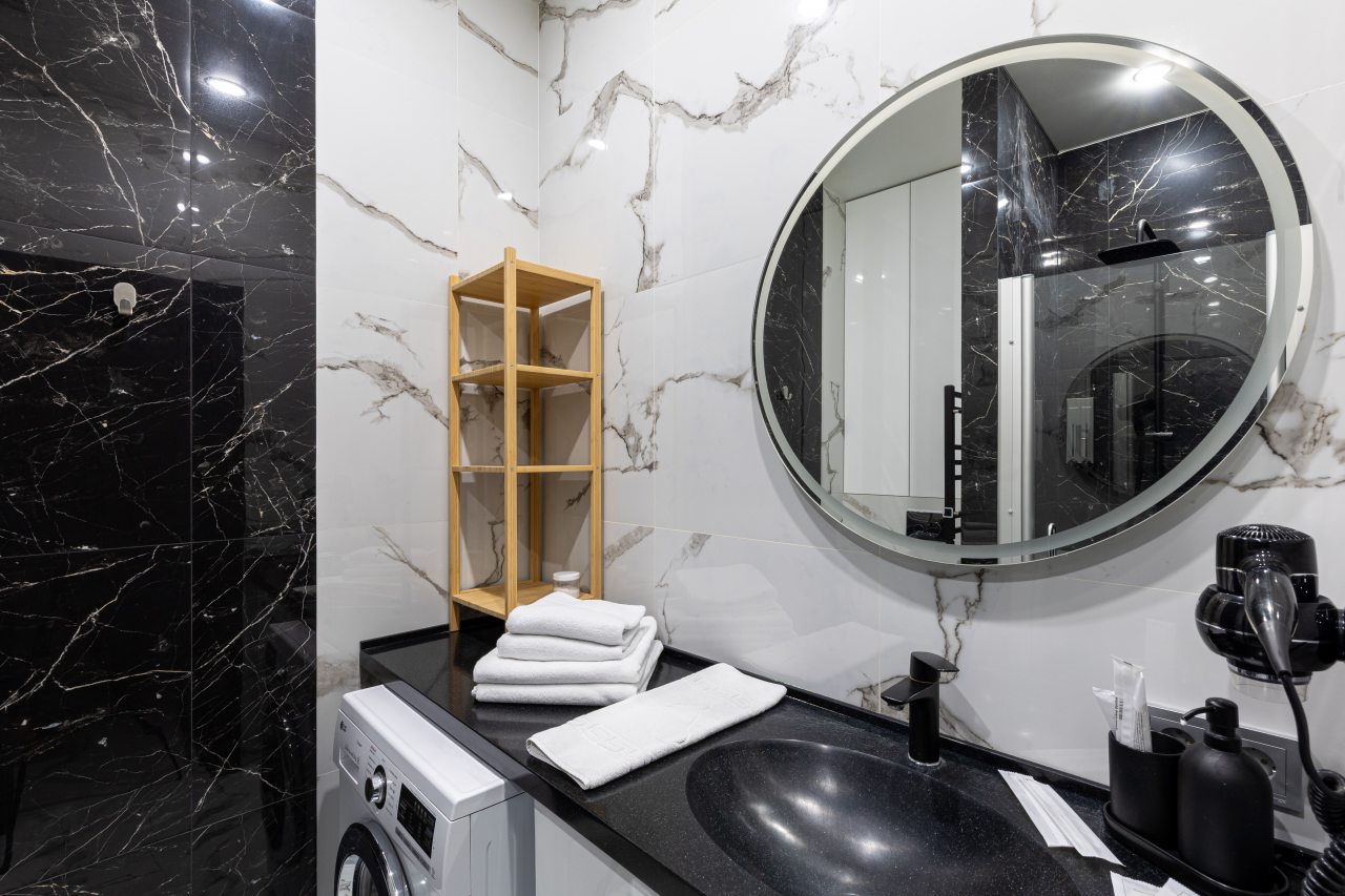 Сначала волновались из за длительного проживания, но очень быстро поняли, что место идеальное. Кухня не кажется приставленной «для галочки», а действительно удобна для готовки. Порадовало, что всё работает от техники до сантехники.