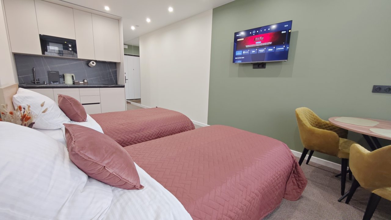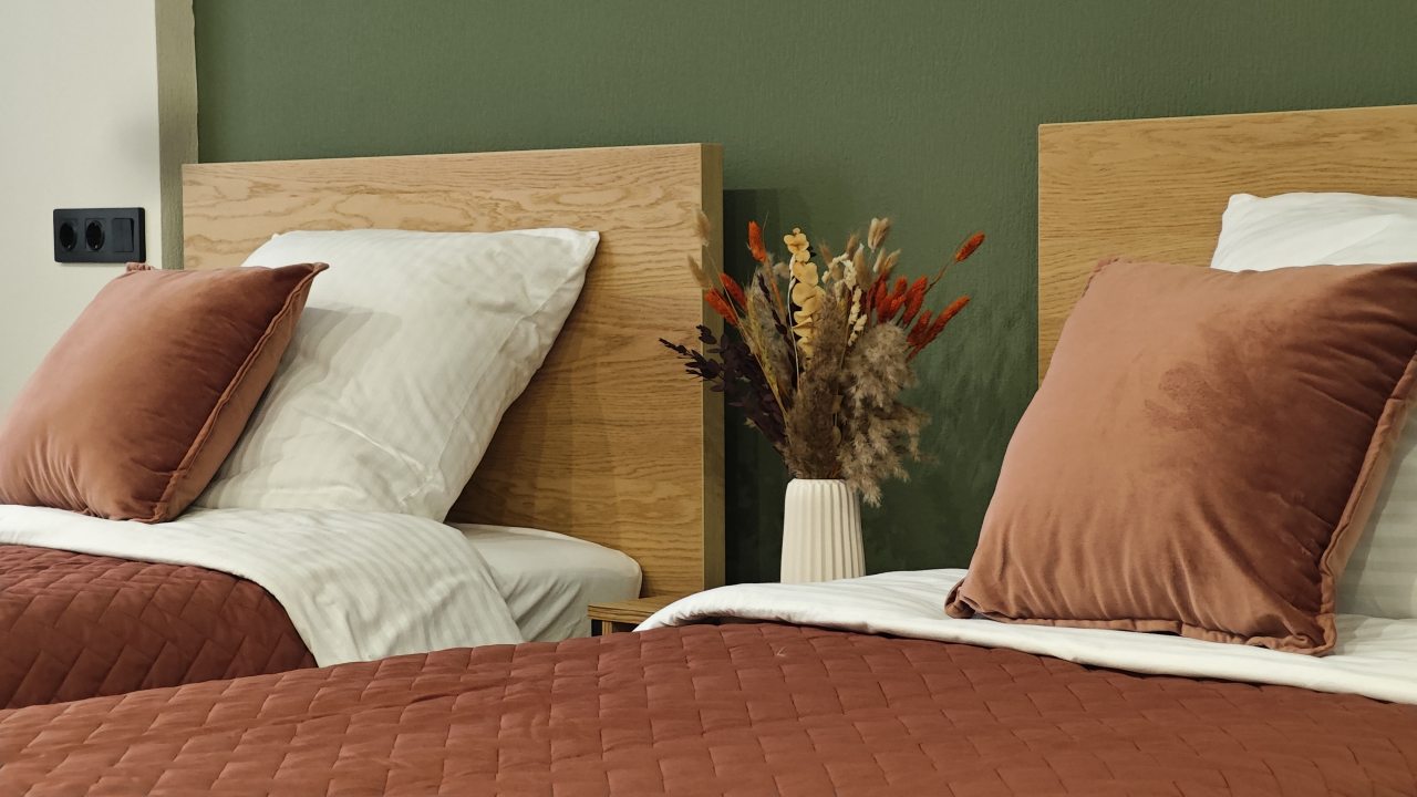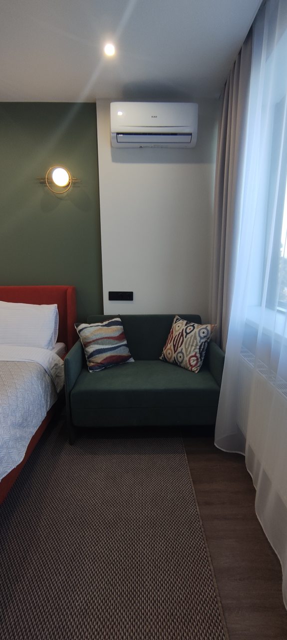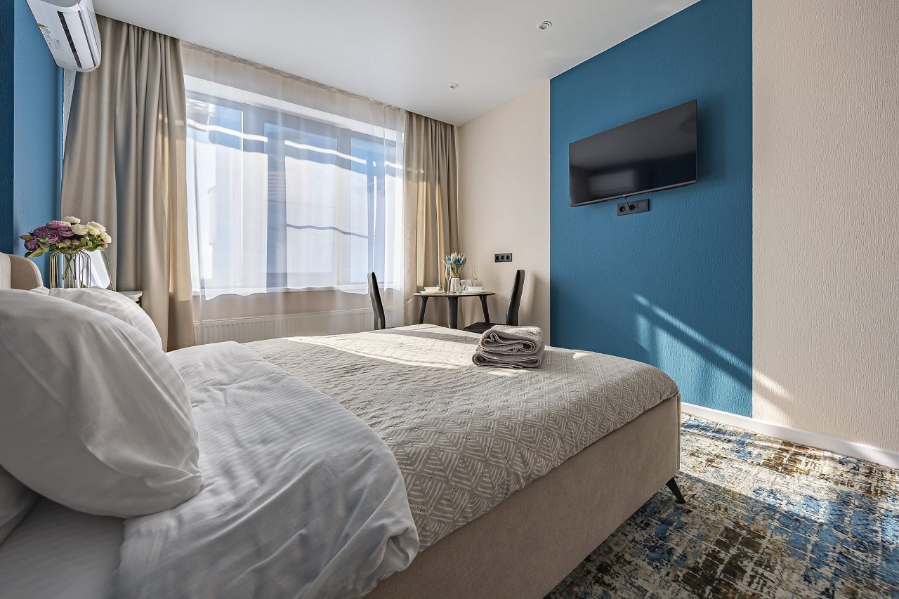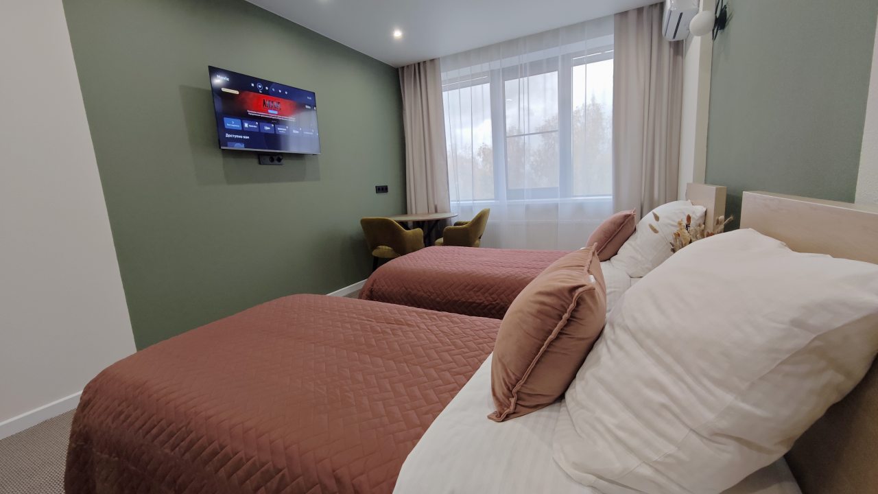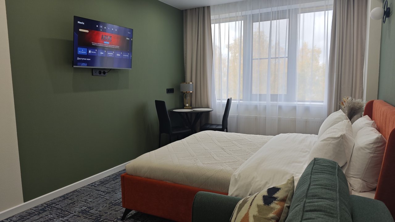 Для проживания предлагаются комфортабельные номера, которые оснащены: двуспальными и односпальными кроватями с хлопковым постельным бельем, раскладным кресло-кроватью, прикроватными лампами, тумбами и розетками, телевизором со Smart-TV, кондиционером, а также собственным санузлом со средствами для личной гигиены, тапочками, комплектом полотенец. Гости могут воспользоваться быстрым Wi-Fi для удаленной работы или досуга.