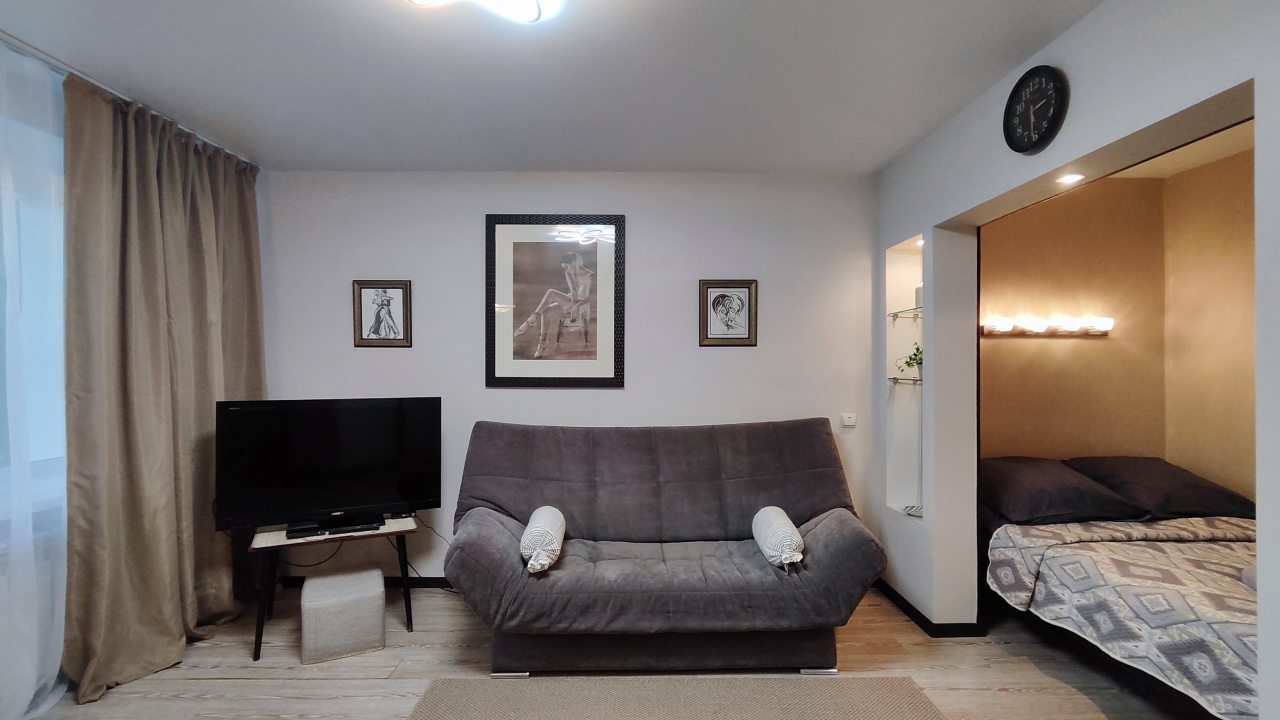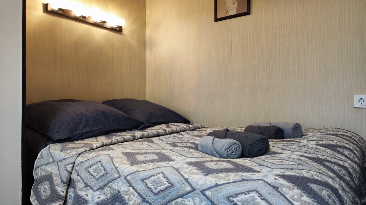 Для размещения предоставляется уютная квартира с современным дизайном для проживания и отдыха гостей. Она имеет удобную планировку и оснащение. Среди удобств: просторная гостиная с диваном и плазменным телевизором, двуспальная кровать и ванная комната. Для гостей предоставляются средства для душа и набор полотенец.