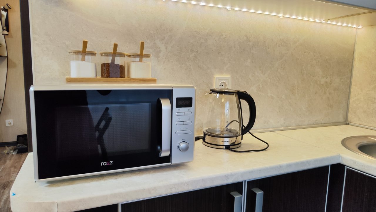 На кухонной зоне вы найдете все необходимое для самостоятельного приготовления любимых блюд: посуду, приборы, бытовую технику. Перекусить гости города также могут в ближайших кафе и ресторанах.