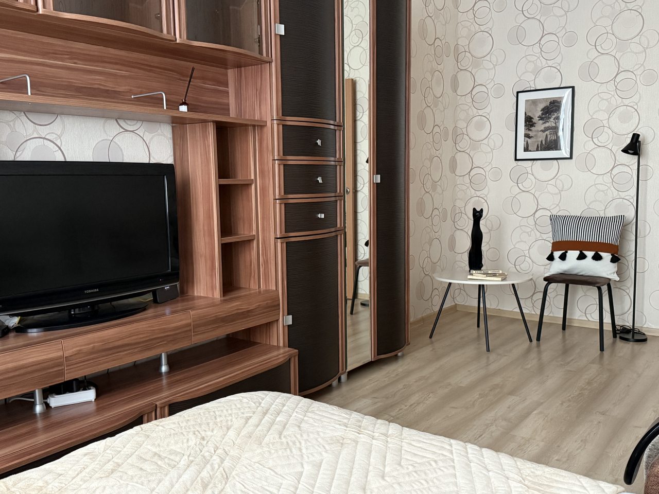 Очень хорошая квартира, где мы ни на секунду не подумали, что находимся в гостях. Дети больше всего обрадовались подпискам на онлайн-кинотеатры и просто прилипли к телевизору. Нам, взрослым, понравилось, что дом находится в зеленой зоне, нет загазованности, все вокруг чистое, новое.