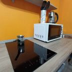 Кухня оборудована гарнитуром, холодильником, СВЧ-печью, электрическим чайником, конфоркой, обеденным столом и всеми необходимыми приборами. Перекусить можно в ближайшем кафе «Культура кофе».